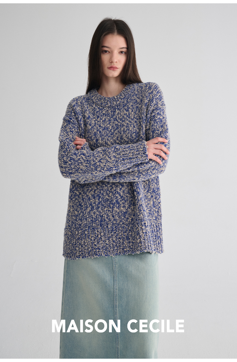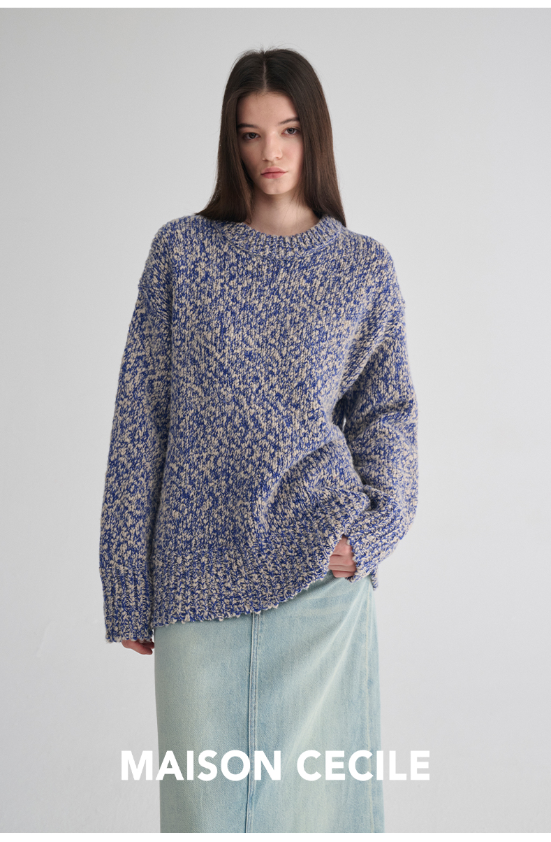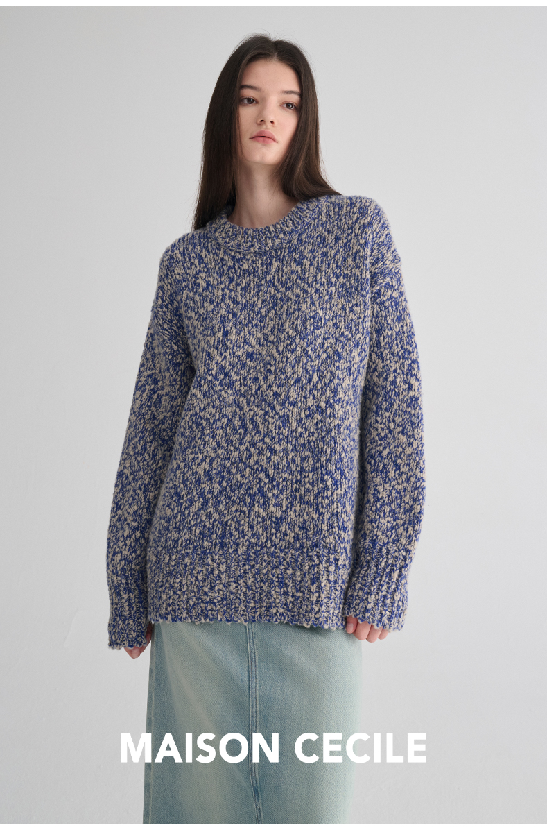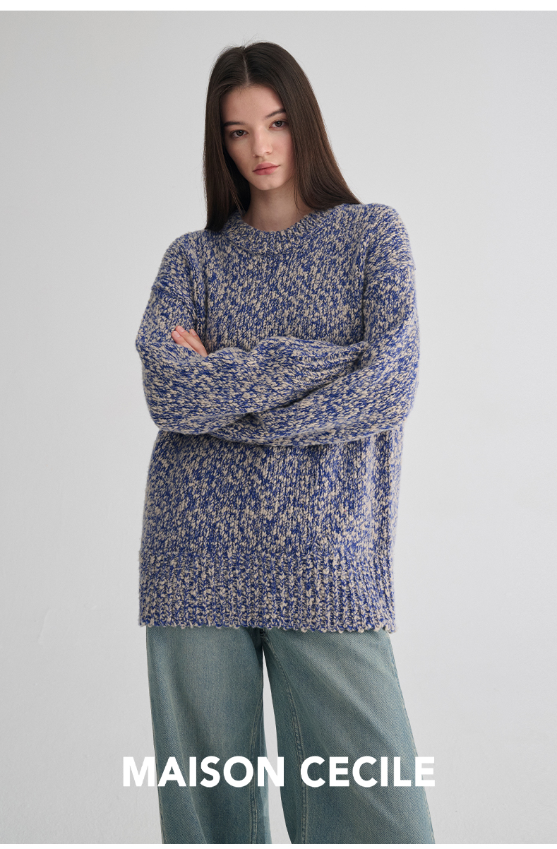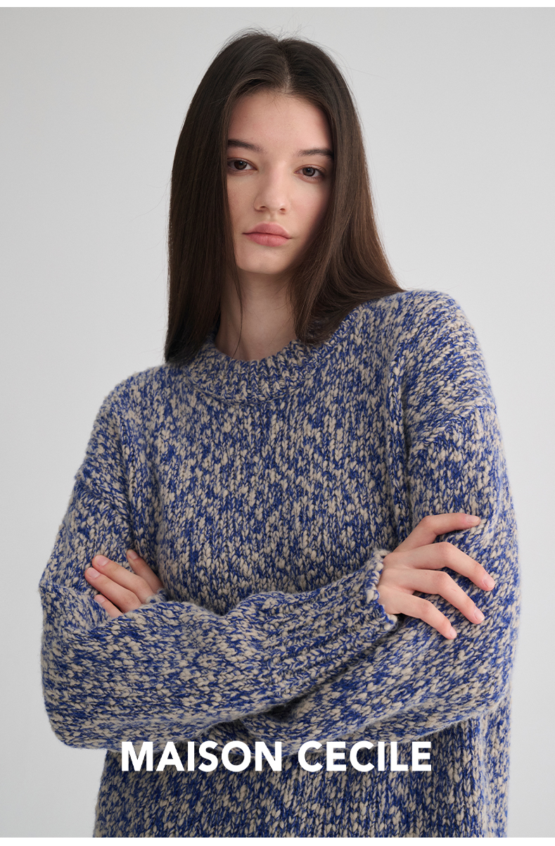 MAISON CECILE 定制纱线麻花感羊毛粗针编织复古慵懒大毛衣