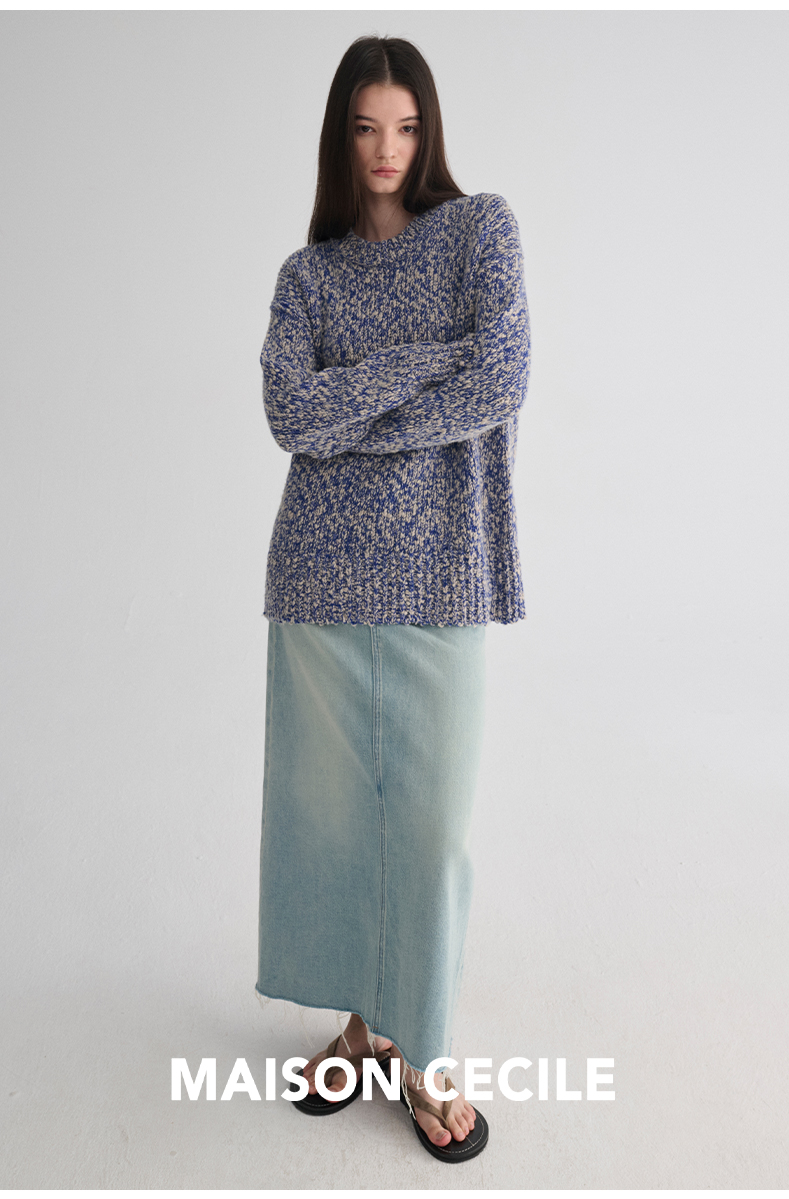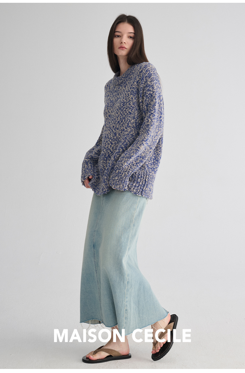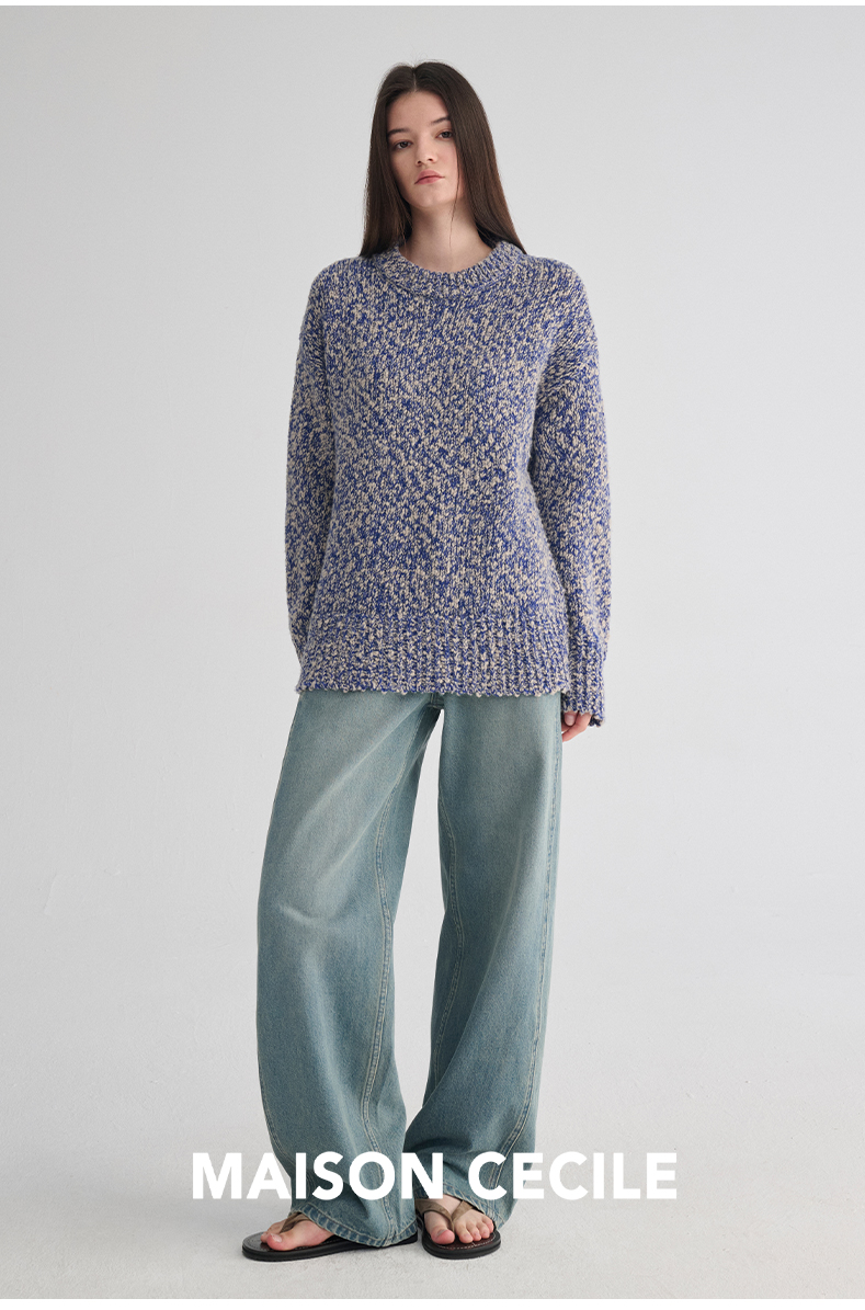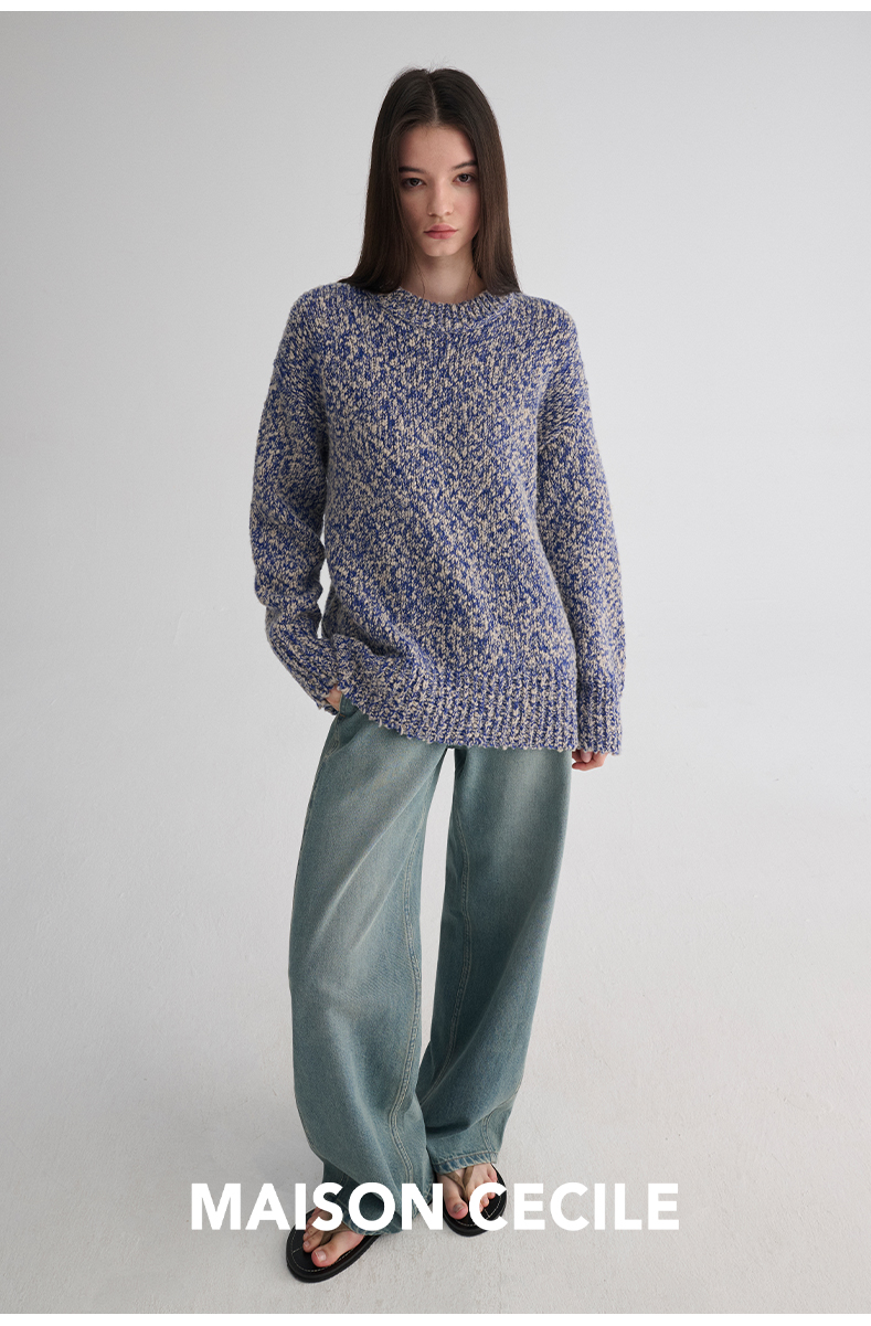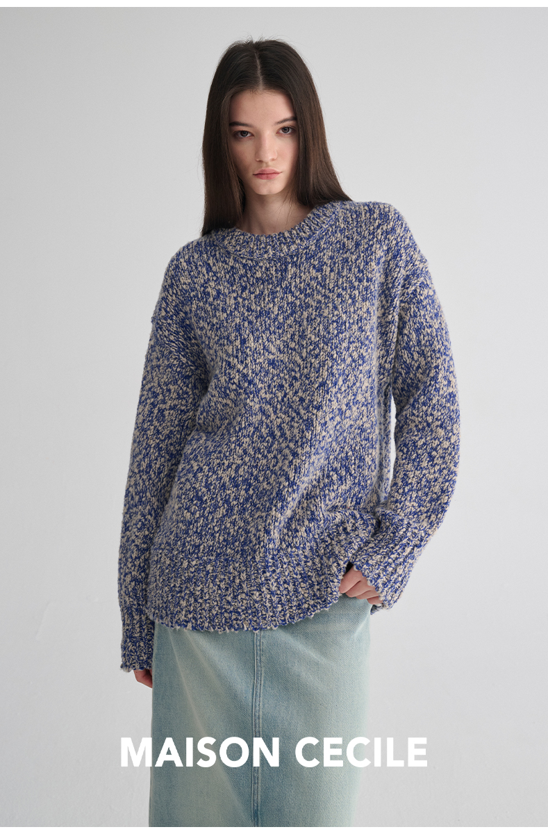 MAISON CECILE 定制纱线麻花感羊毛粗针编织复古慵懒大毛衣