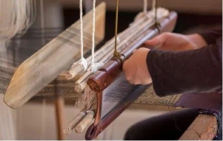 老粗布,从采棉纺线到上机织布需经轧花、弹花