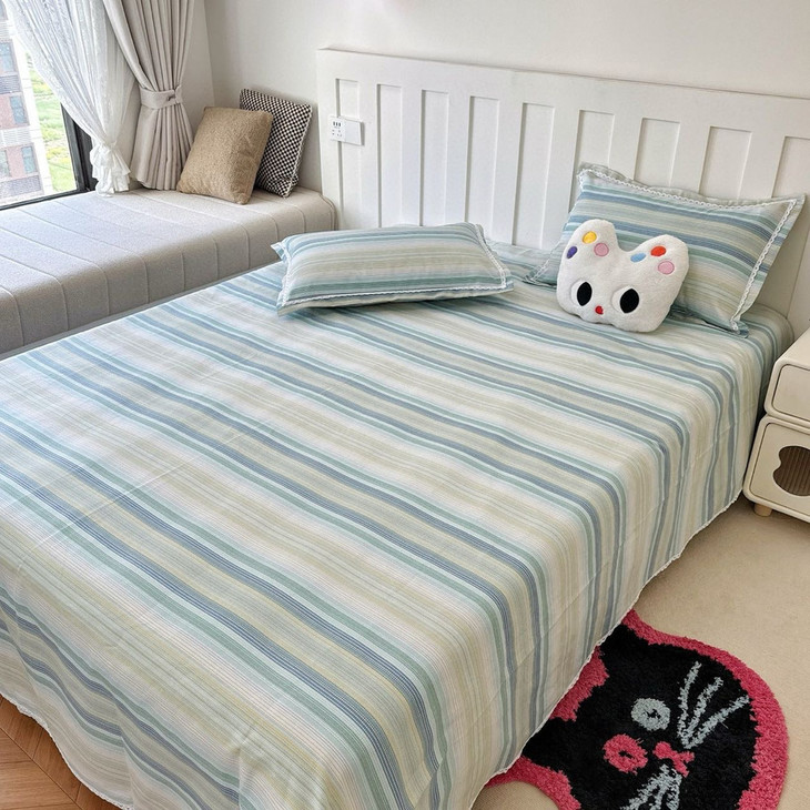【100%全棉❗三件套】高品质全棉细纱粗布软凉席(花边款)夏日必入款👏