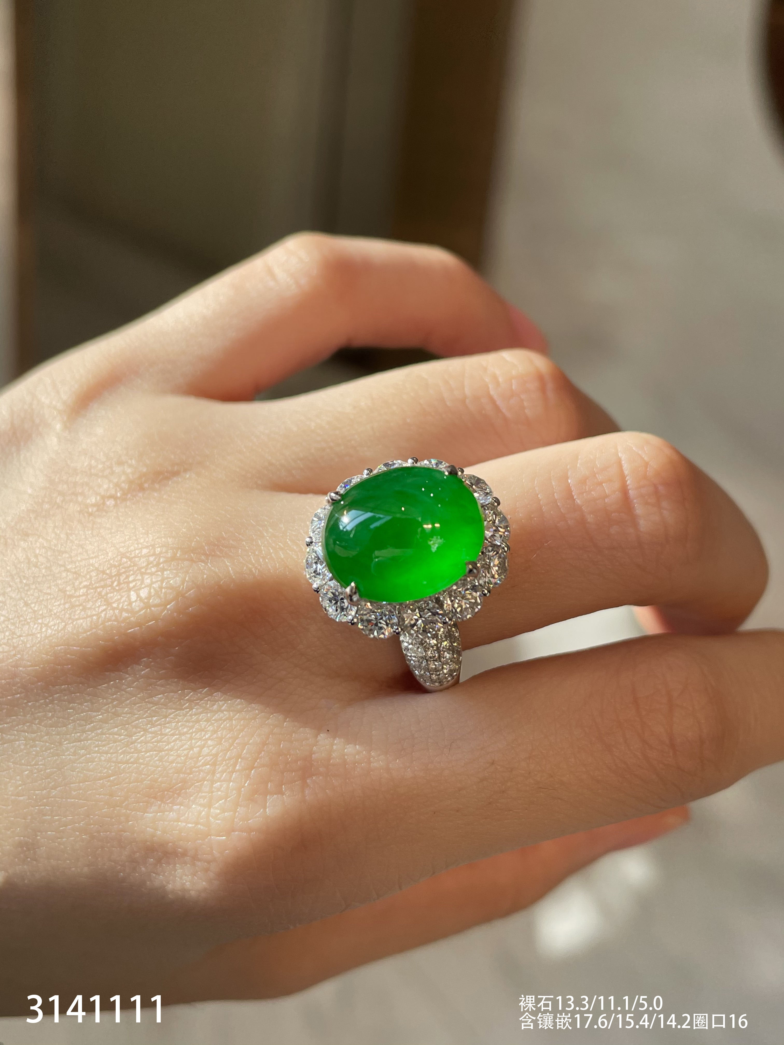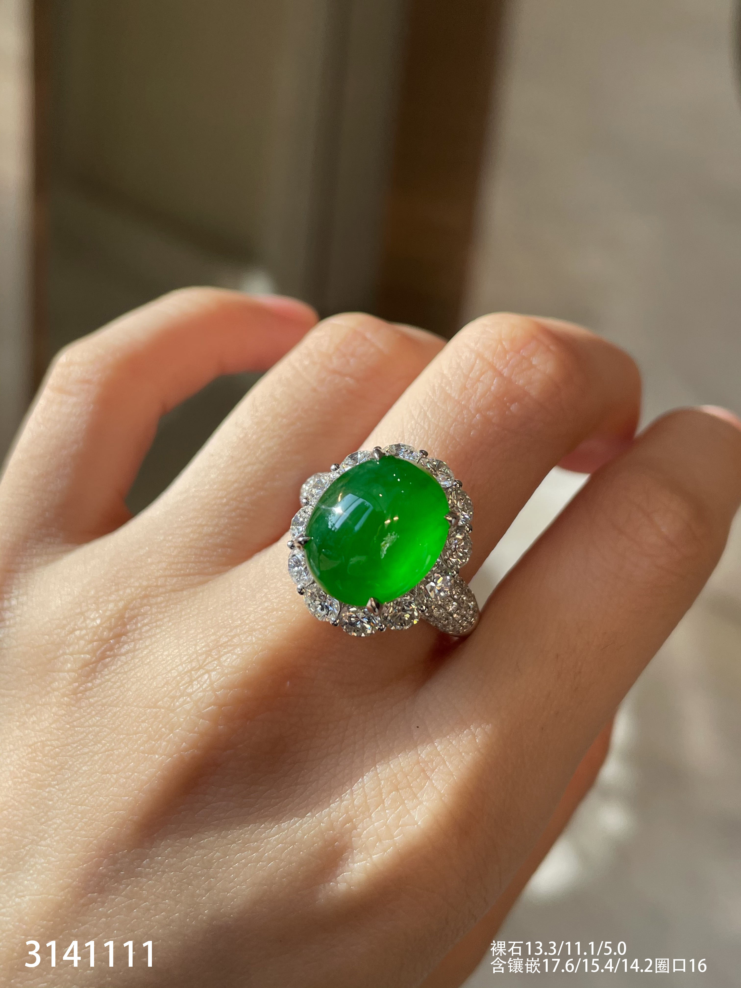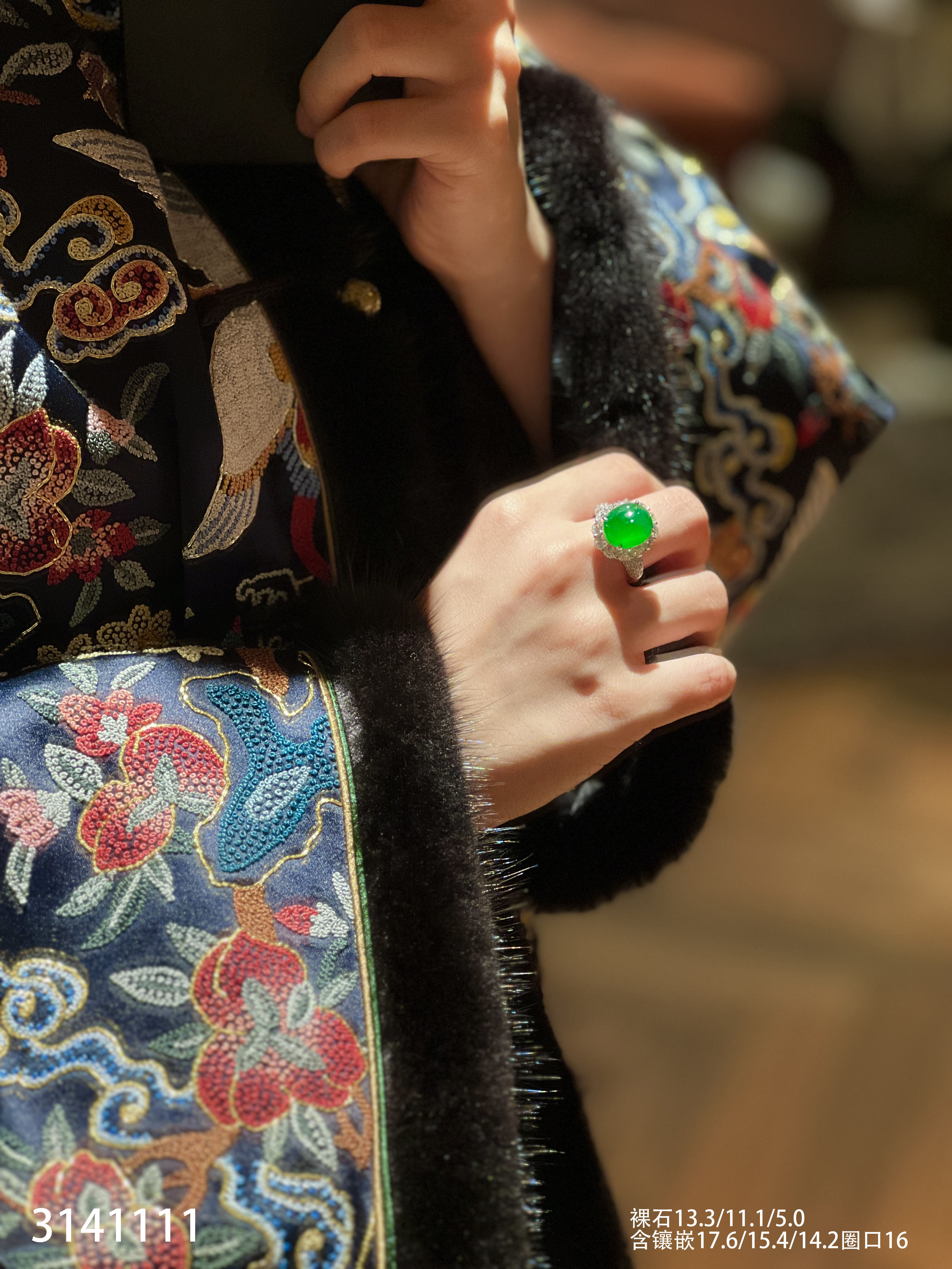 帝王绿蛋面戒指【3141111】具体价格微信咨询