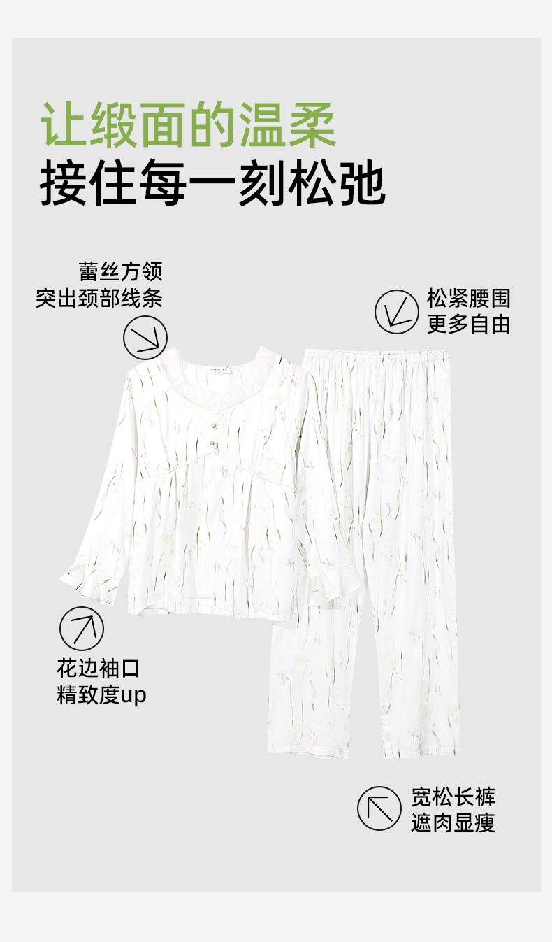 【商场同款】熳洁儿 春季家居服U领荷叶袖口缎面绸25703103