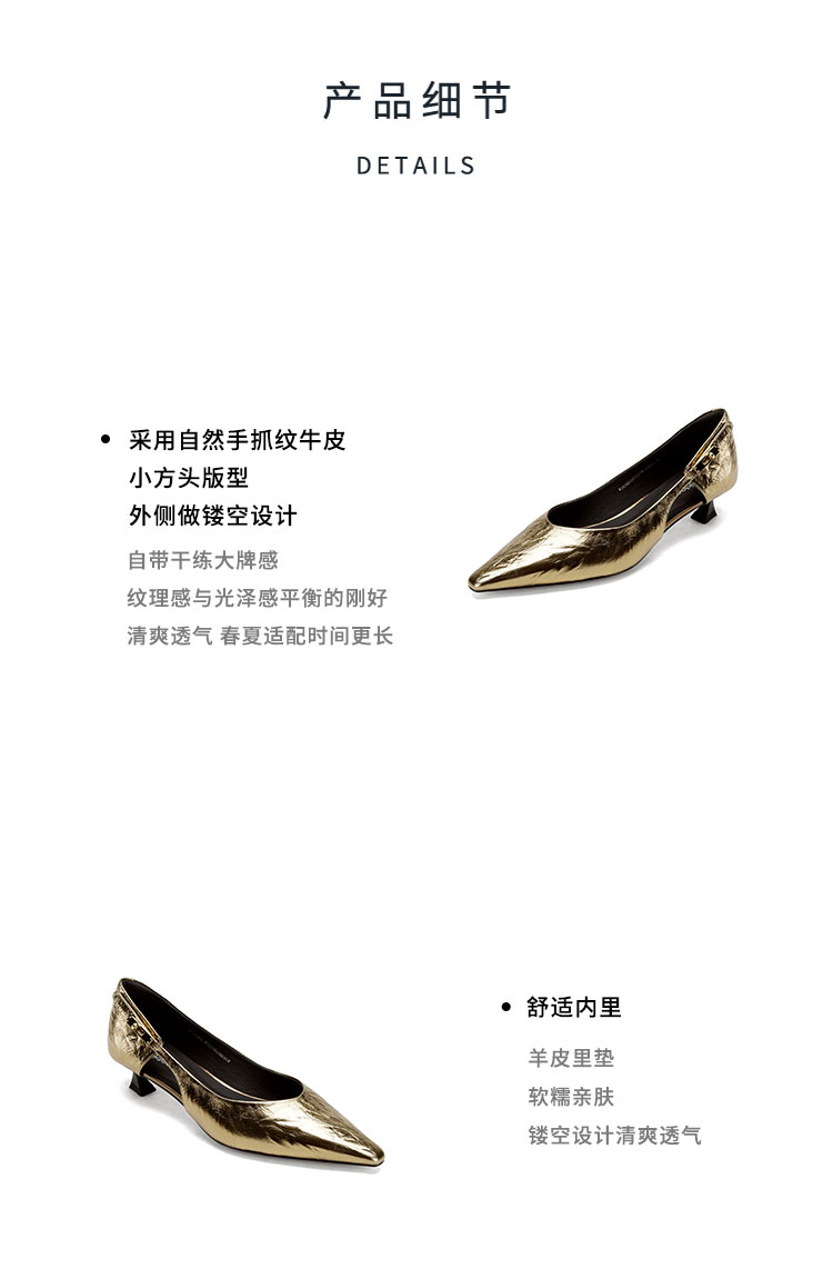 Westory2026年春季尖头低跟牛皮单鞋通勤百搭浅口鞋镂空单鞋W26AH51011