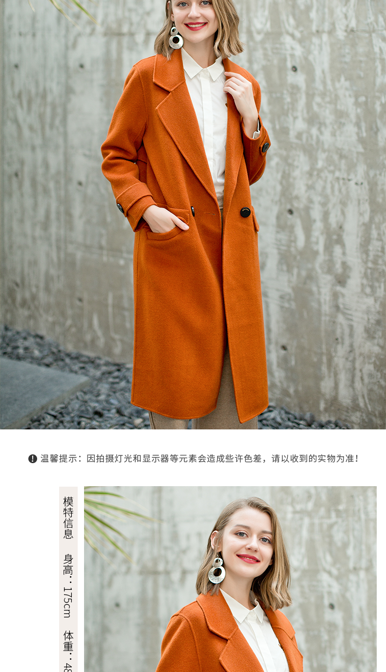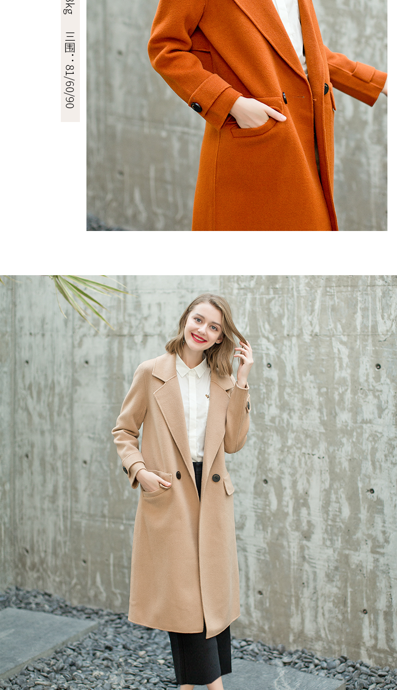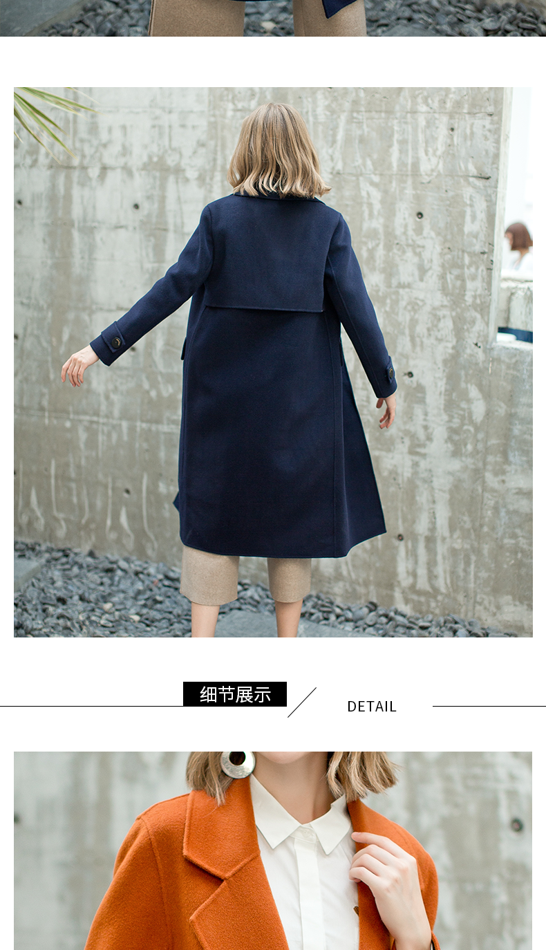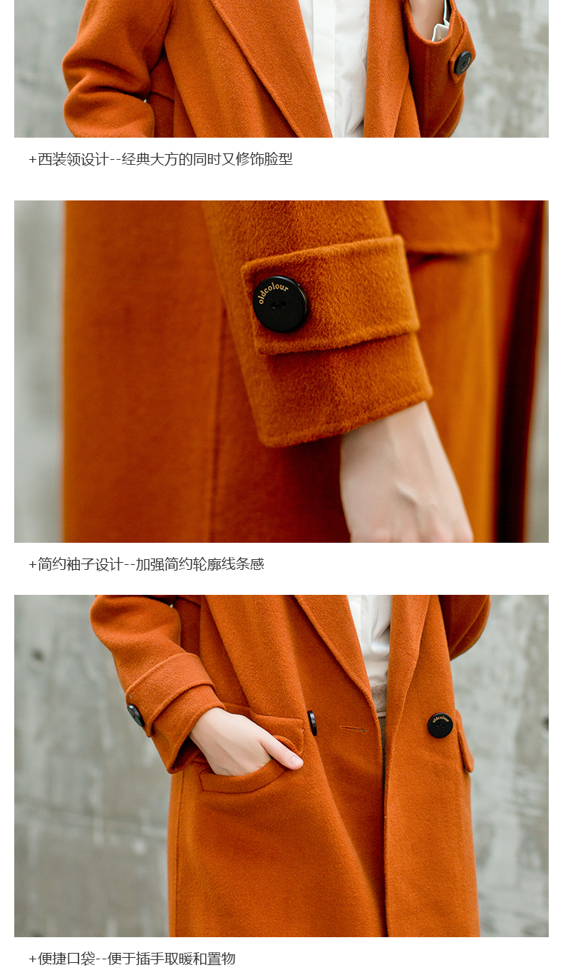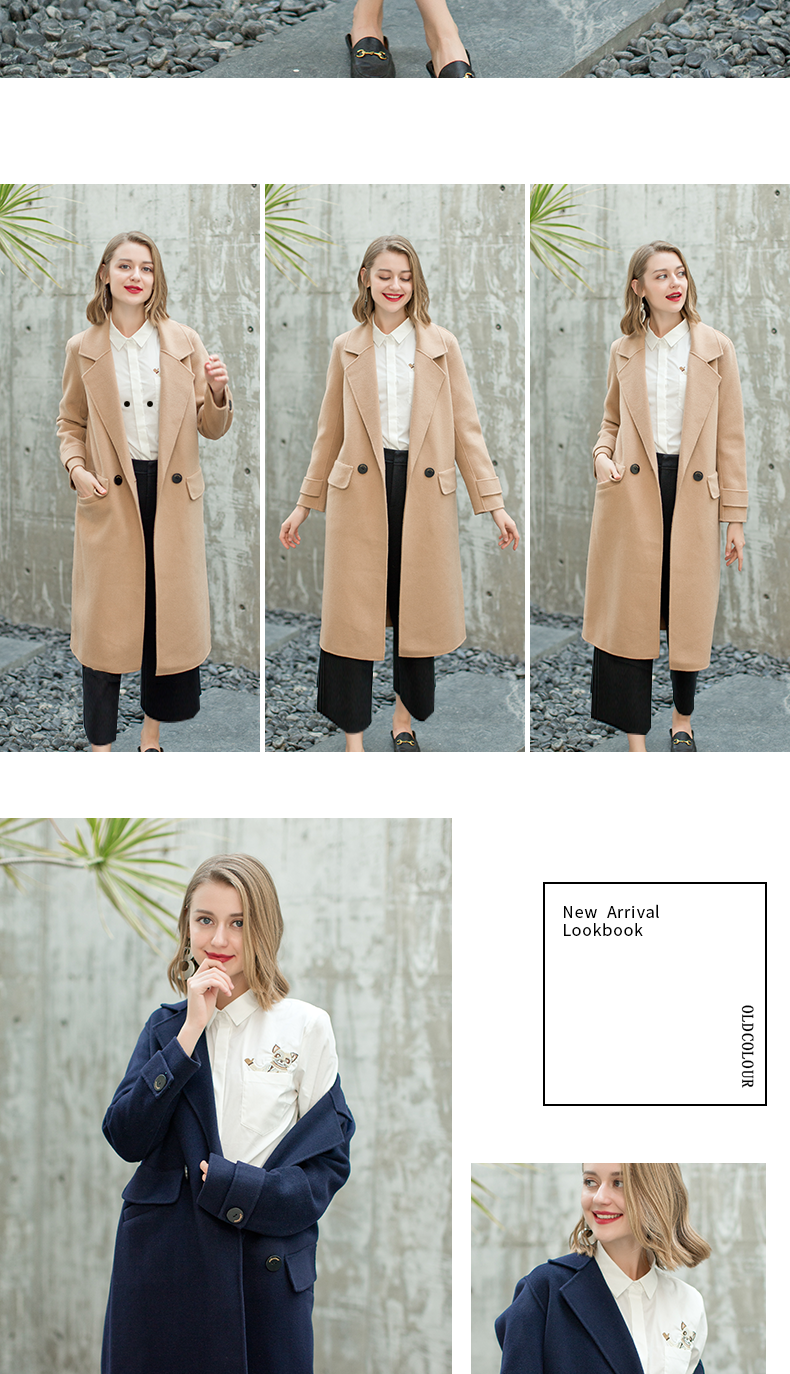 oldcolour欧珂长袖双面长款毛呢大衣女过膝长新款修身显瘦