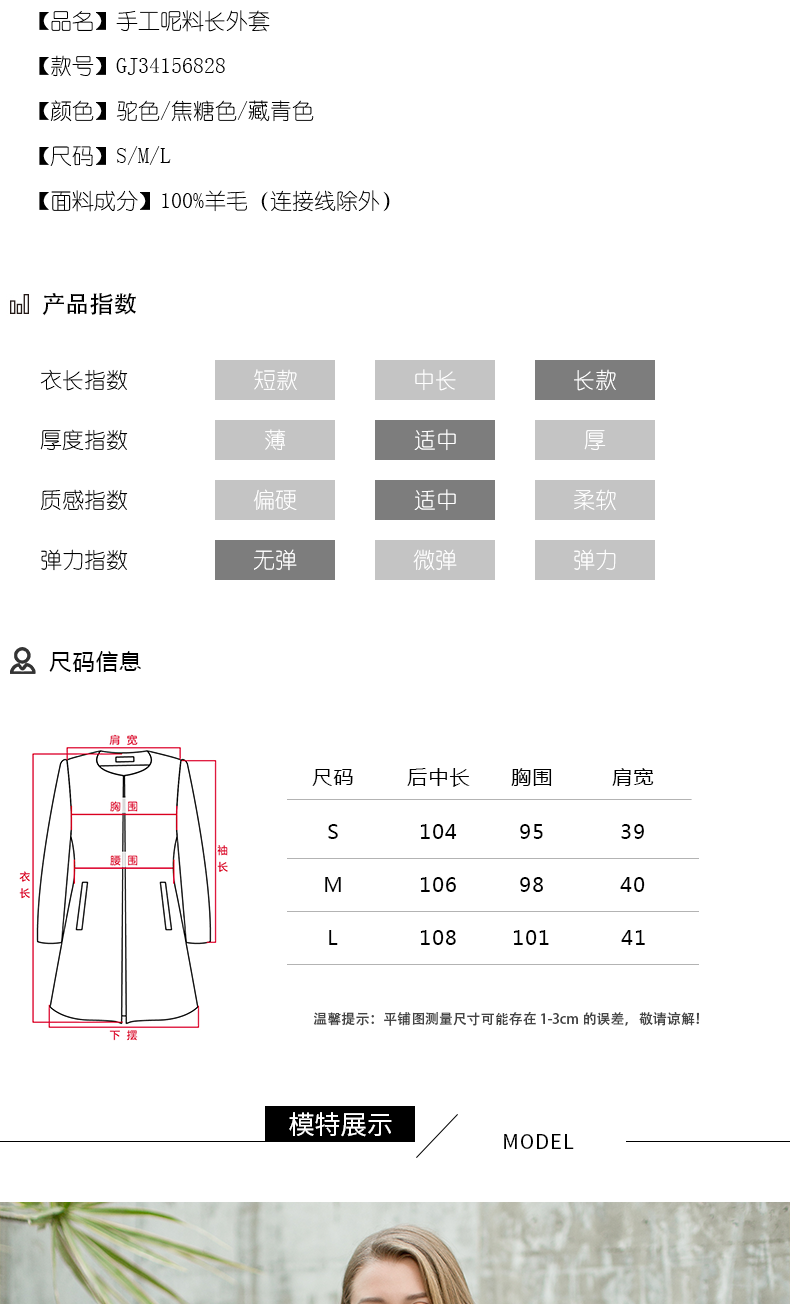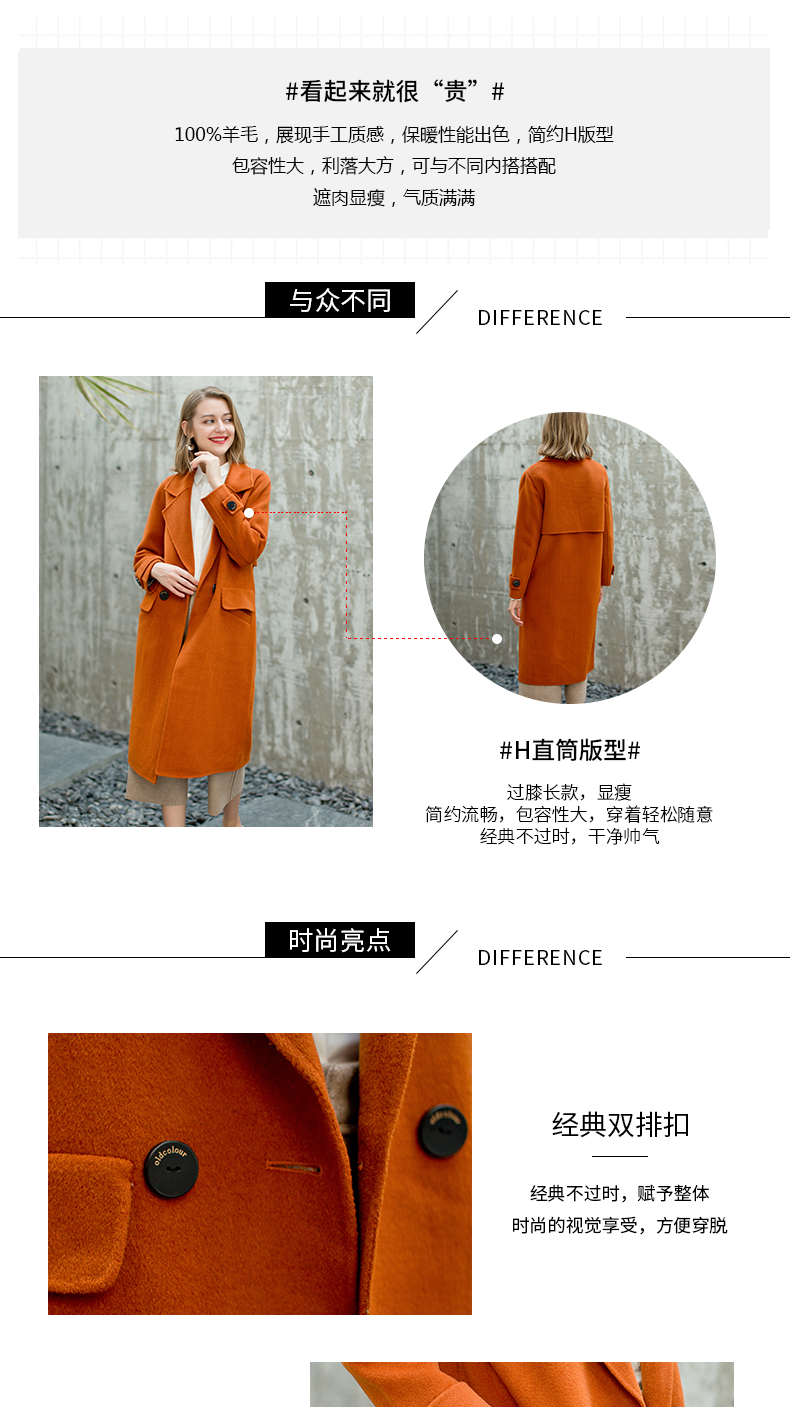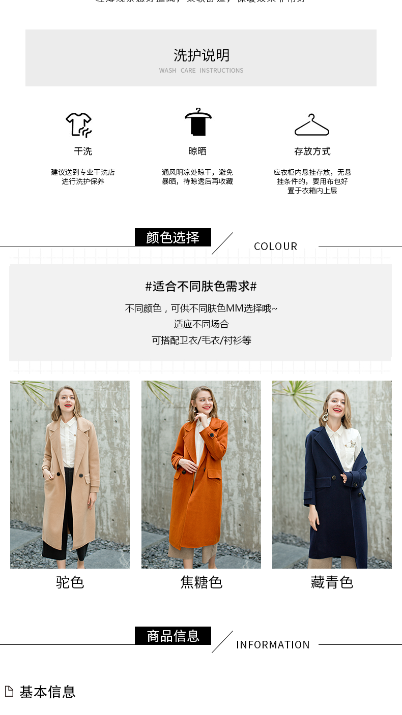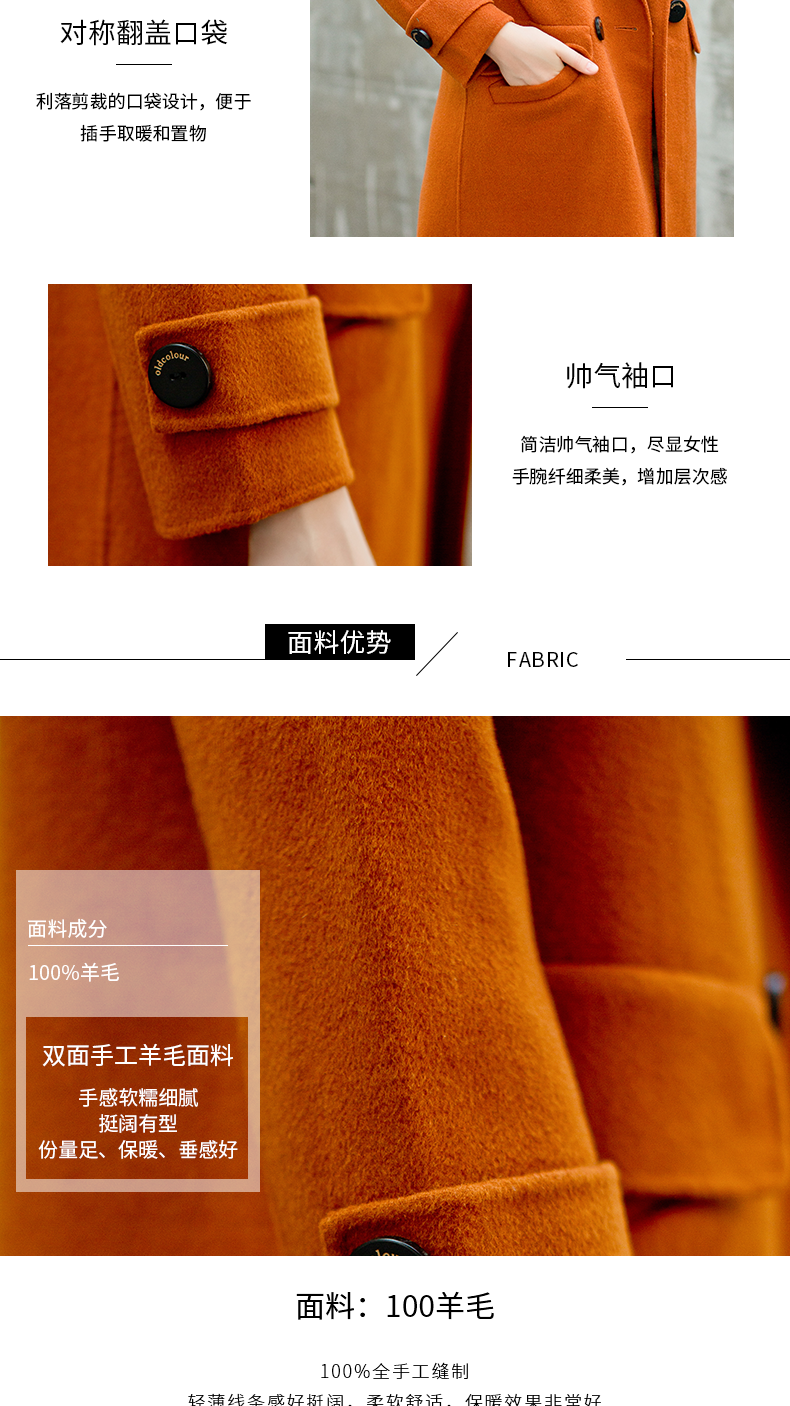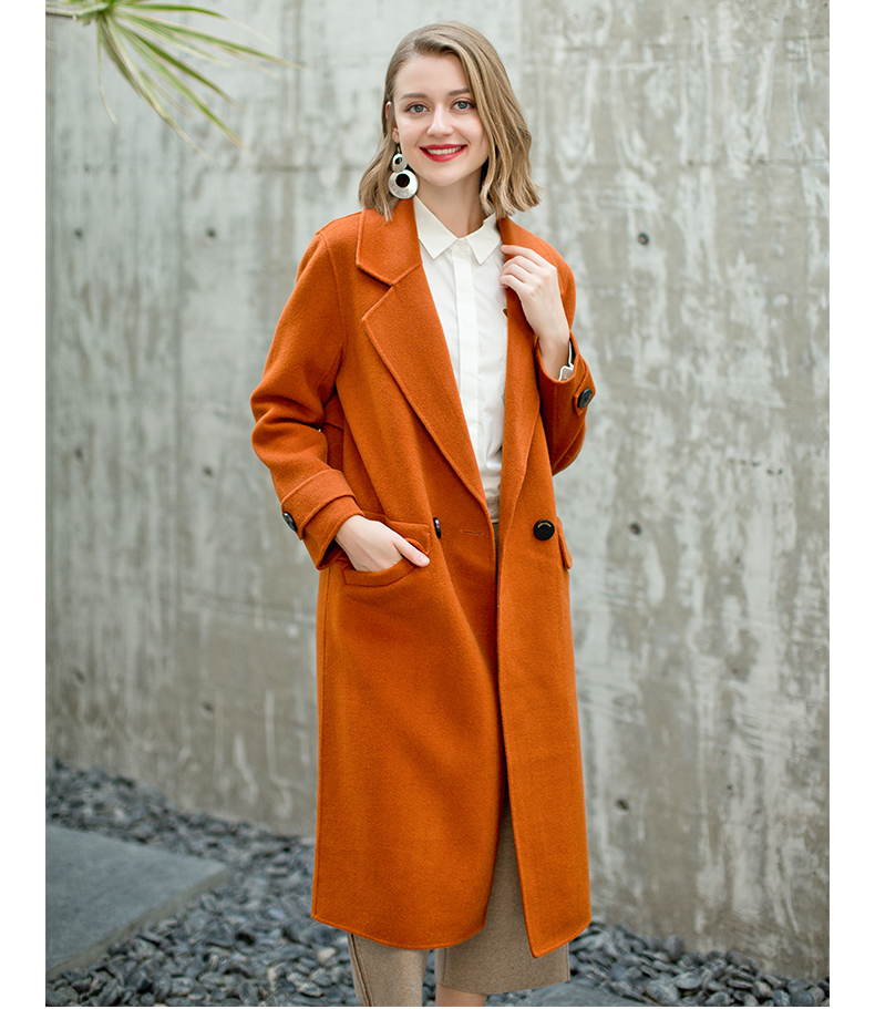 oldcolour欧珂长袖双面长款毛呢大衣女过膝长新款修身显瘦