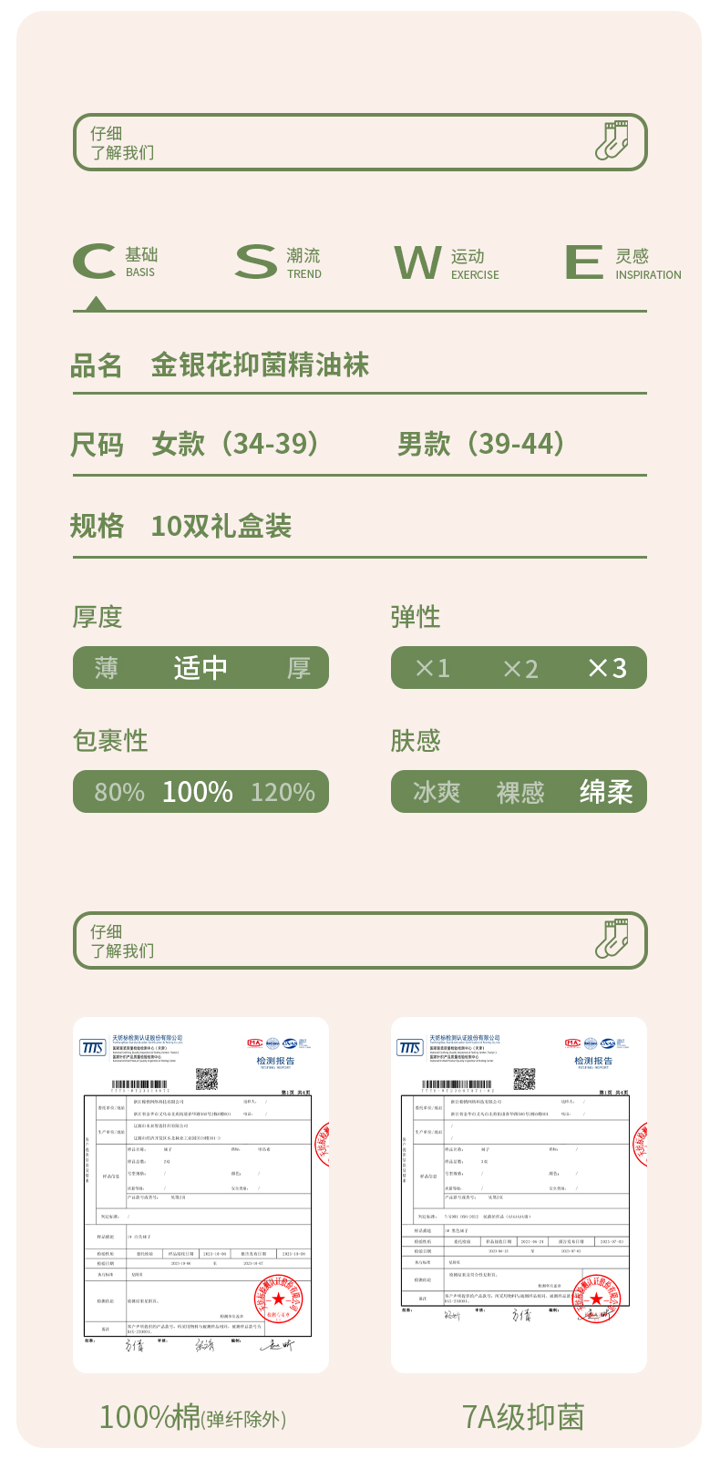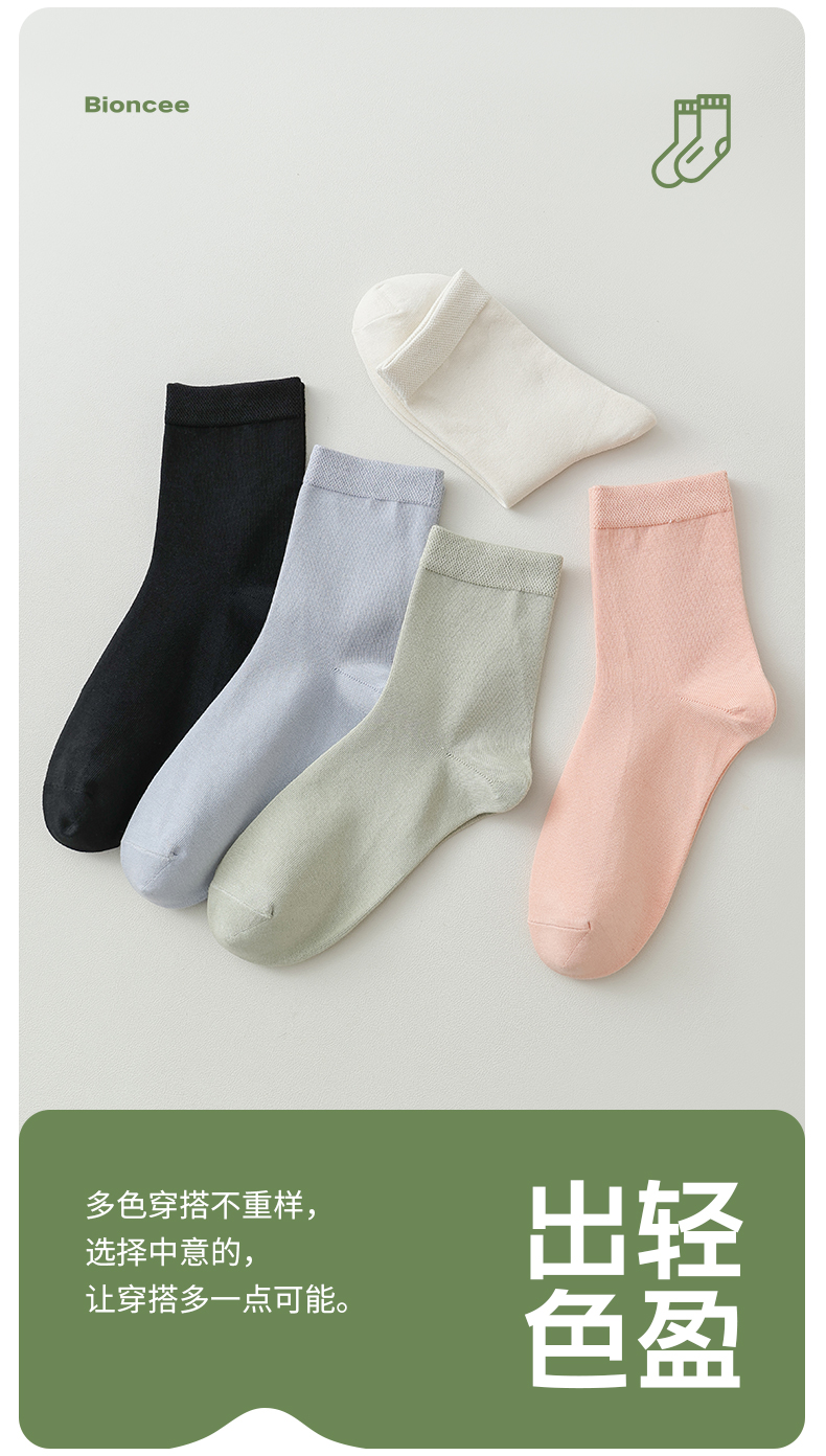 秋冬长款 BIONCEE-7A情侣春夏短款云感阿克苏新疆棉袜10双组合、添加金银花精油防臭
