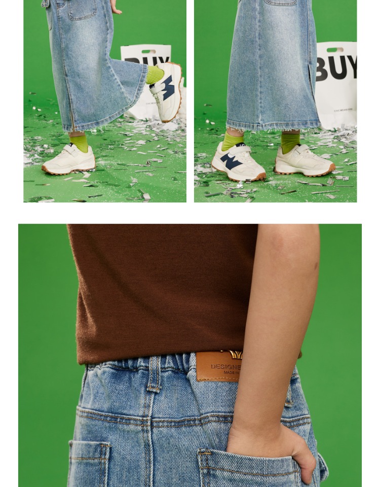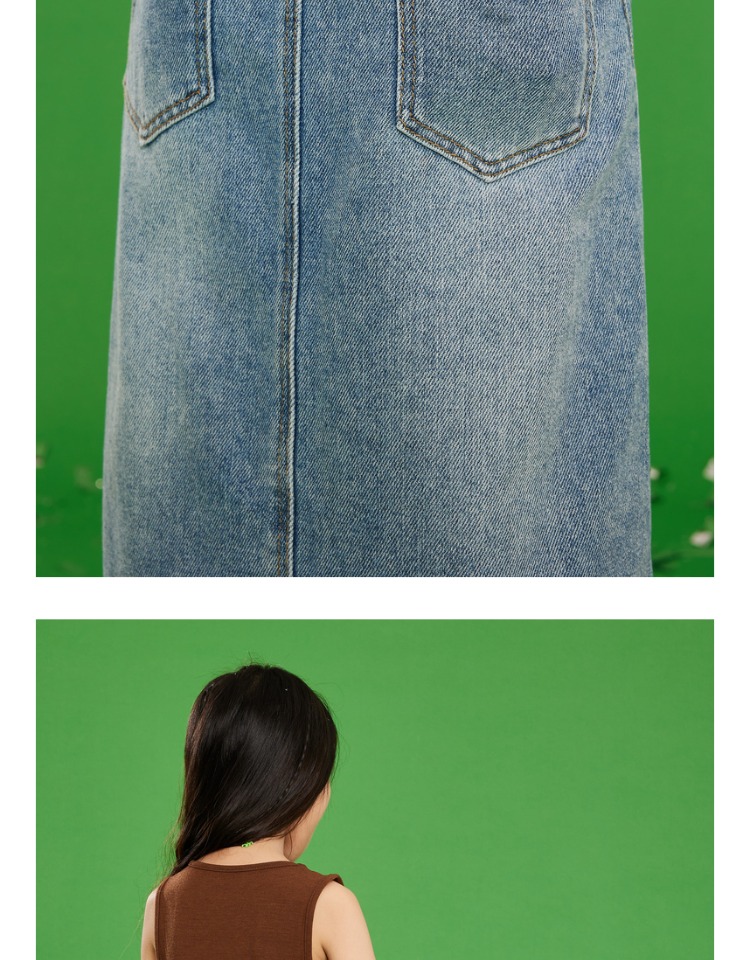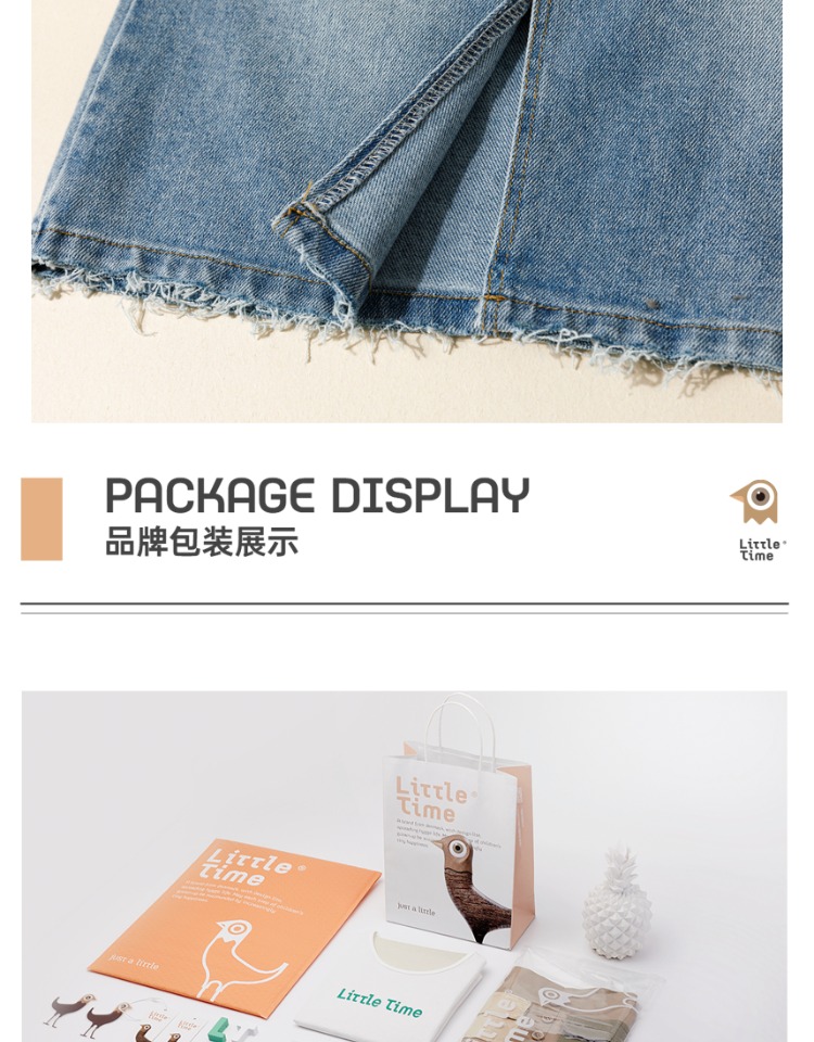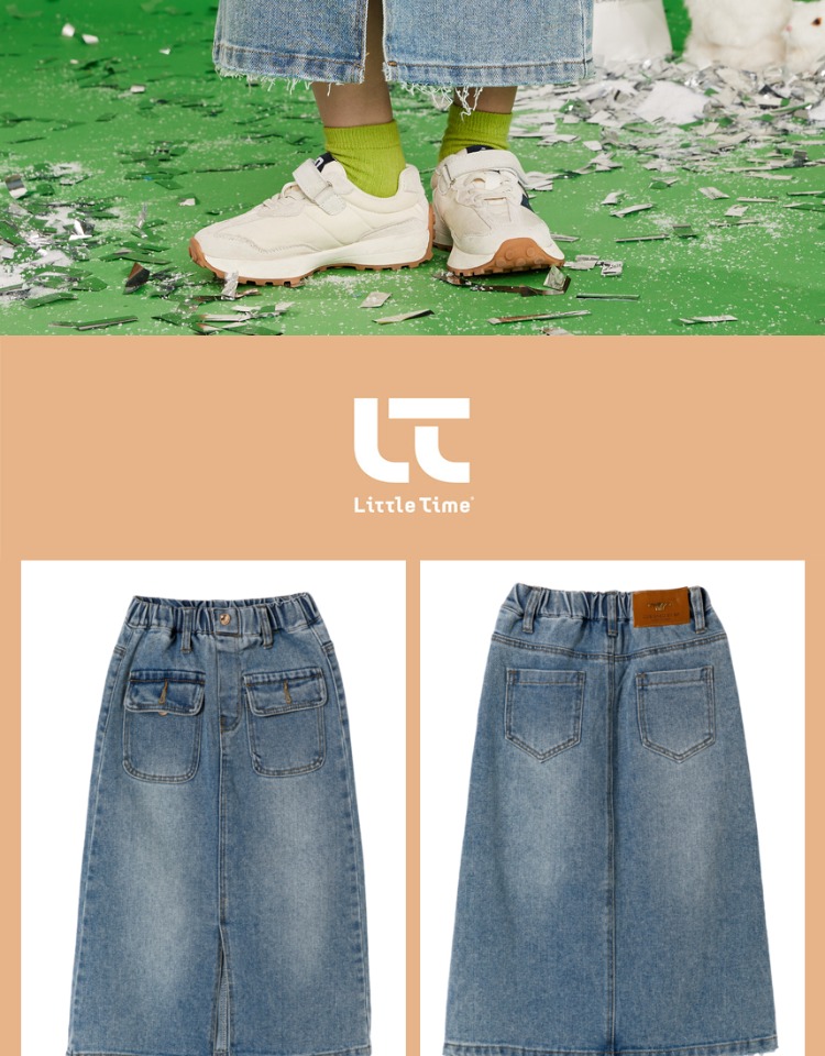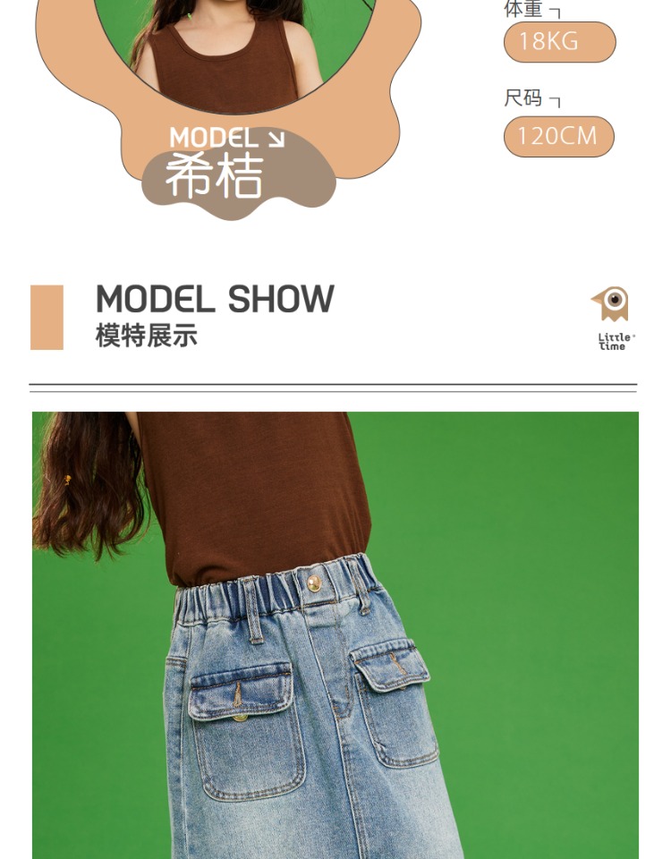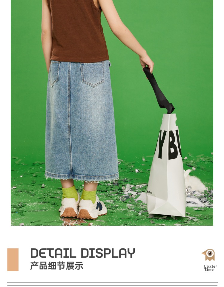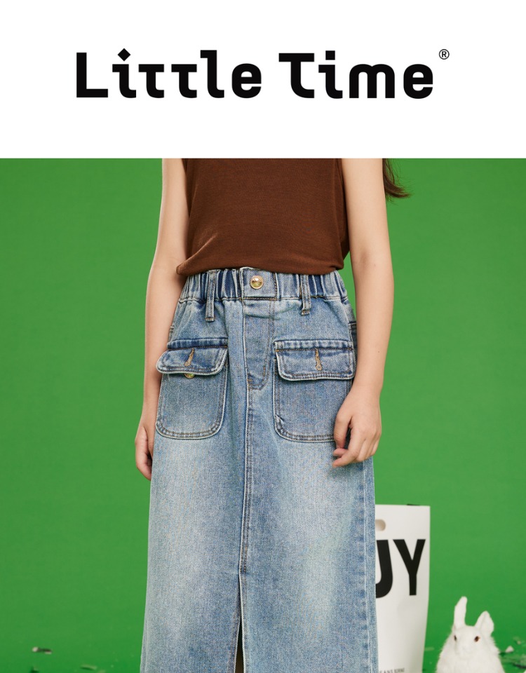 littletime女童牛仔裙半身裙2023夏季新款洋气韩版宽松直筒裙长裙