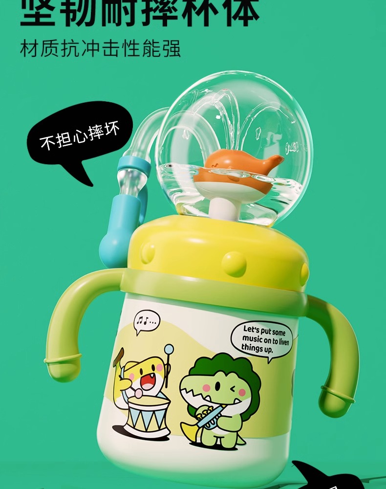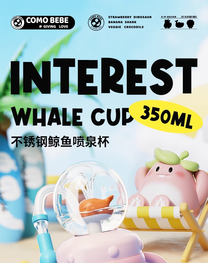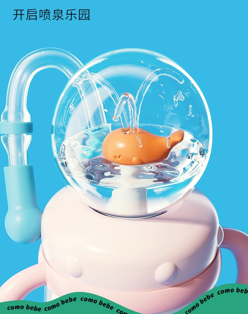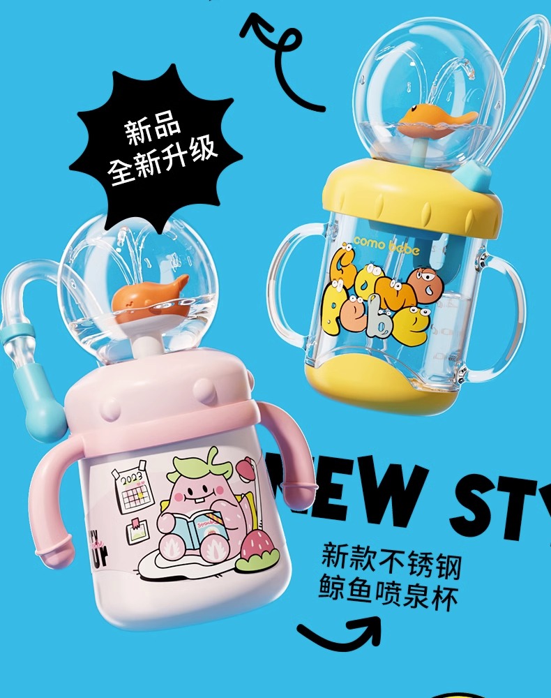新款可萌贝比儿童鲸鱼喷水吸管保温杯 KMBB