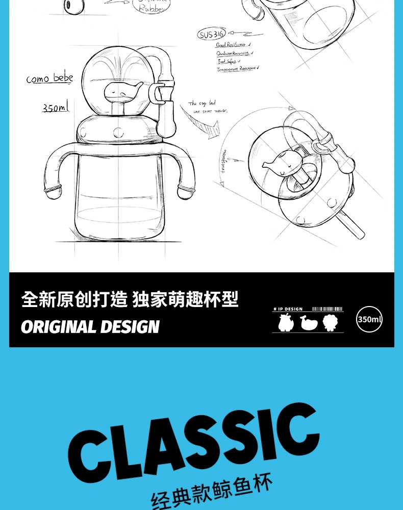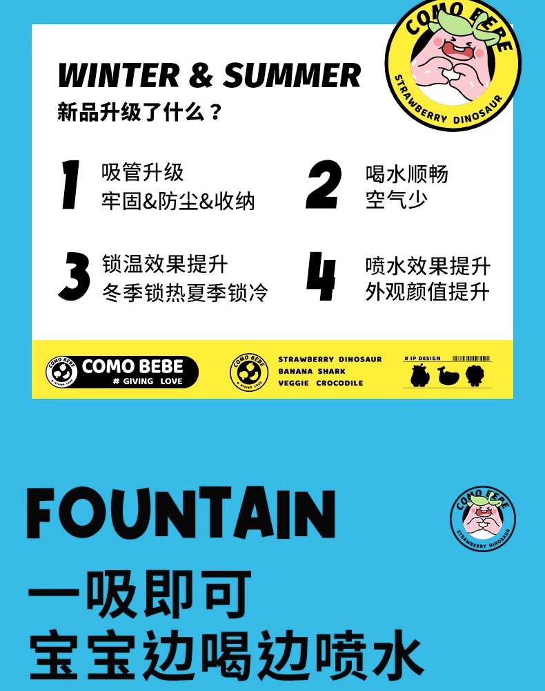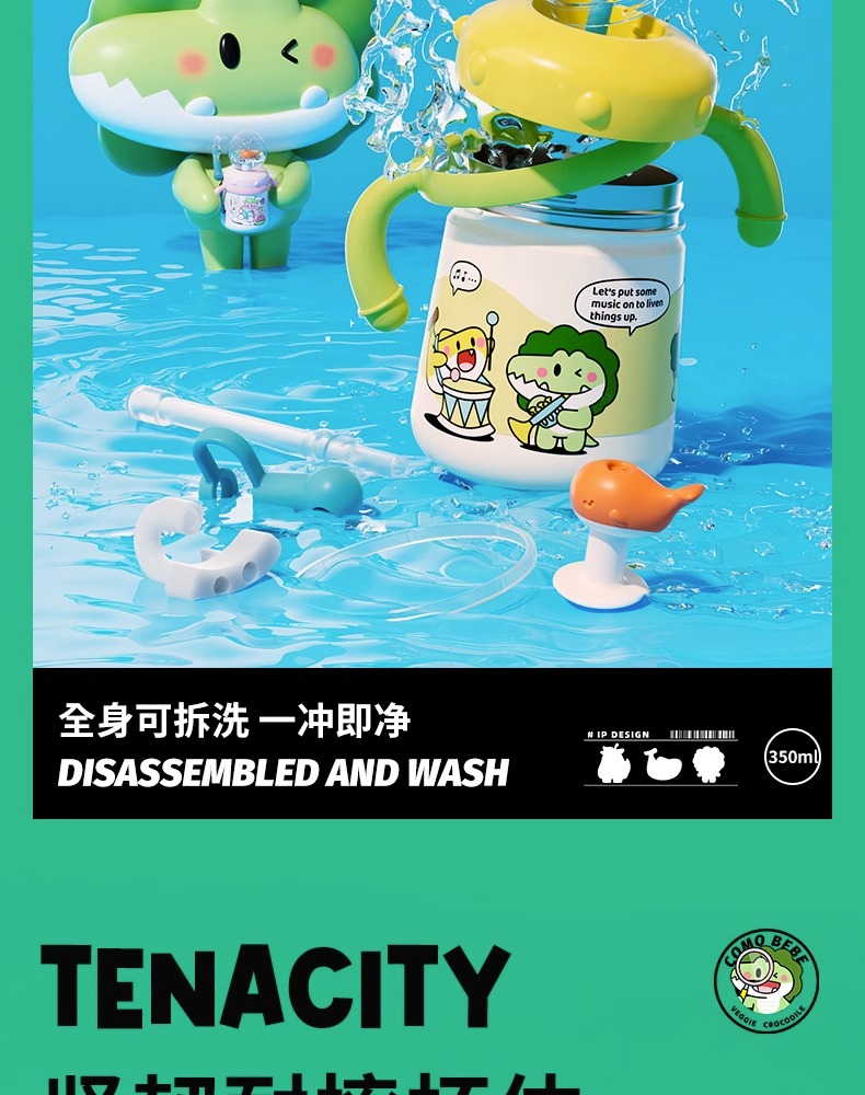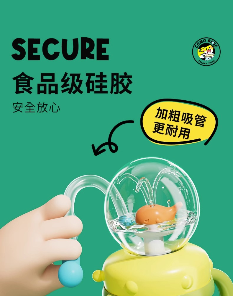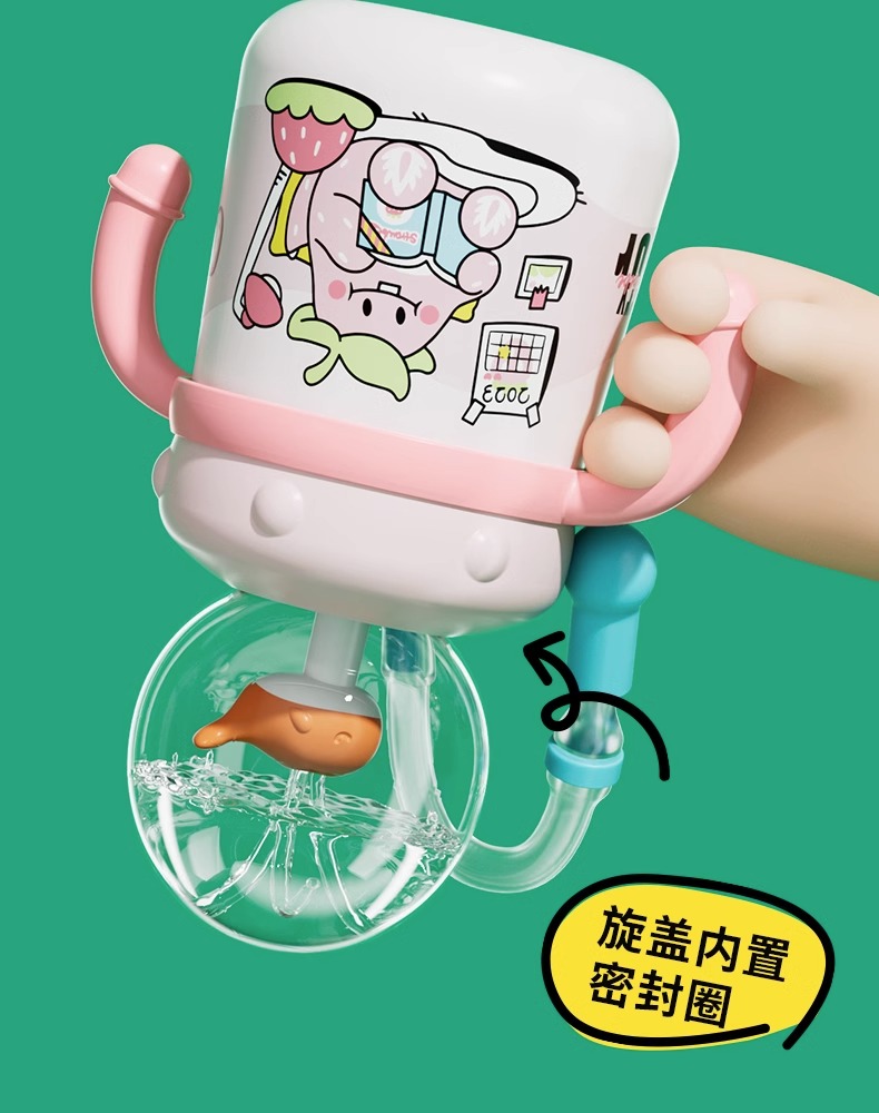 新款可萌贝比儿童鲸鱼喷水吸管保温杯 KMBB