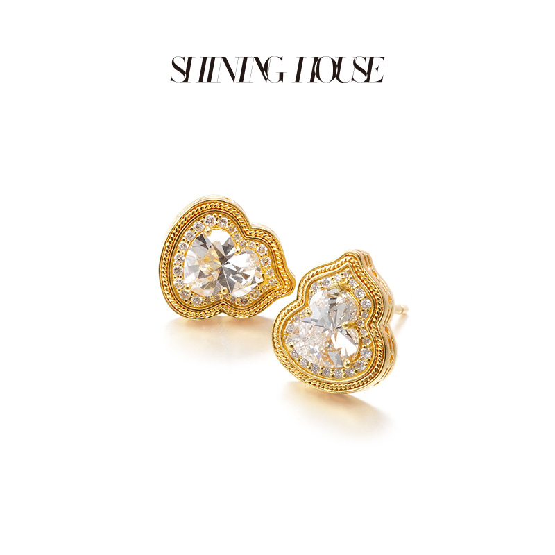 意趣东方系列 ShiningHouse[培育] 足金钻石耳饰 葫芦形1克拉钻人工真钻人造钻石古法黄金时尚钻石耳饰耳钉耳环【此商品不支持7天无理由退货退款】预计3日发货