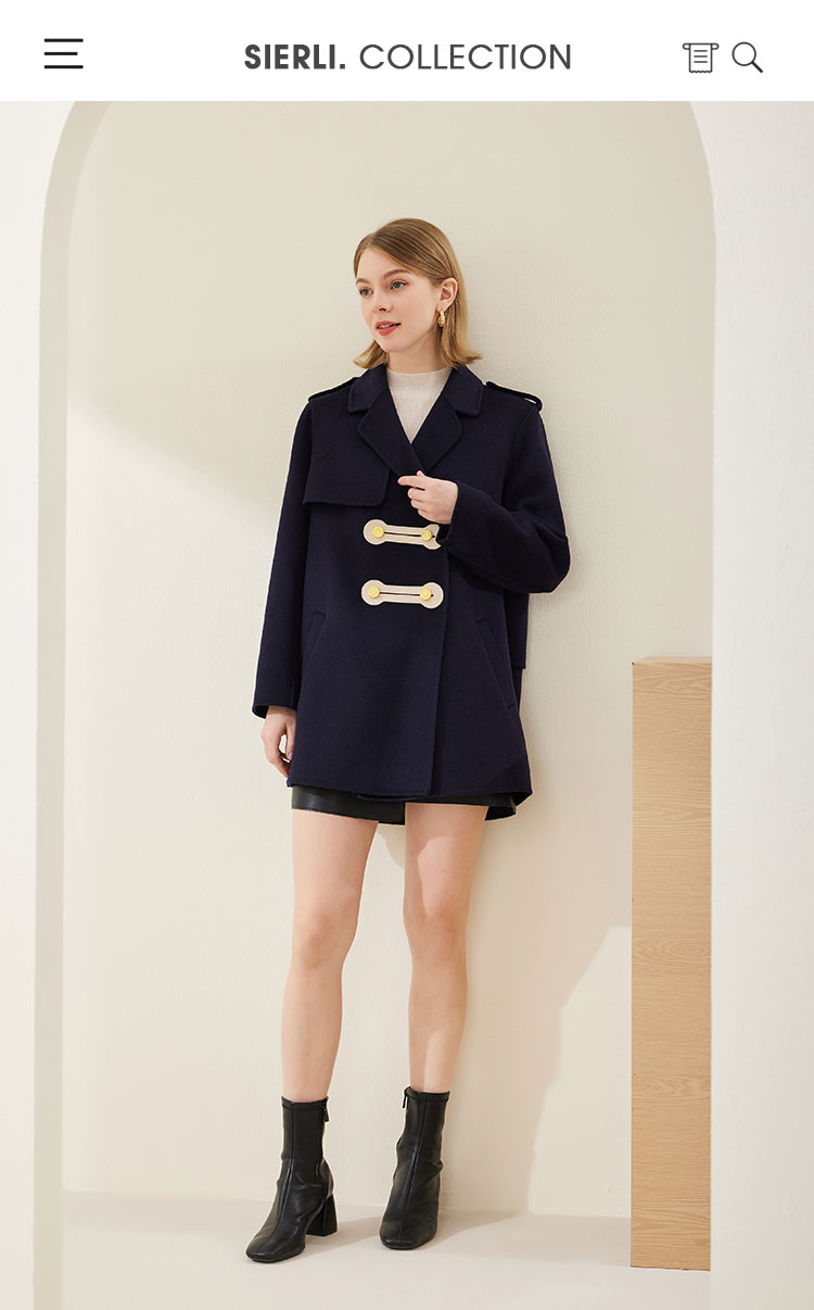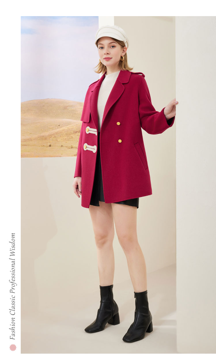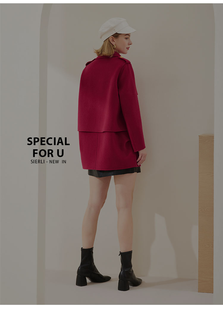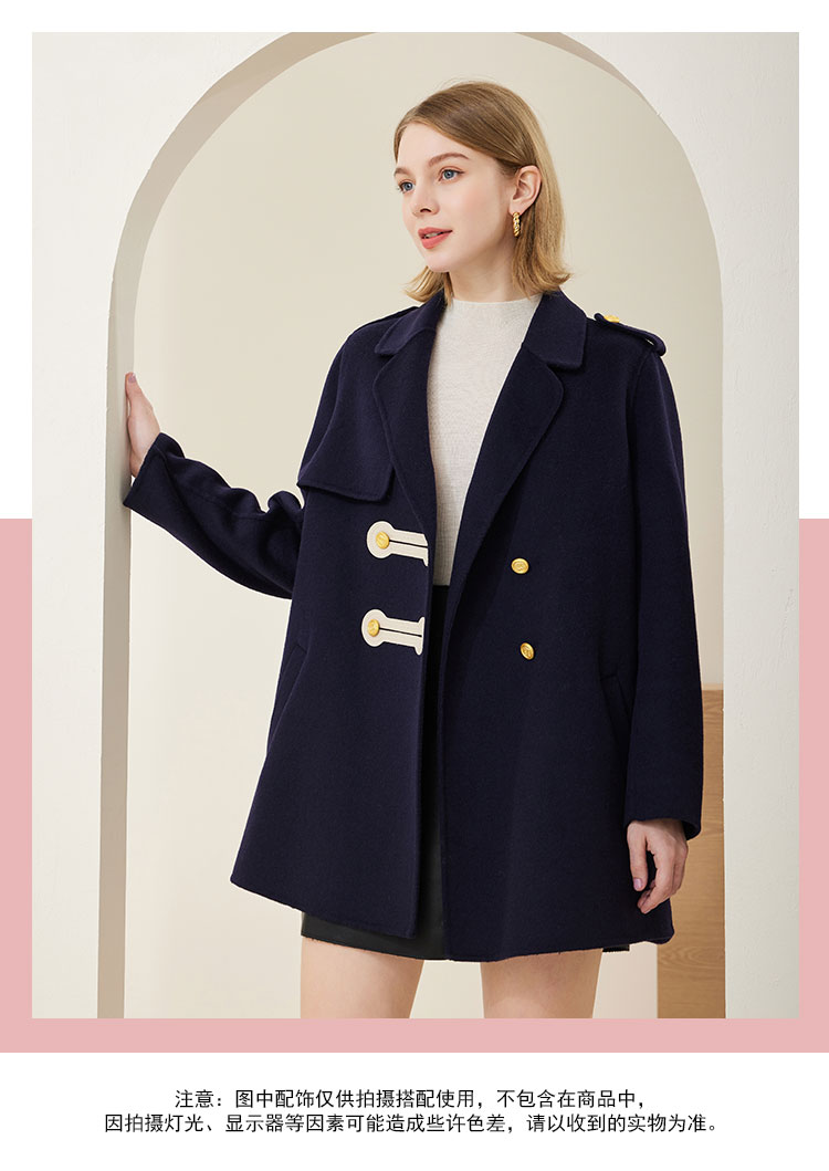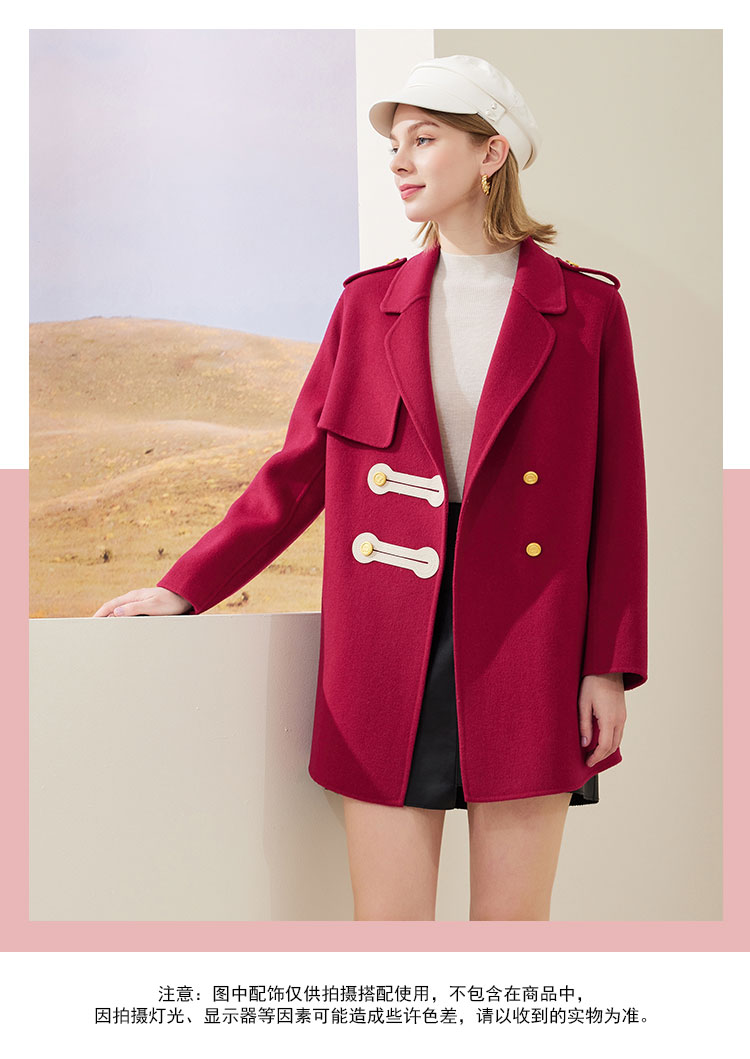 MH9C8斯尔丽瑟俪2022年冬上新商场同款时尚西装领撞色搭畔气质短款大衣