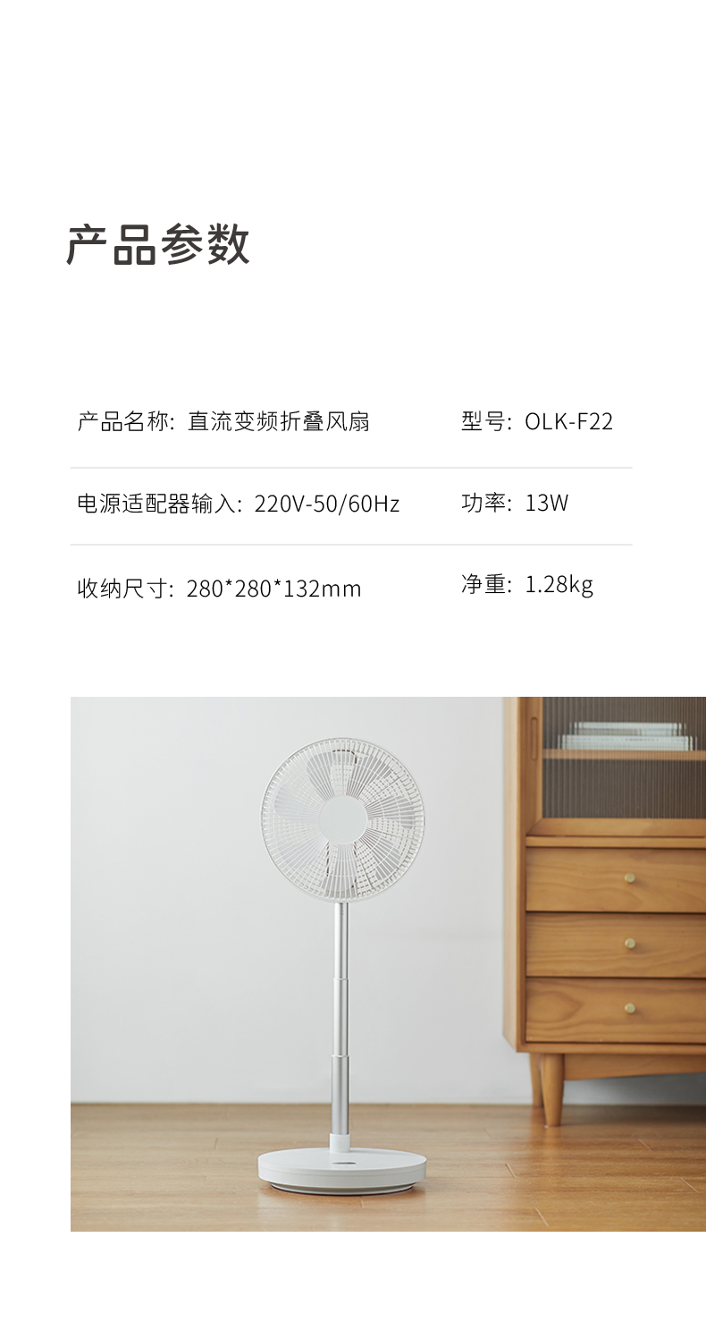 olayks折叠风扇落地扇台式电风扇家用静音伸缩立式风扇空气循环扇