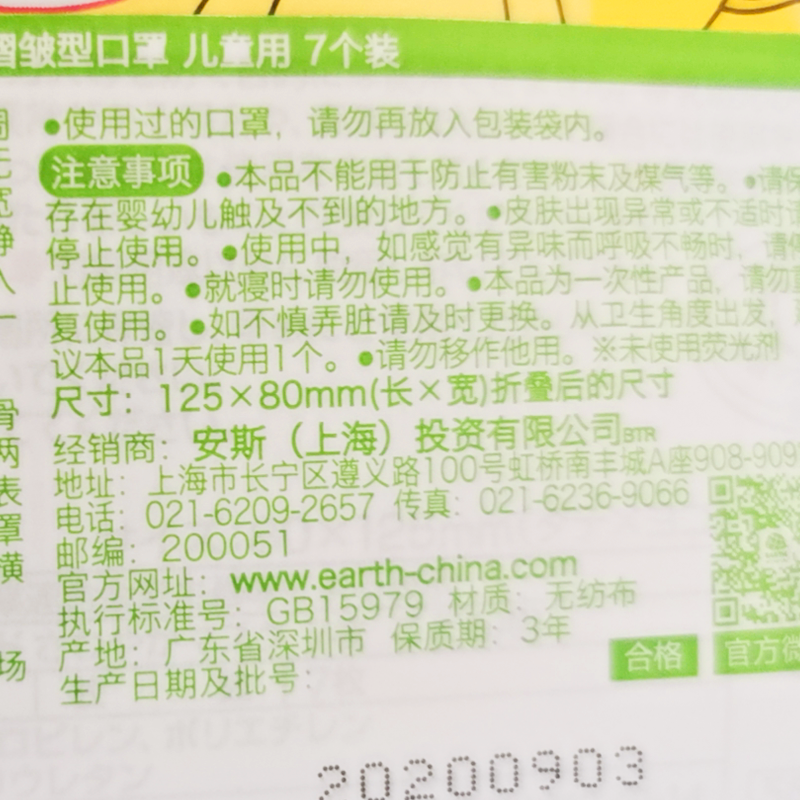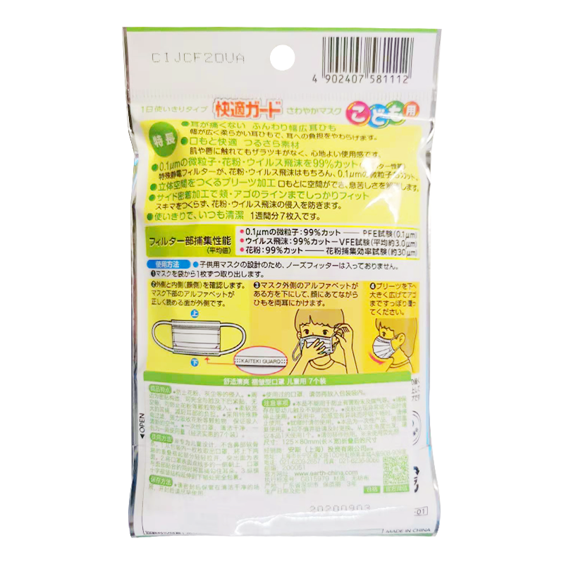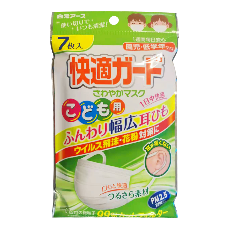 白元 舒适清爽褶皱型口罩 儿童用7个装