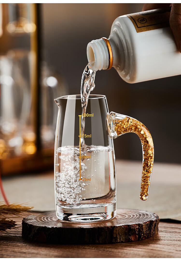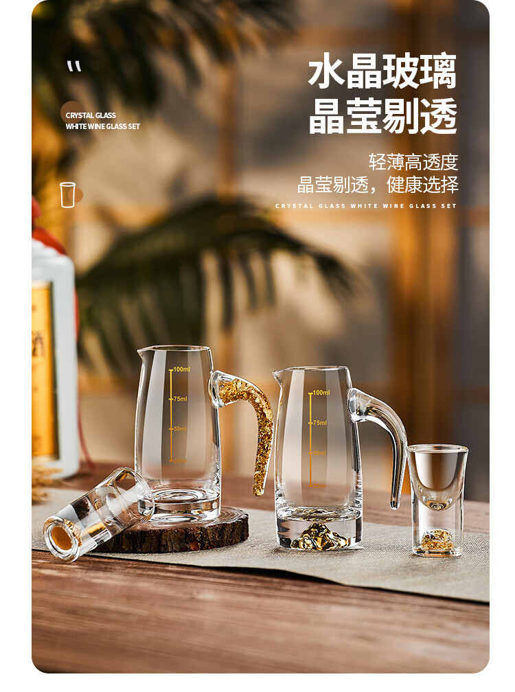 高档白酒杯套装轻奢家用金箔金山分酒器酒具套装 (含麋鹿杯架)