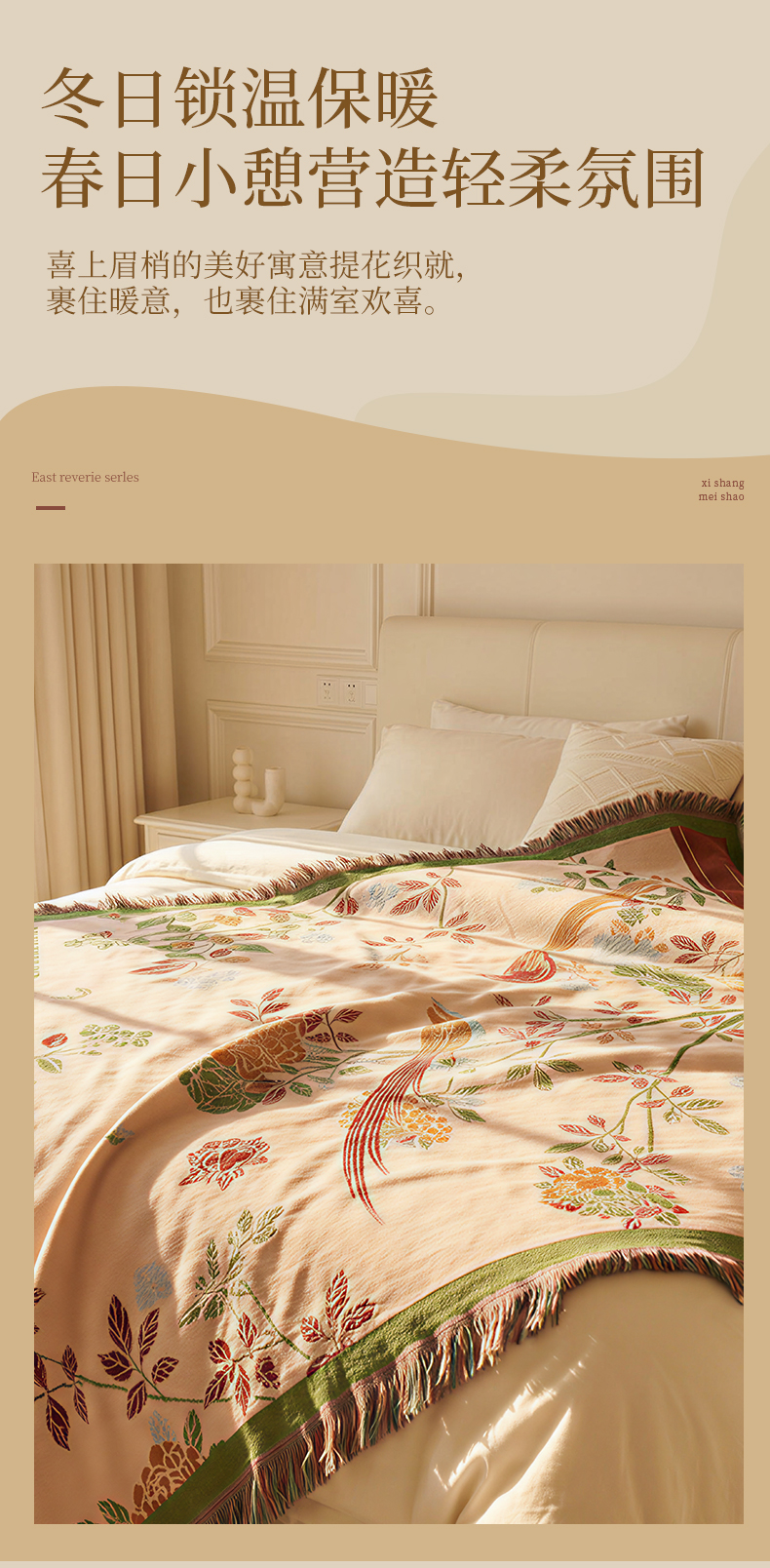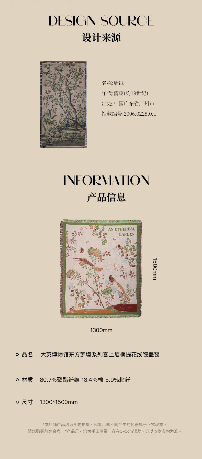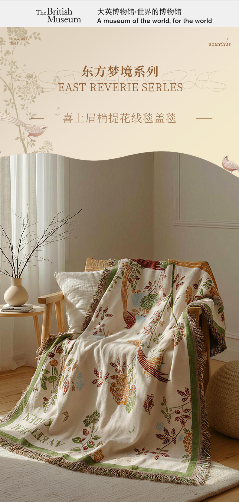 大英博物馆 东方梦境系列 喜上眉梢提花线毯盖毯