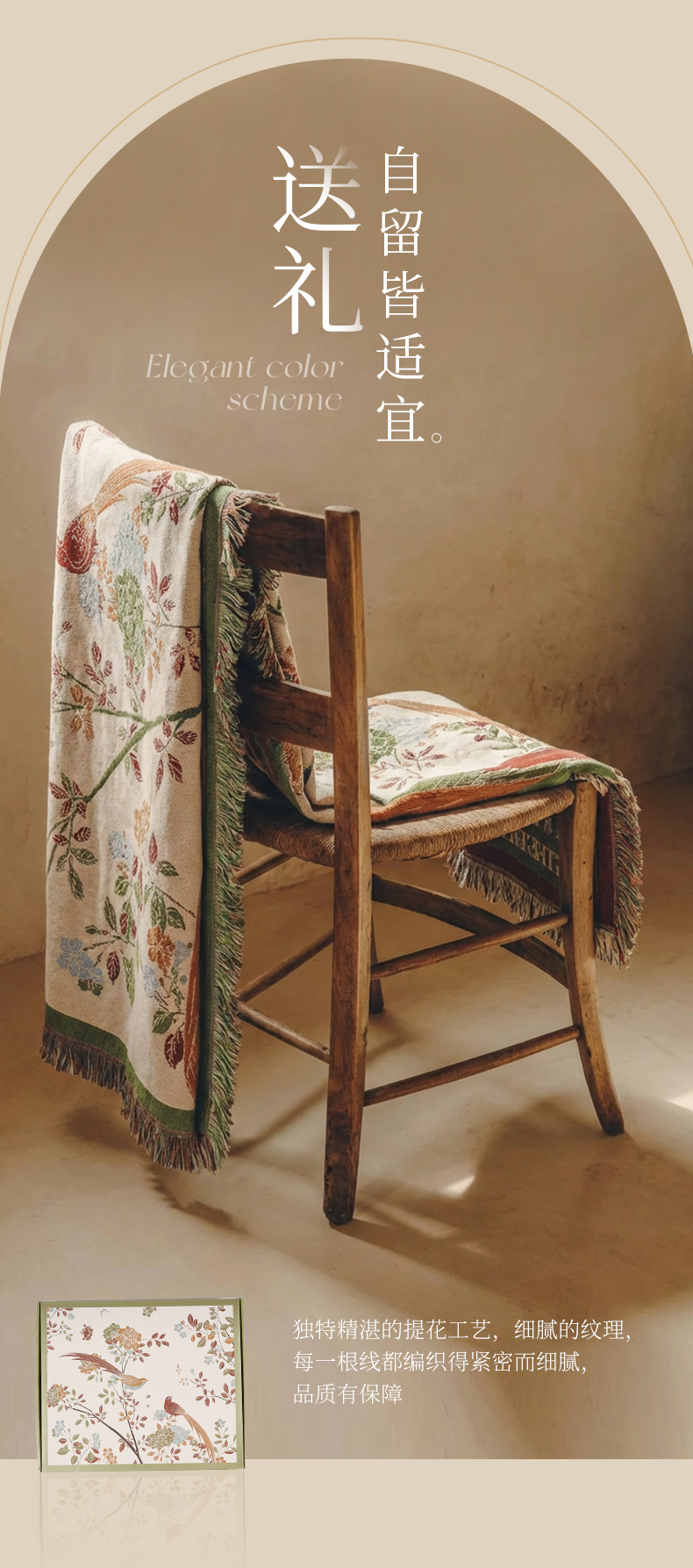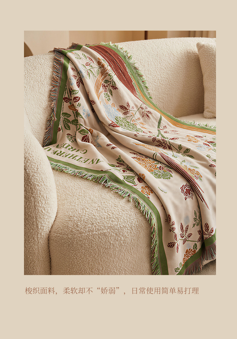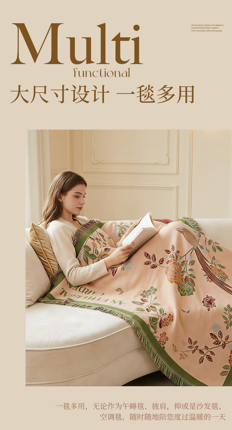 大英博物馆 东方梦境系列 喜上眉梢提花线毯盖毯