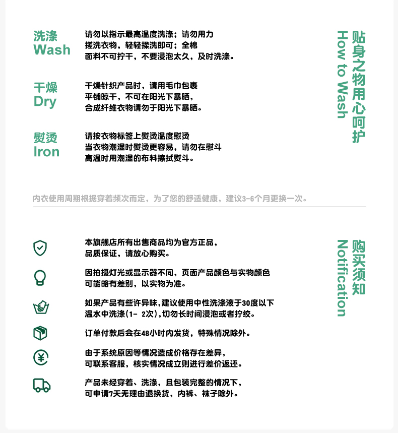 是否支持七天无理由:内裤不退不换,拦截扣3元