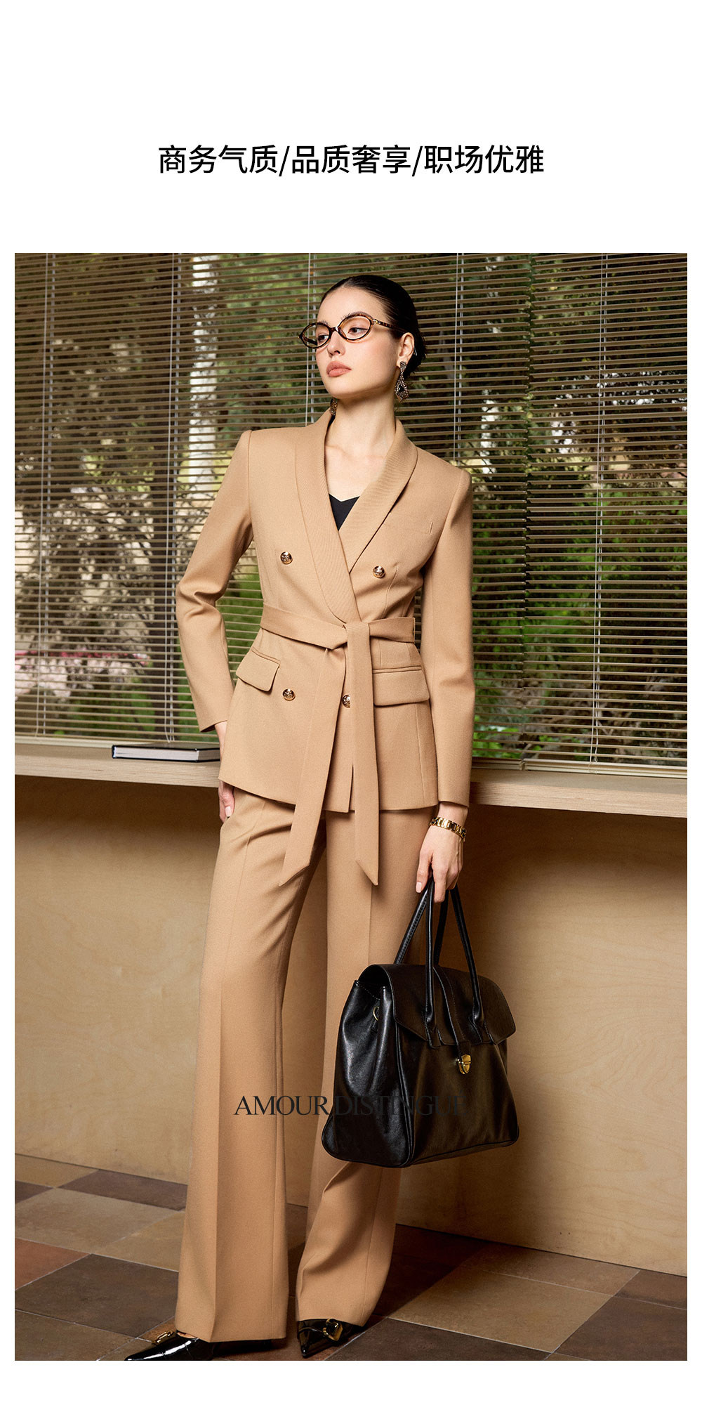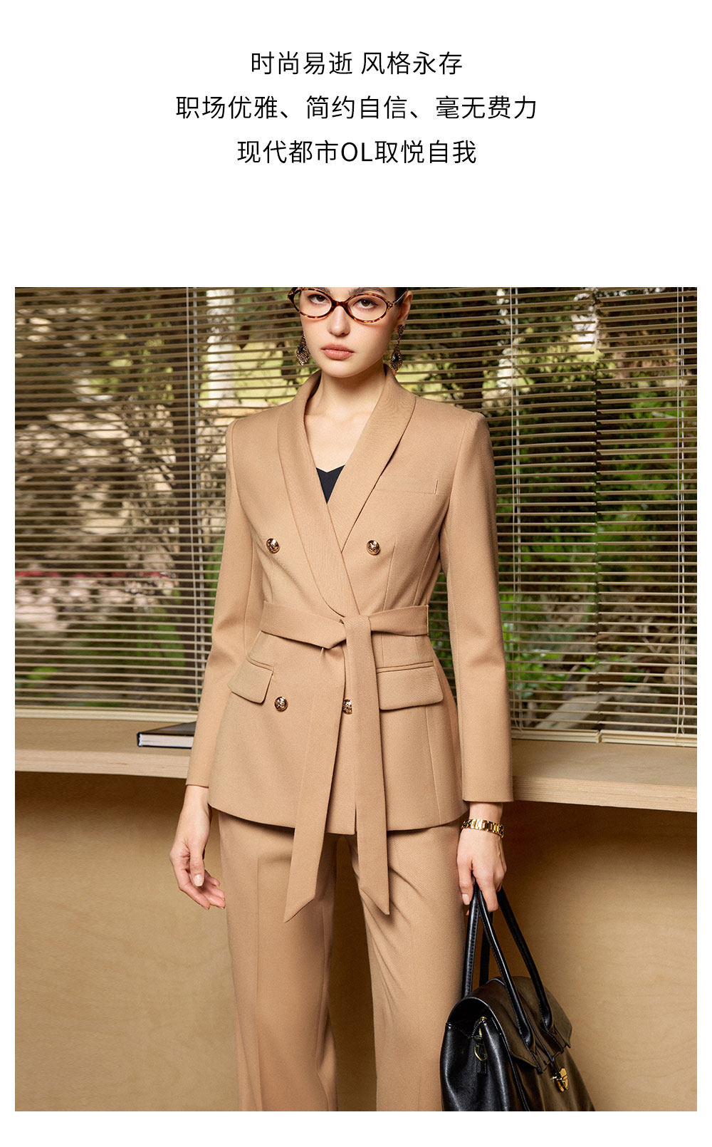 IWY/卡其色双排扣西装套装女职业装通勤高级感商务风两件套正装CP2720