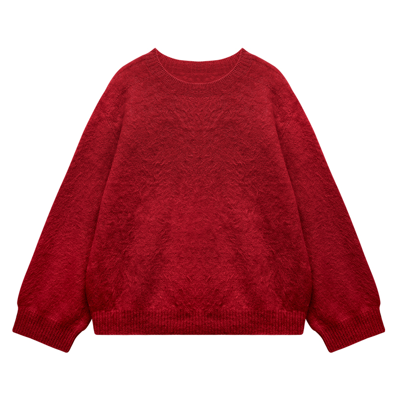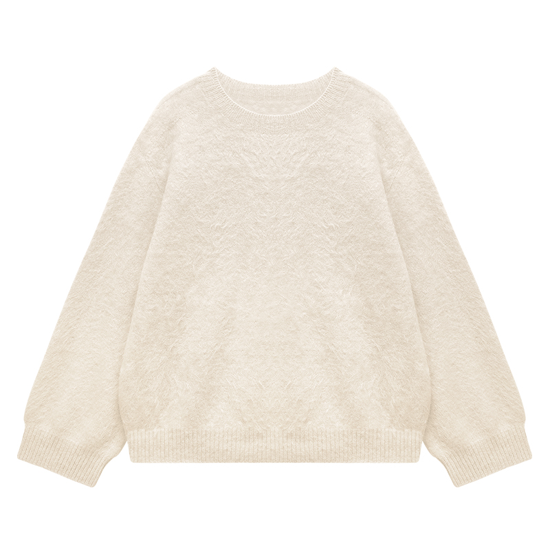 100%山羊绒圆领拉绒上衣