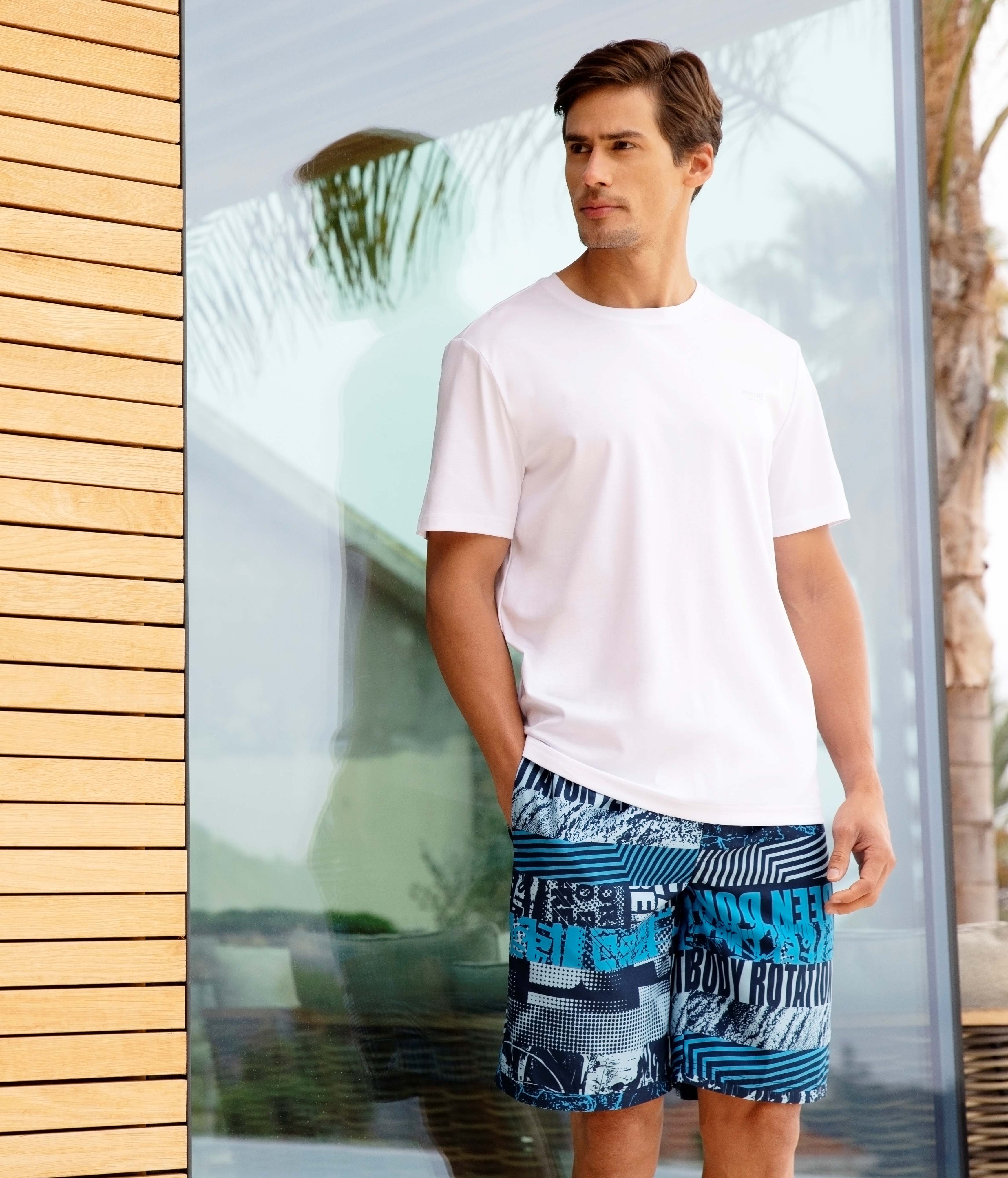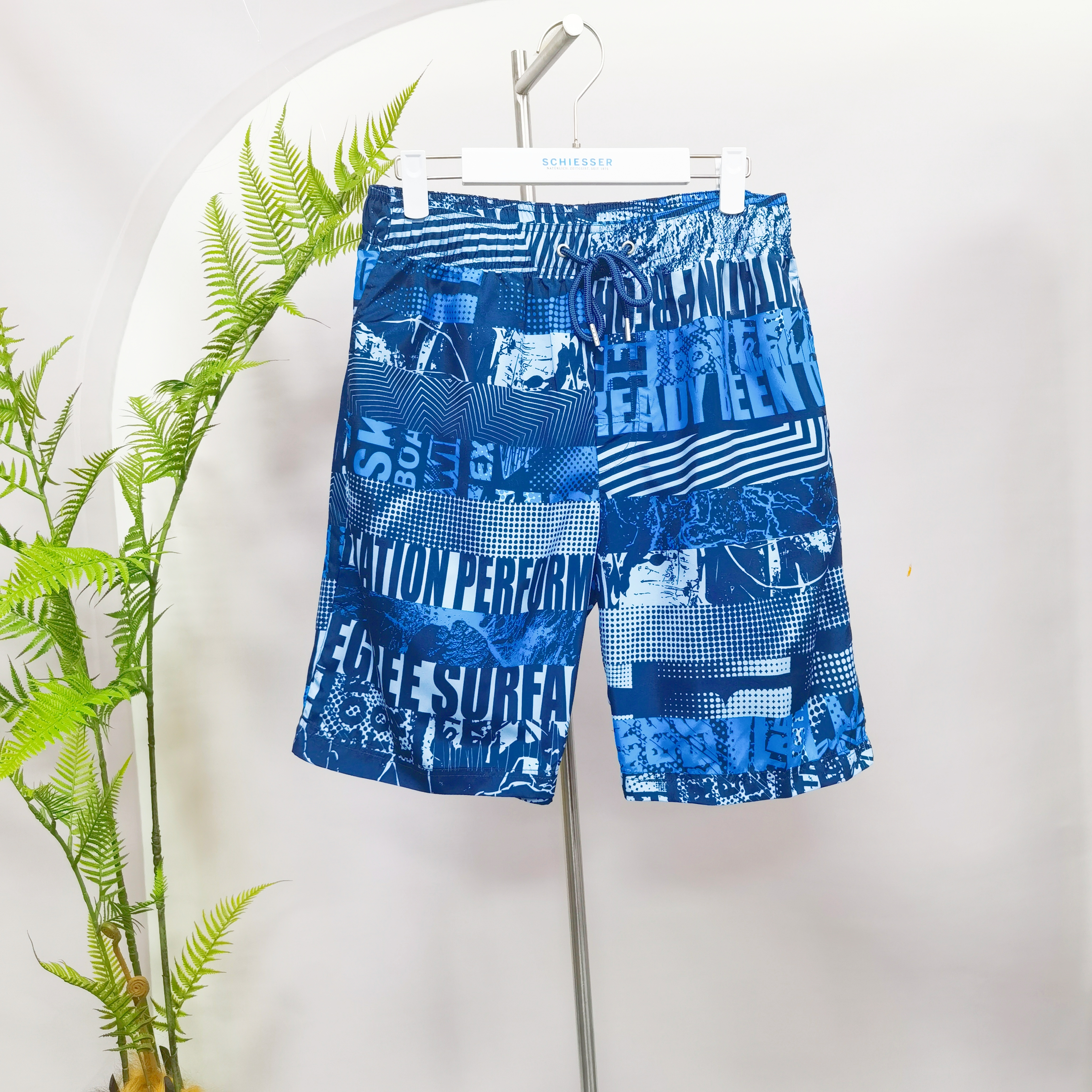 SCHIESSER德国舒雅男士速干沙滩裤度假休闲印花五分短裤39/21055P