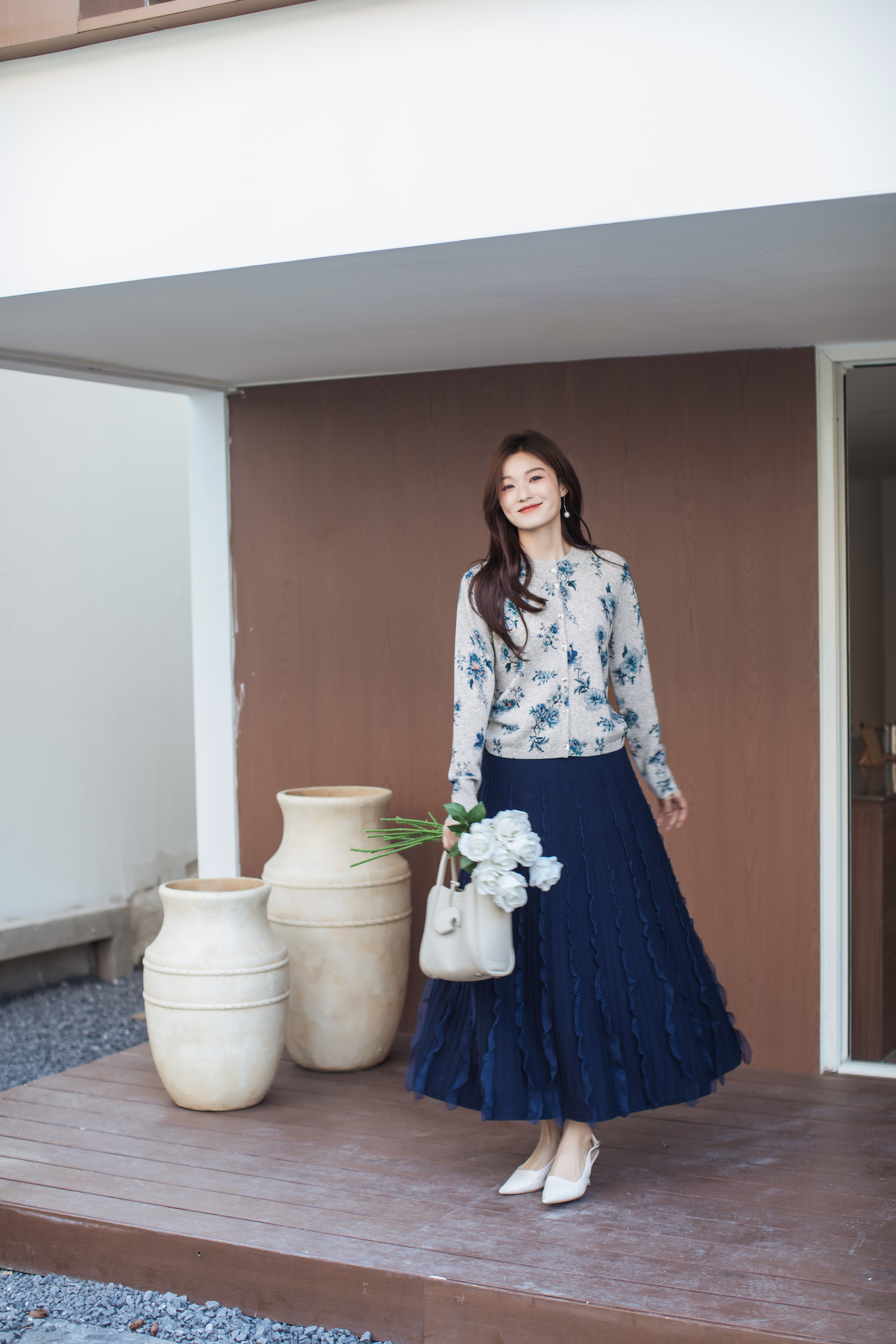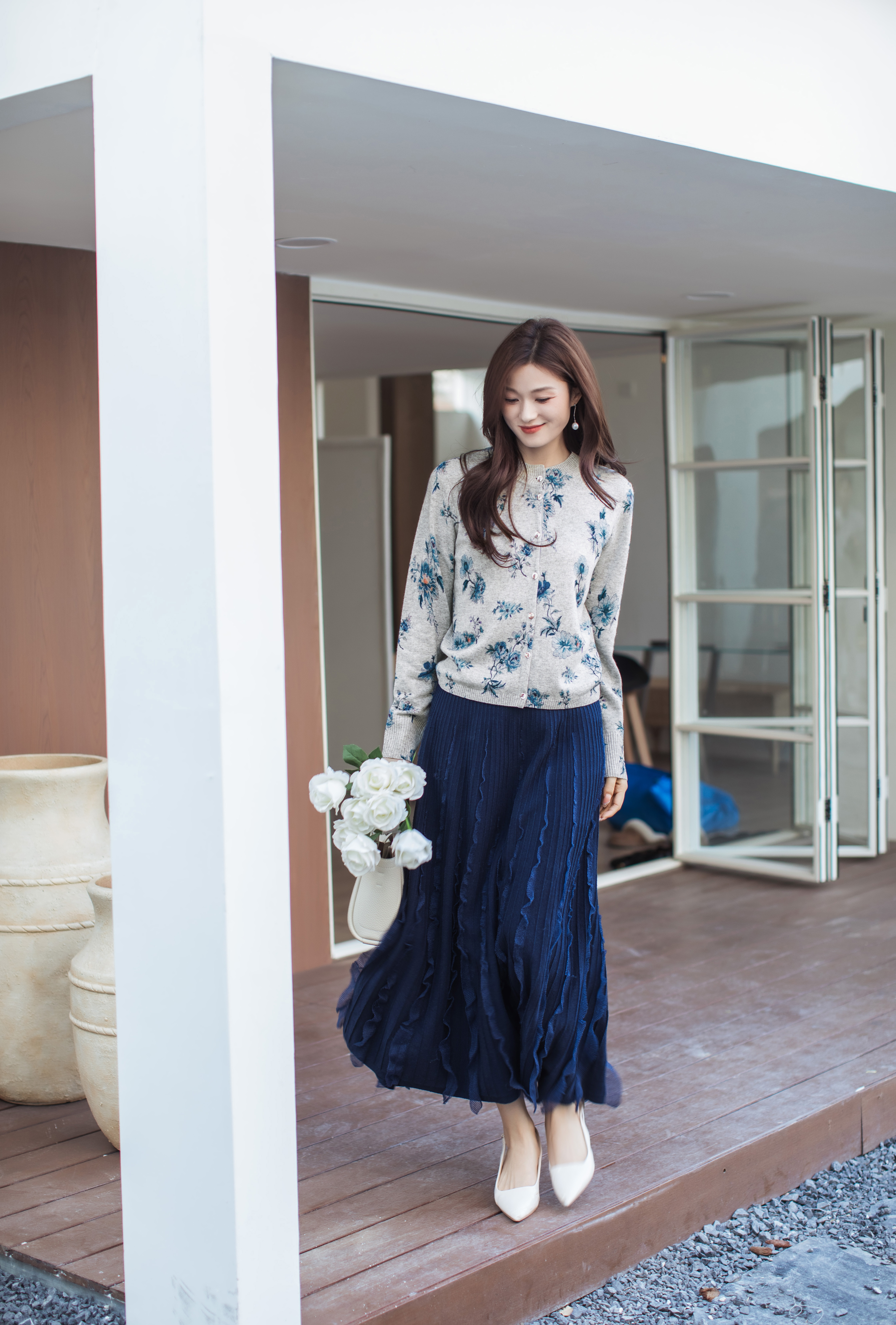 【林栖设计小店】(现货)花颜芳华|绵羊毛优雅多色印花2026春新款修身毛织外套G1961388