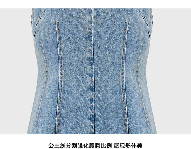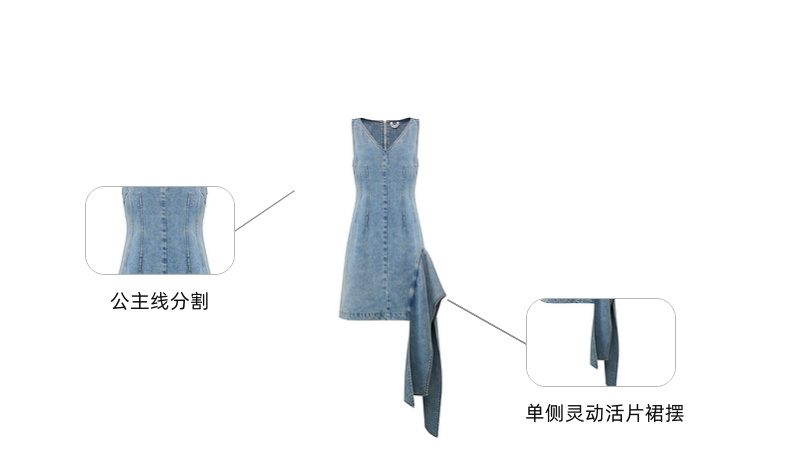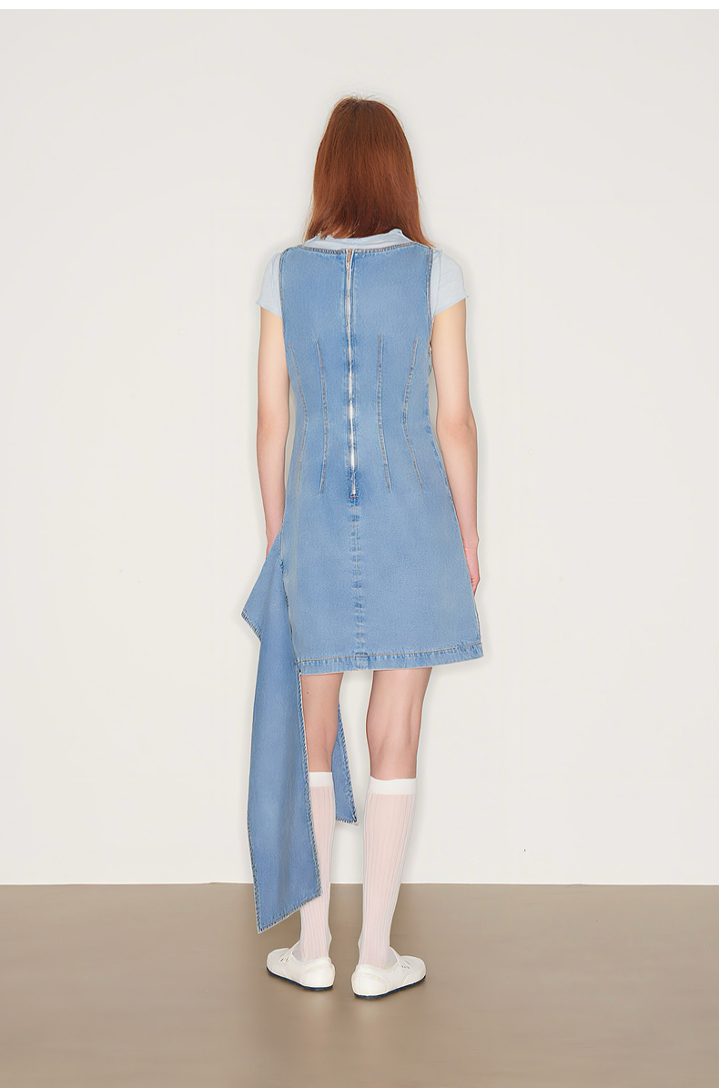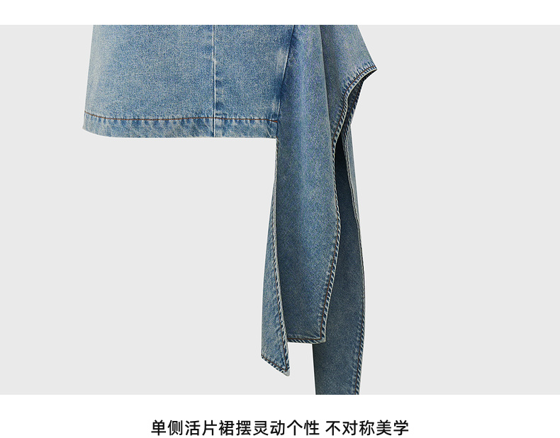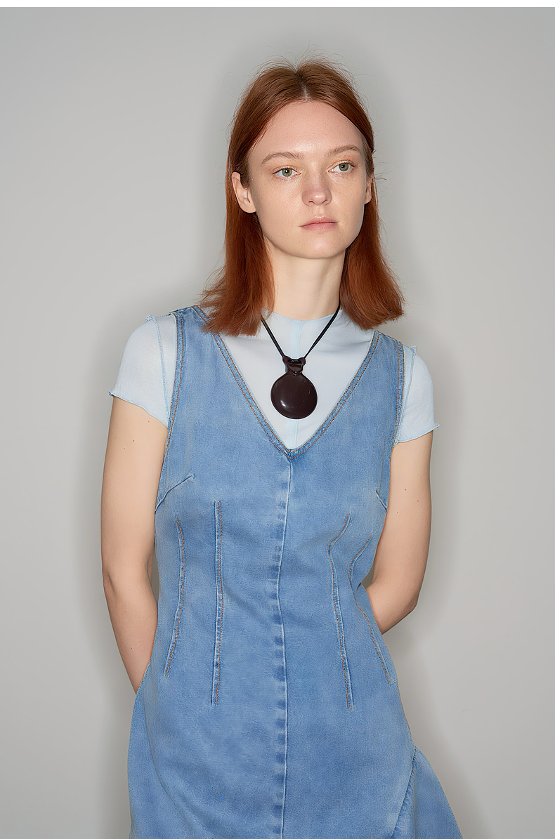 lost in echo2025秋冬新款V领个性不对称活片收腰修身牛仔连衣裙