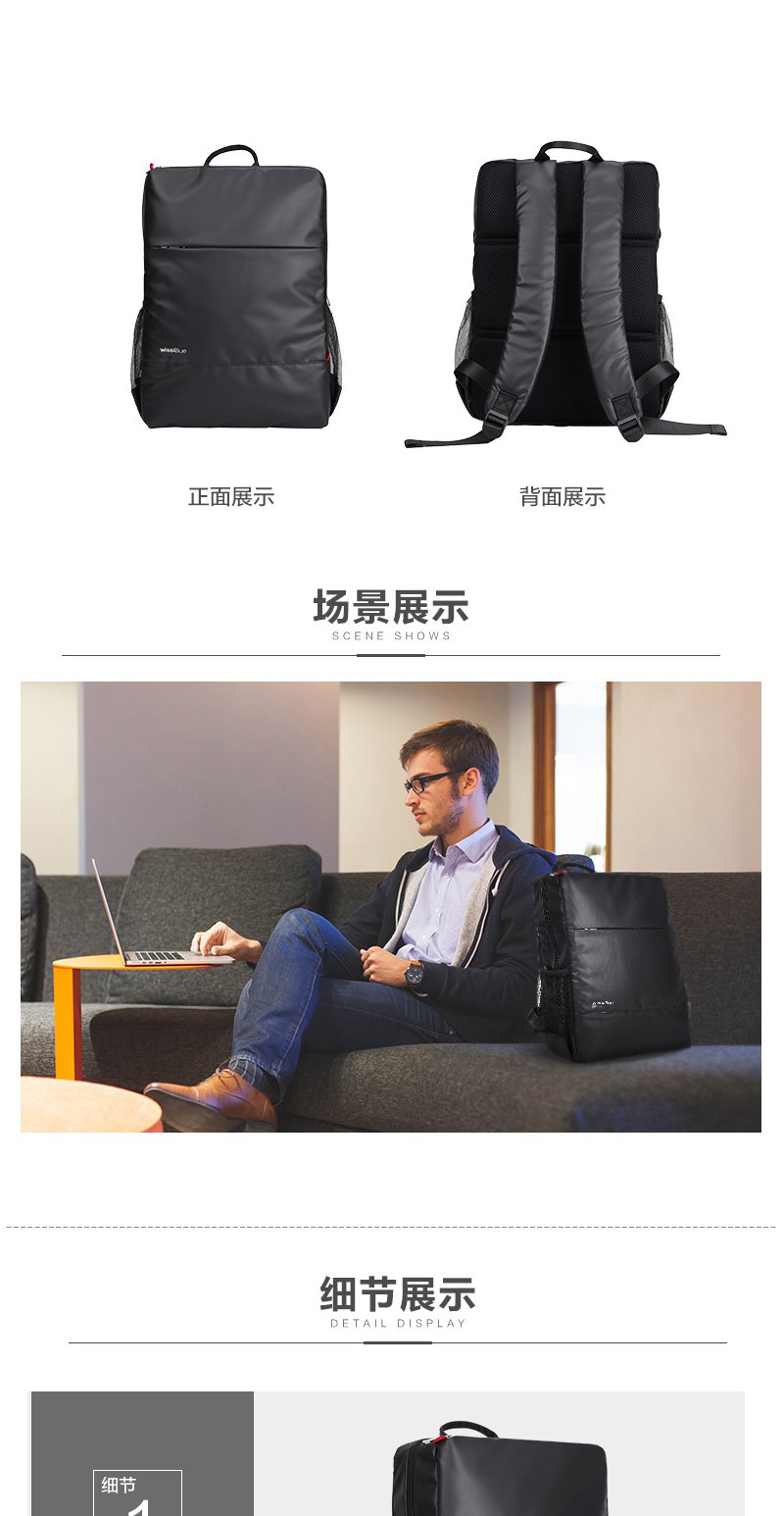 维仕蓝Wissblue商务休闲背包短途旅行上下班电脑背包WB1171-BK