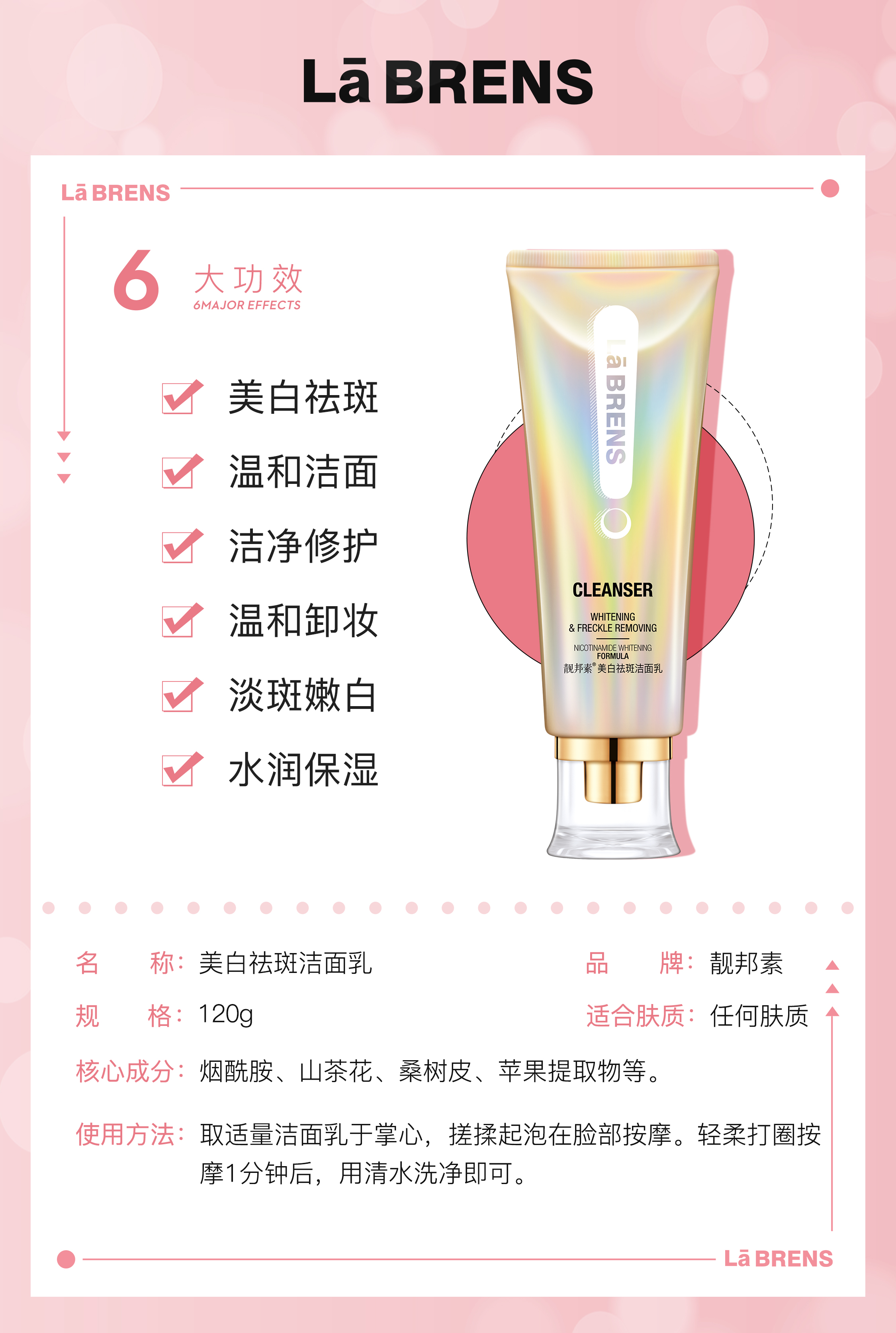 【双11狂欢节】【靓邦素】美白祛斑洁面乳 120g
