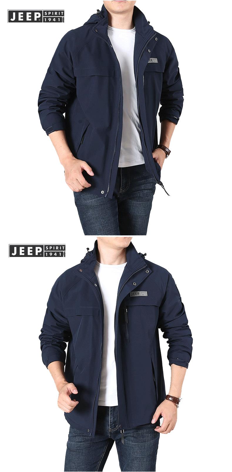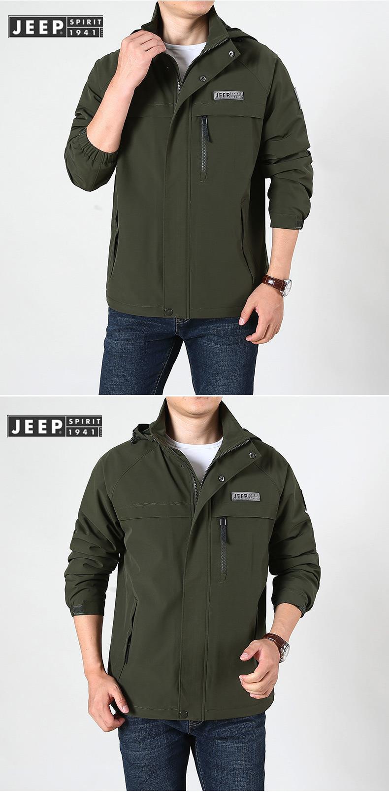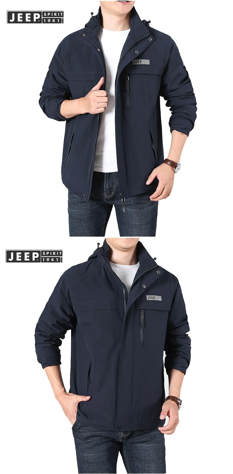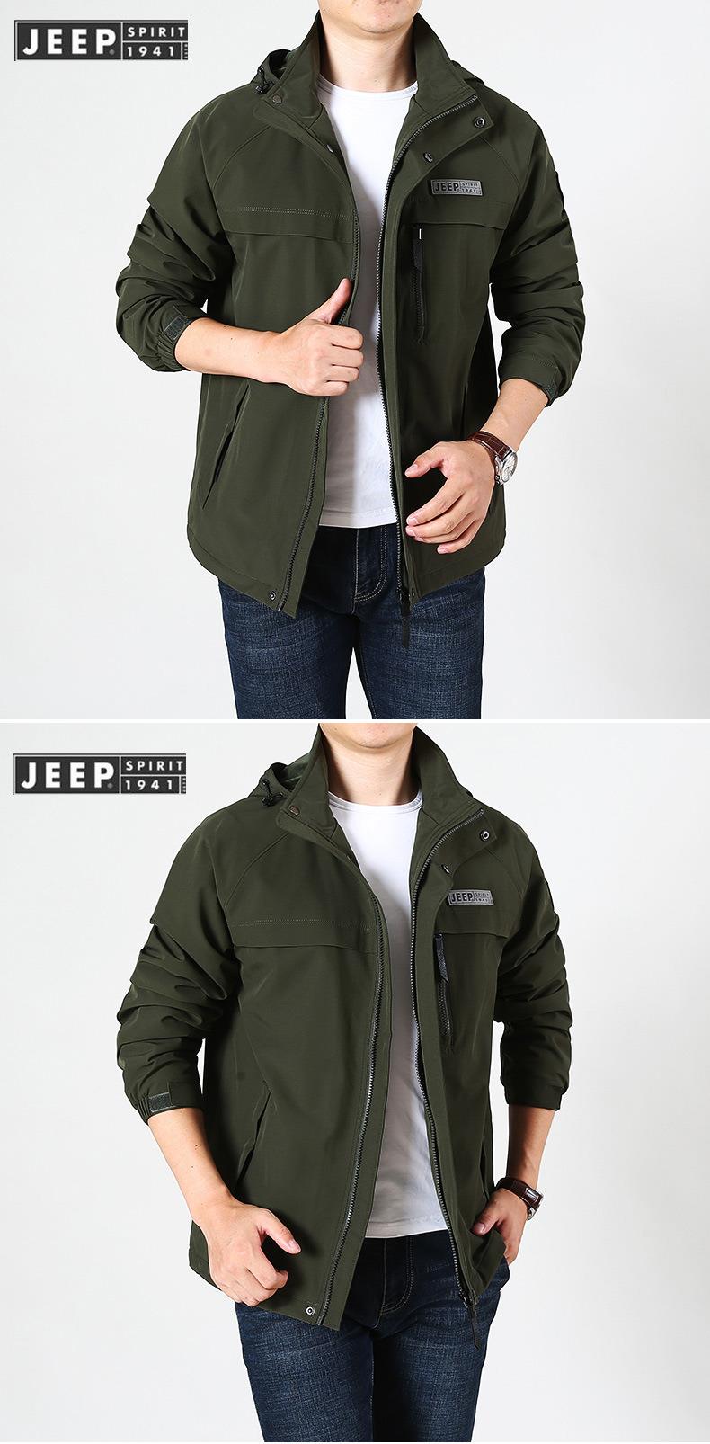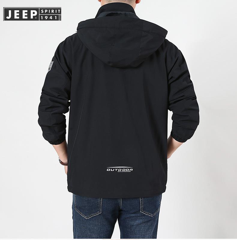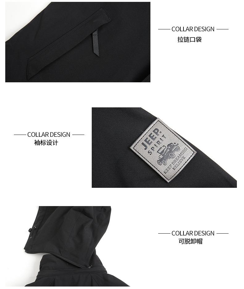 JEEP SPIRIT冲锋衣男士外套春秋休闲工装中长大码夹克男HL66011B