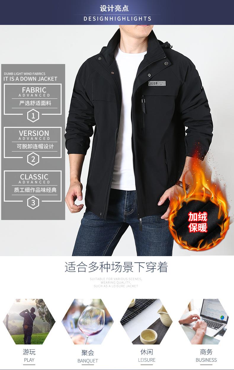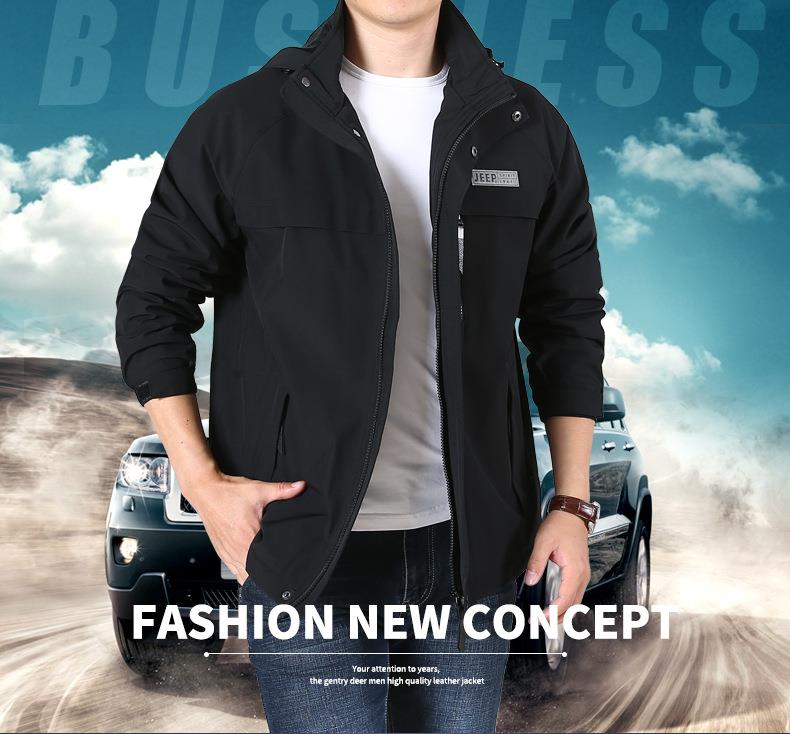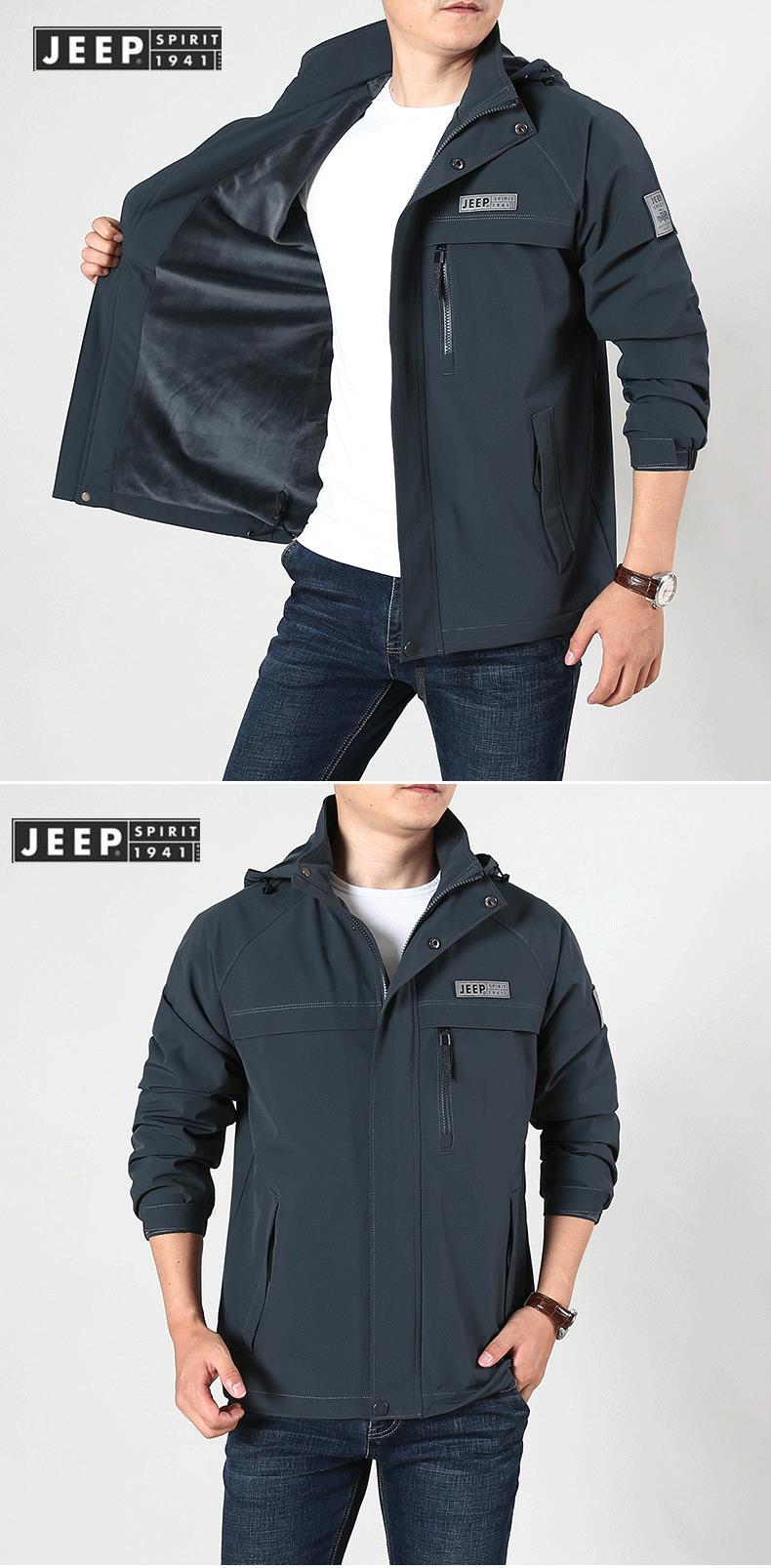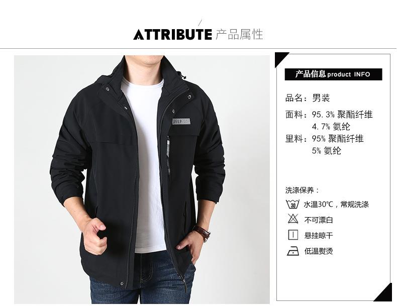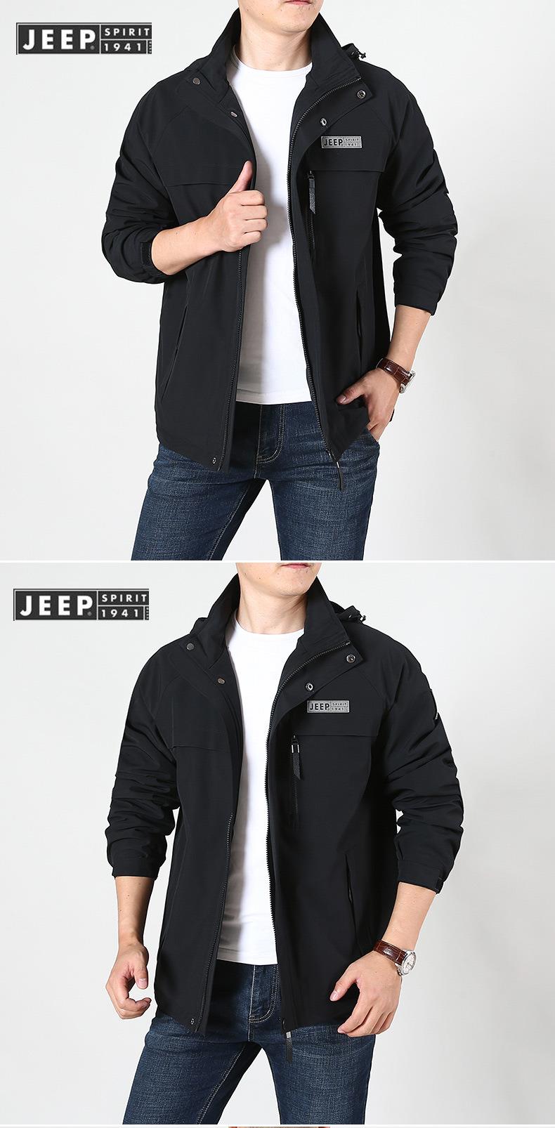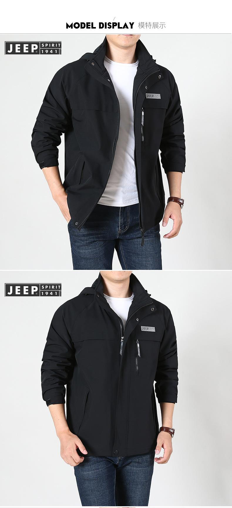 JEEP SPIRIT冲锋衣男士外套春秋休闲工装中长大码夹克男HL66011B