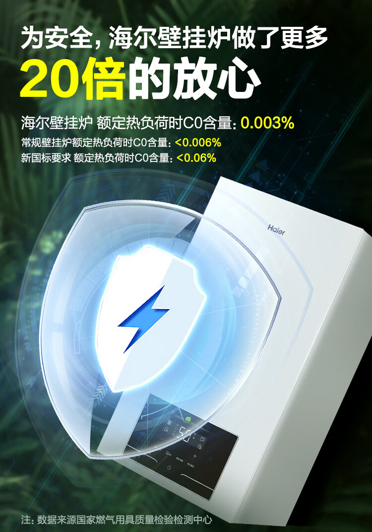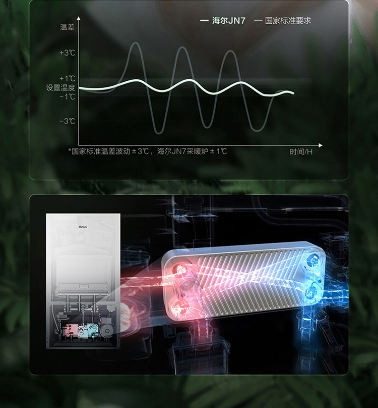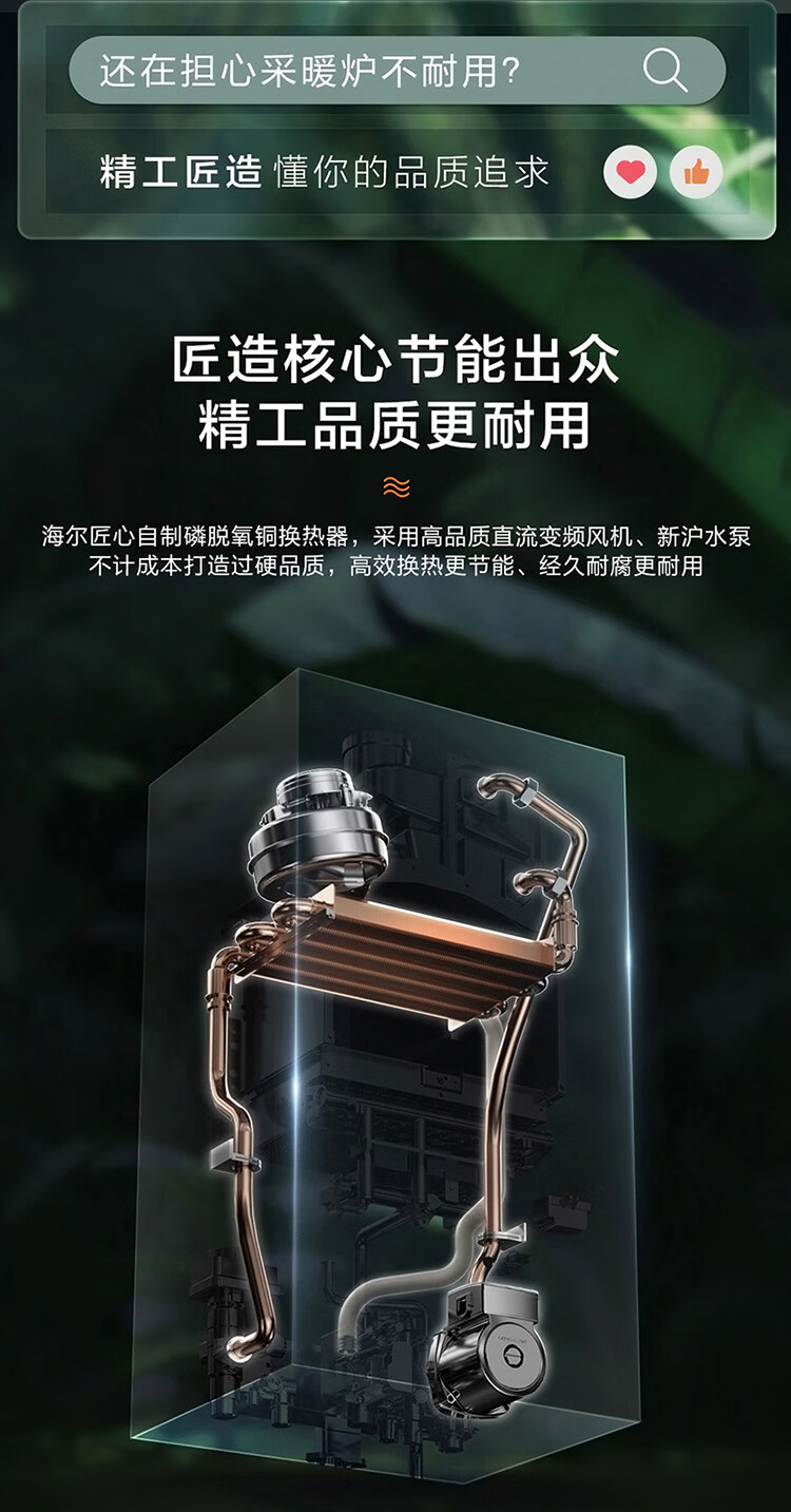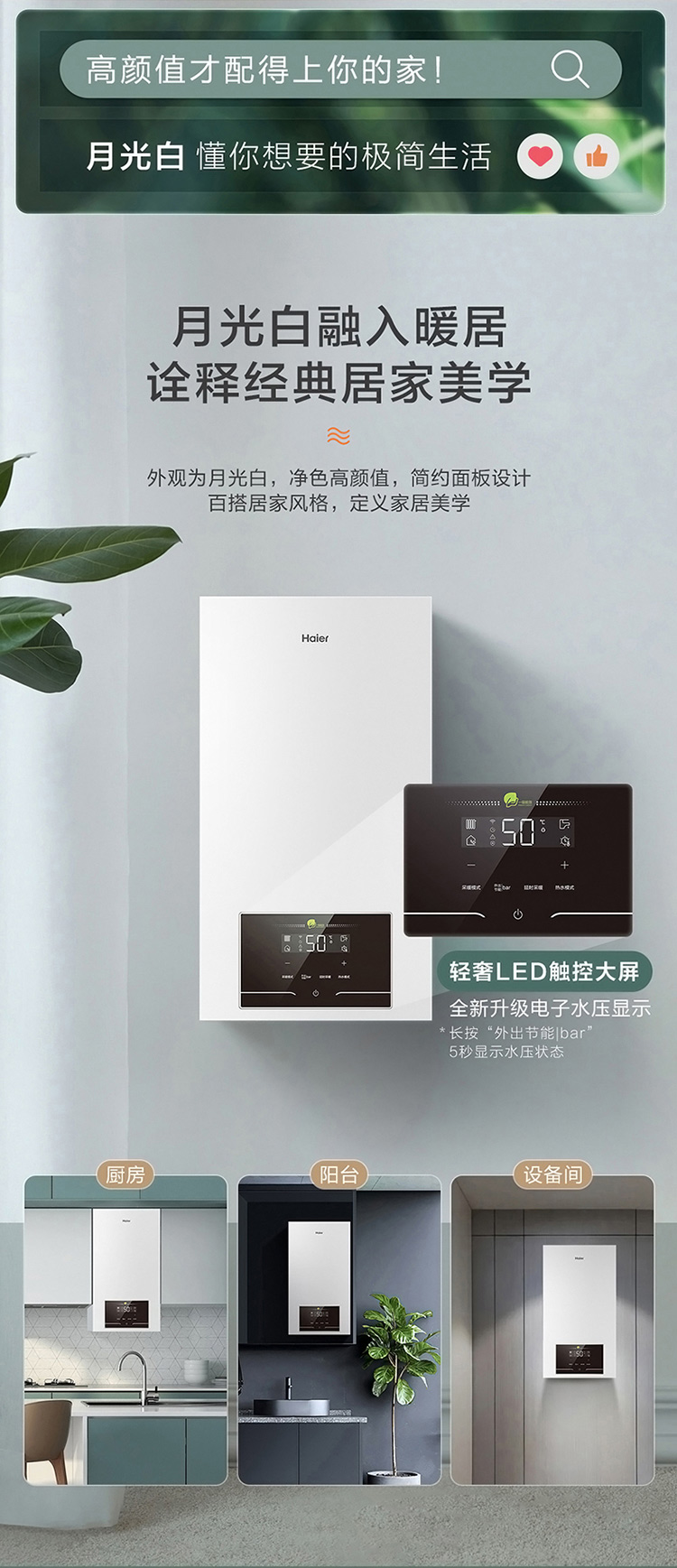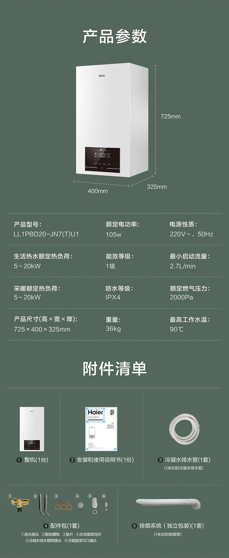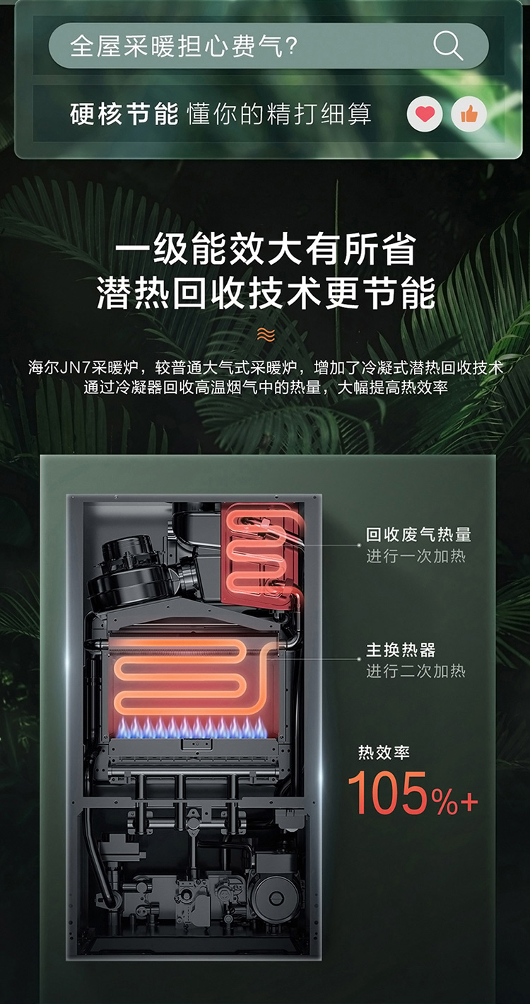 海尔变频一级能效冷凝燃气壁挂炉天然气采暖炉热水器板换式地暖暖气片五点恒温LL1PBD26-JN7(T)U1