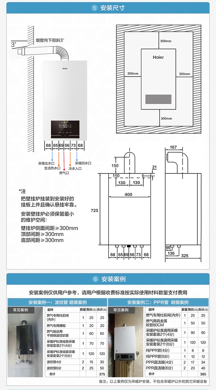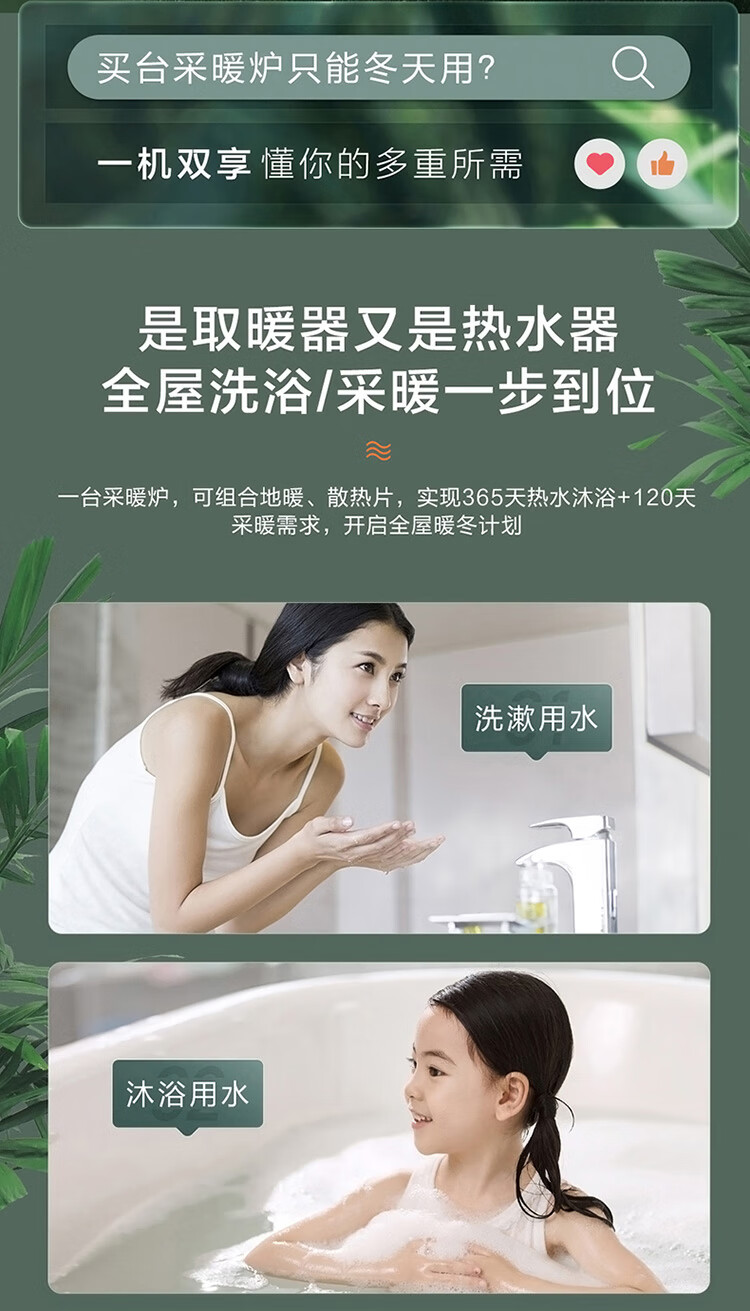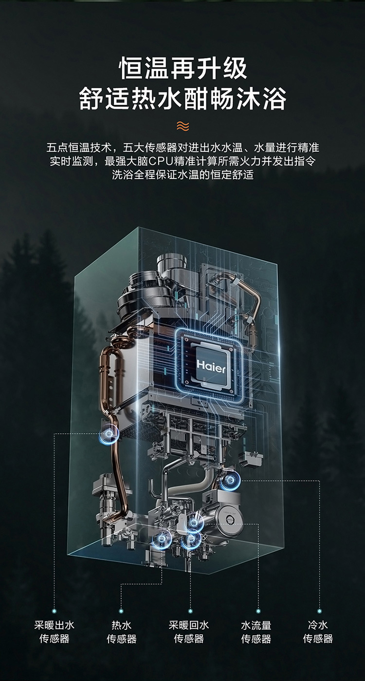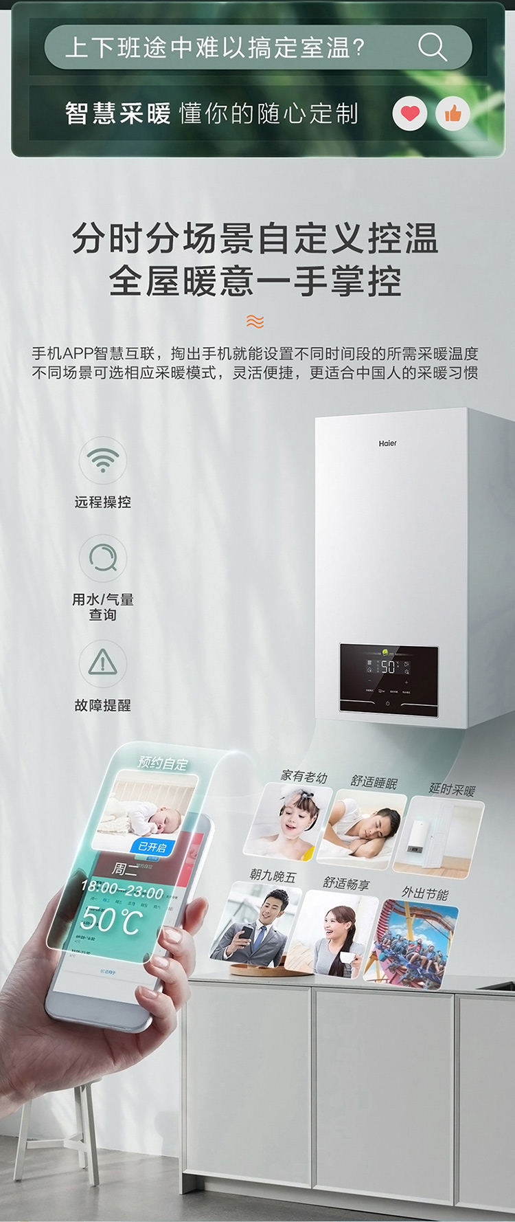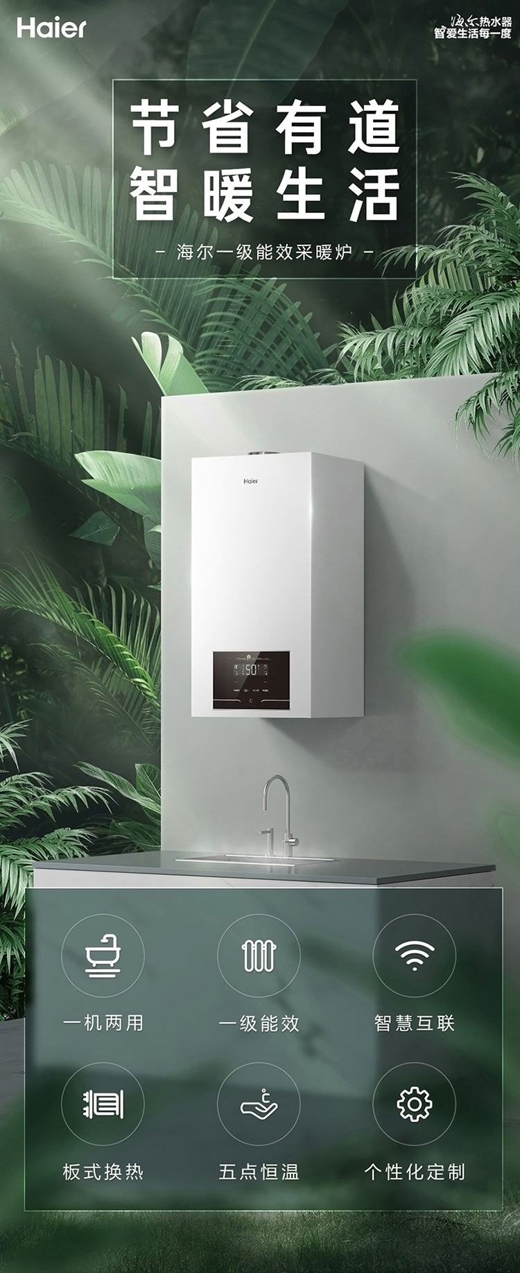 海尔变频一级能效冷凝燃气壁挂炉天然气采暖炉热水器板换式地暖暖气片五点恒温LL1PBD26-JN7(T)U1