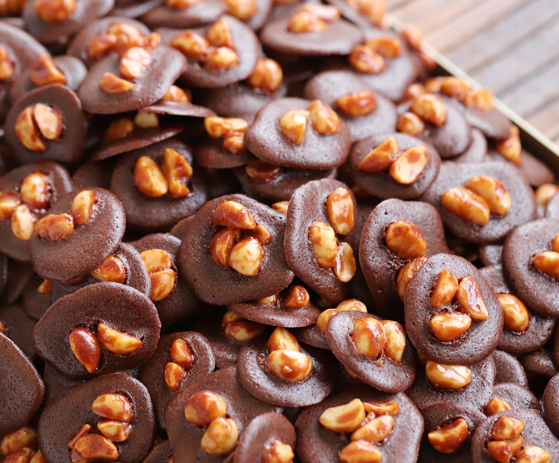 法芙娜巧克力和夏威夷果两种不同香味交融在一起,烤的时候满屋飘香,吃的时候咯嘣脆……