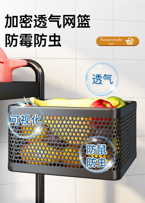 大容量收纳的同时,篮网还非常透气,可视,保鲜,还防蚊防鼠,尽最大可能保持蔬果新鲜度