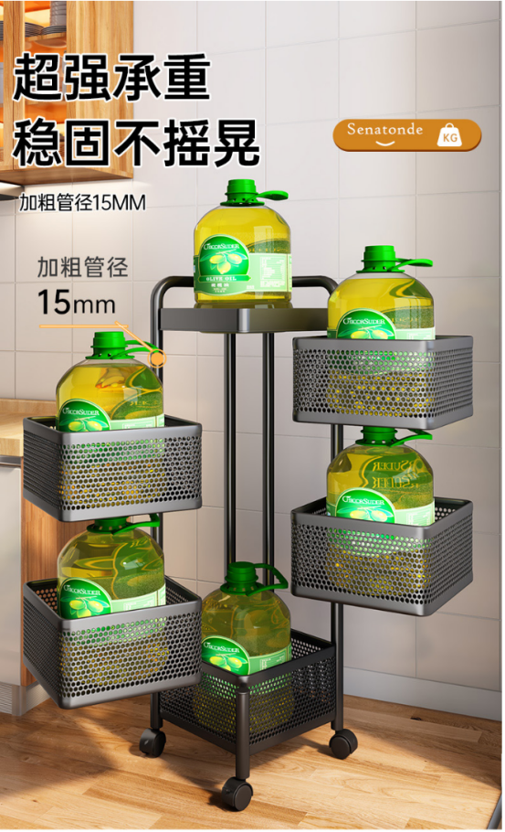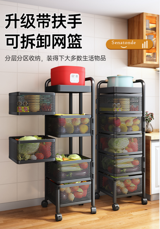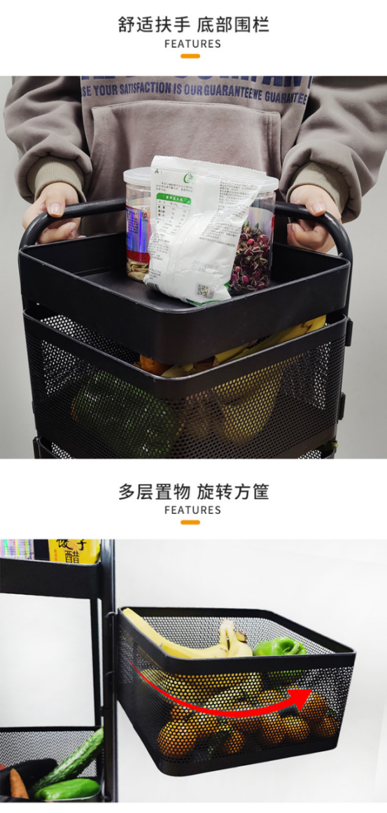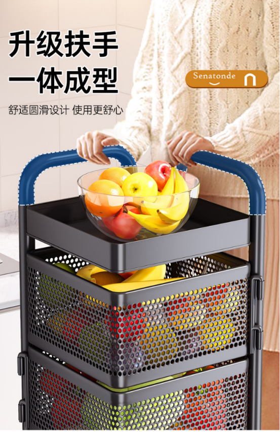 【产品名称】新升级2023款带扶手可拆卸网篮旋转置物架