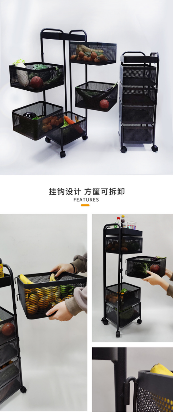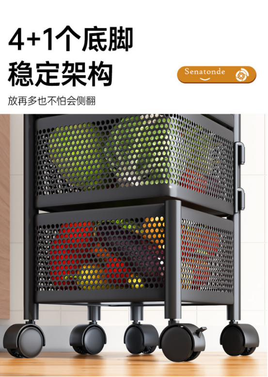 带有刹车滑轮,牢固定住,方便拿取物品
