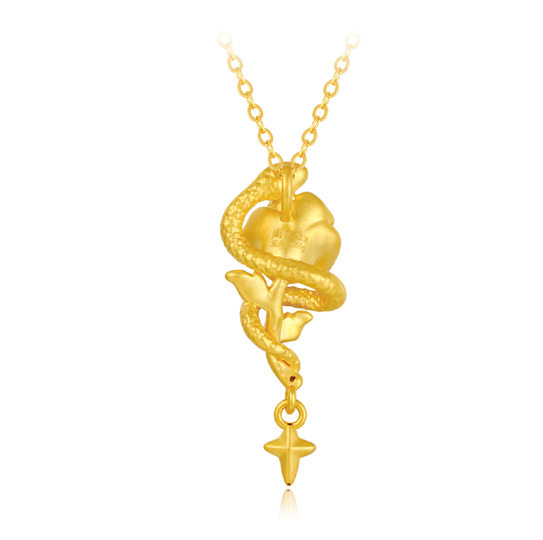 周大生黄金吊坠女足金蛇与玫瑰生肖蛇硬金荧光珐琅节日礼物送女友
