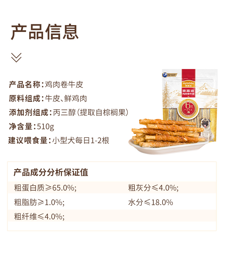 麦富迪狗狗零食磨牙棒耐咬胶小型幼犬成宠物零食泰迪柯基比熊510g