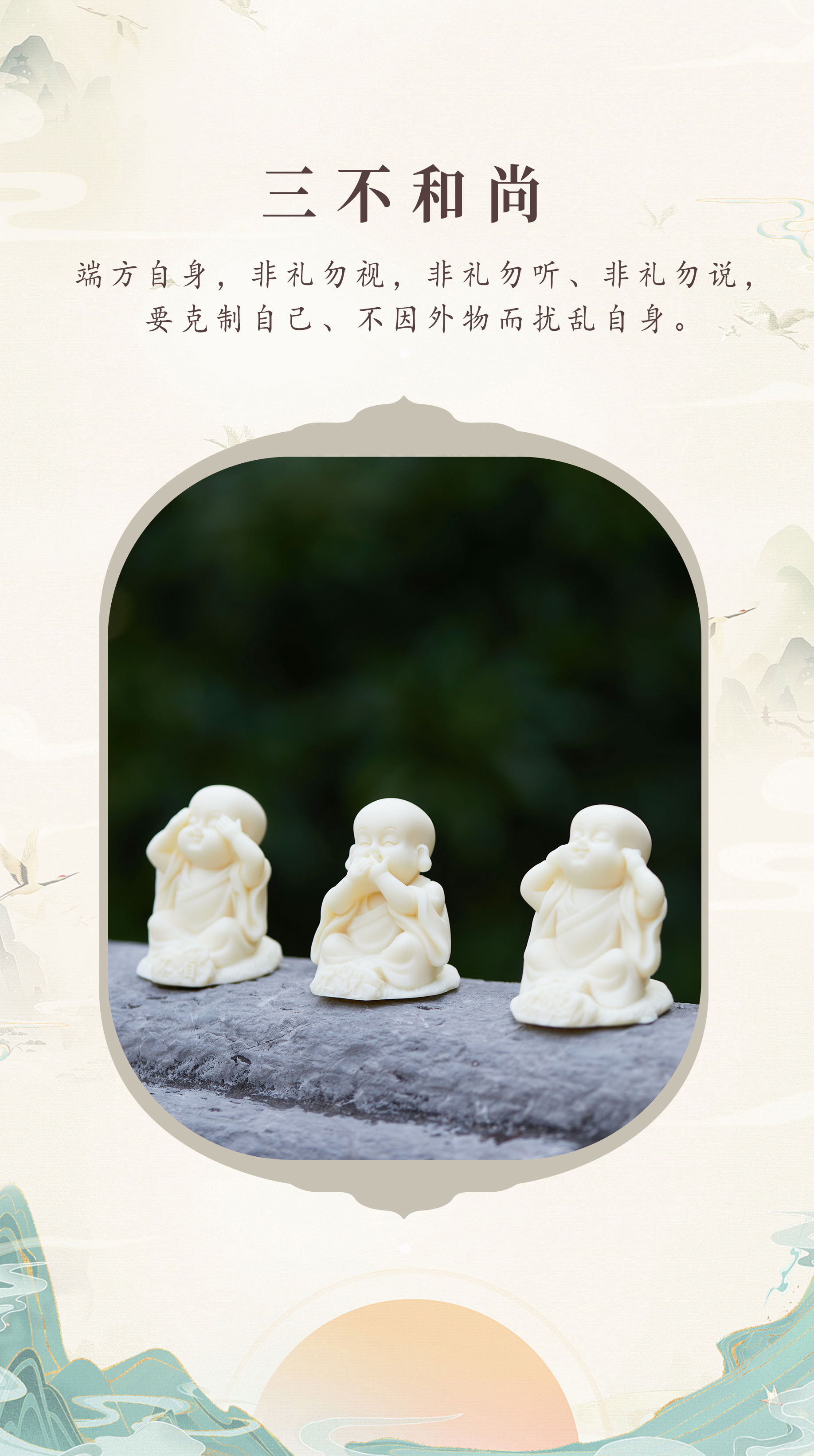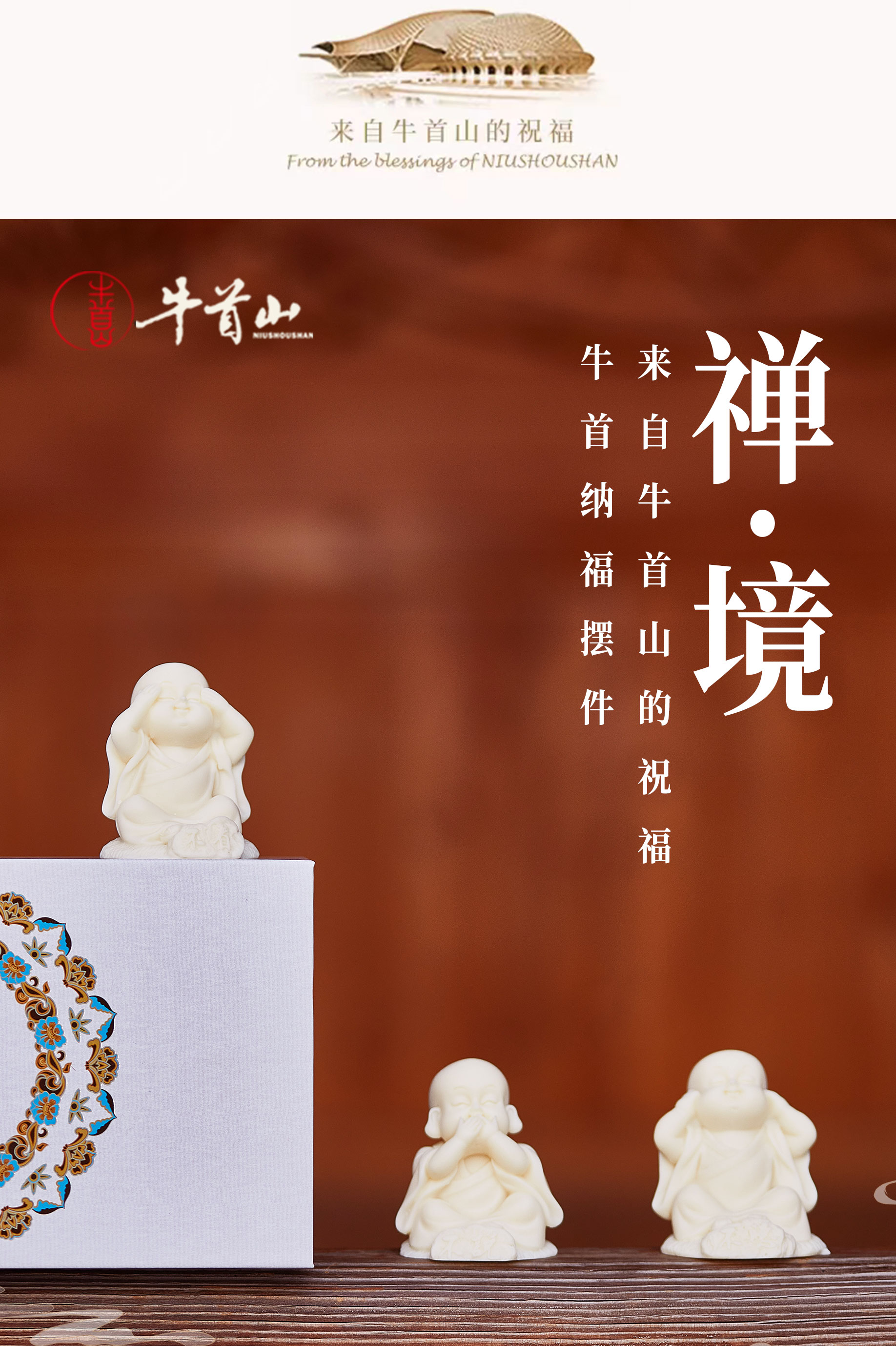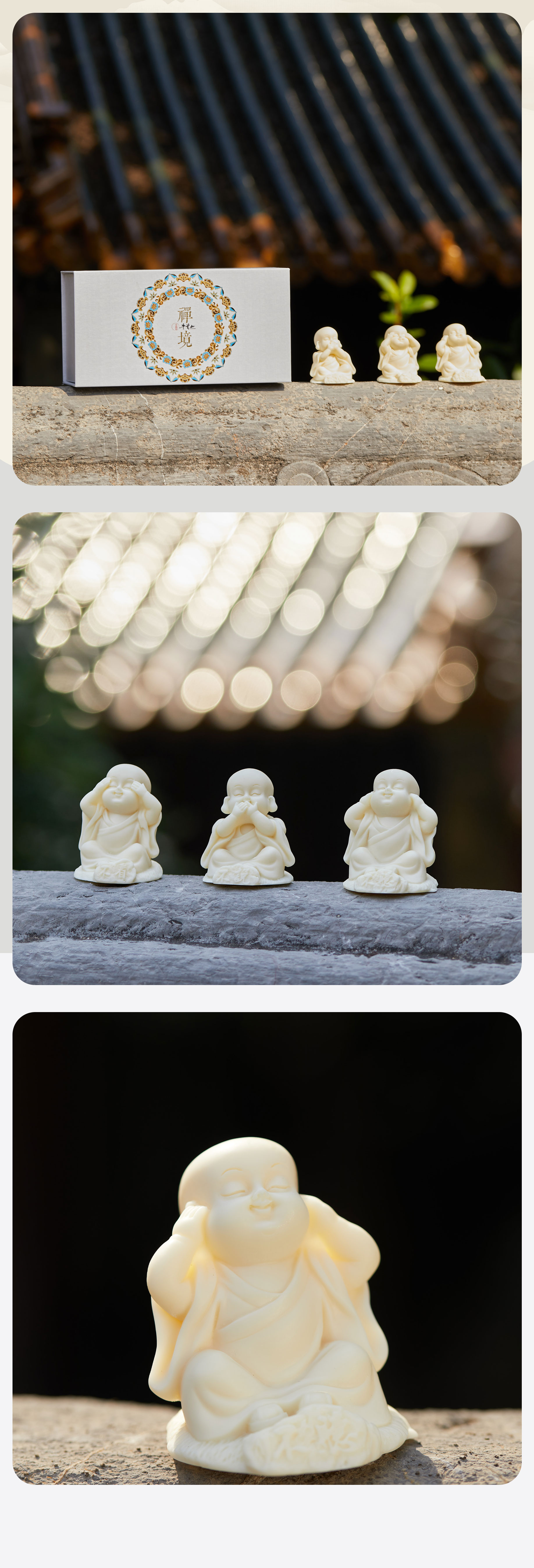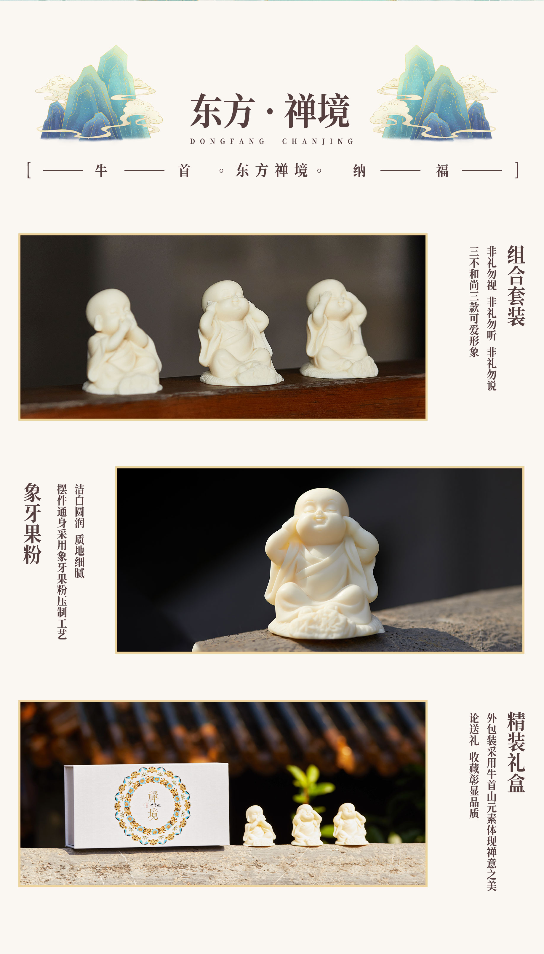 牛首山文创三不和尚象牙摆件装饰品雕刻禅意礼物办公室中式工艺品
