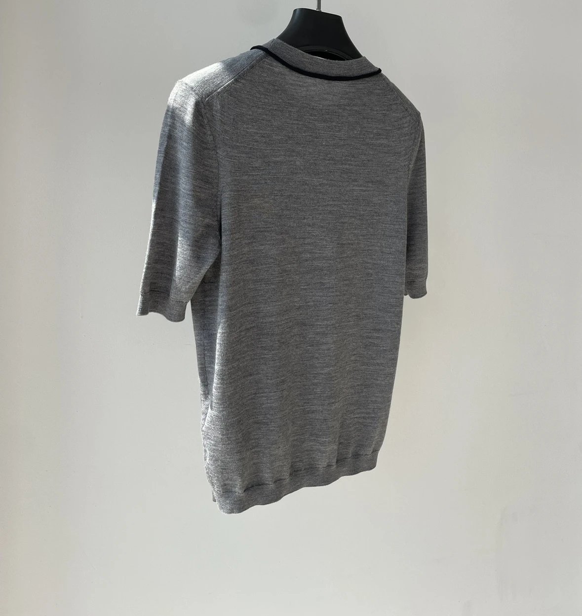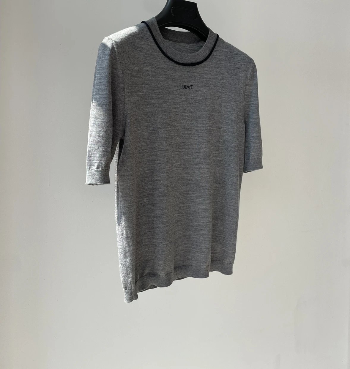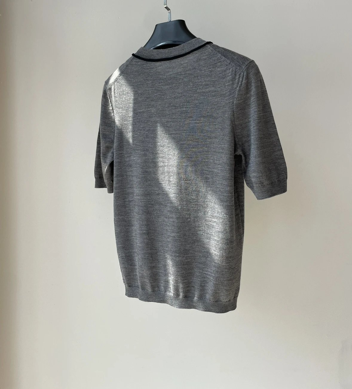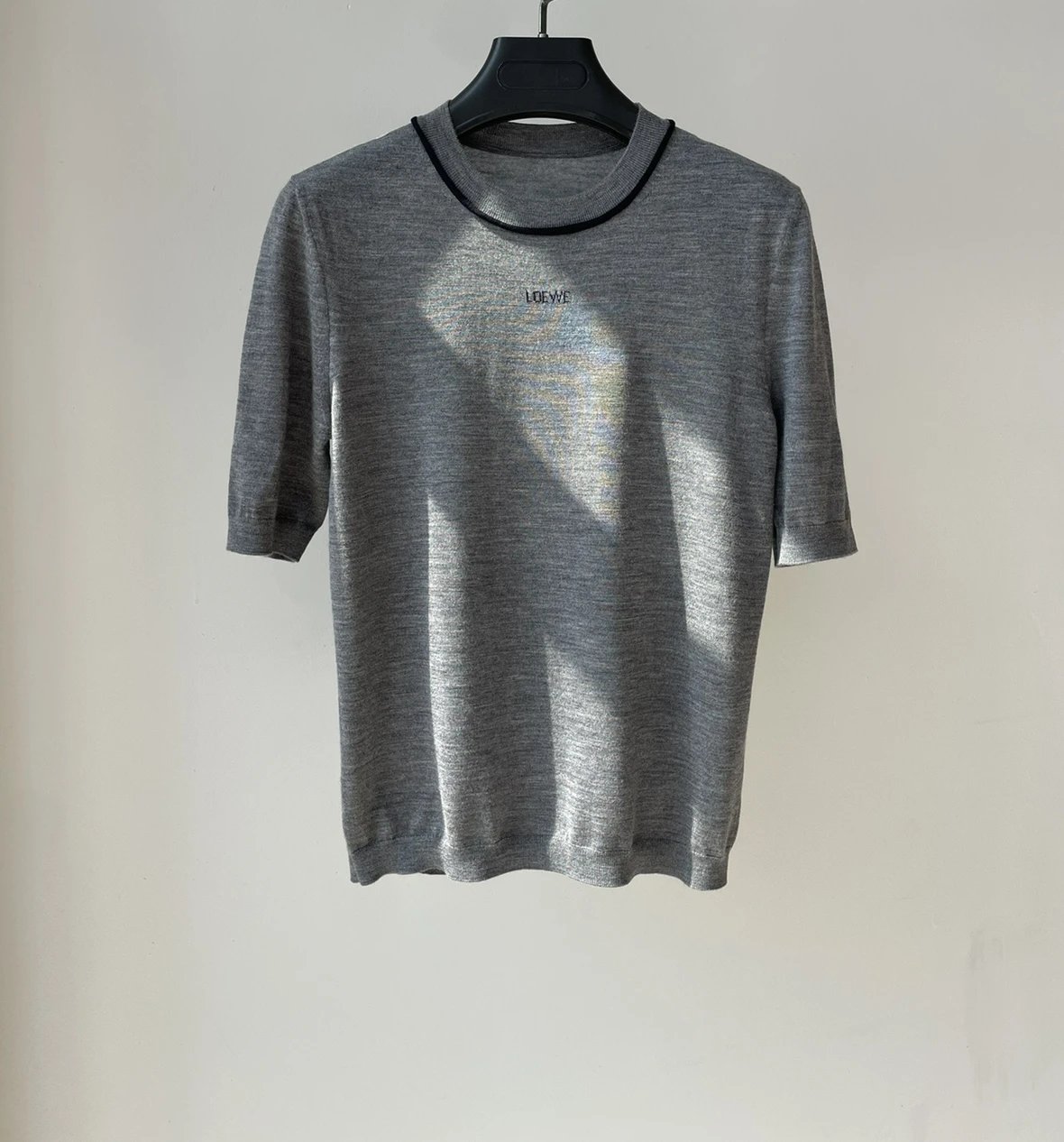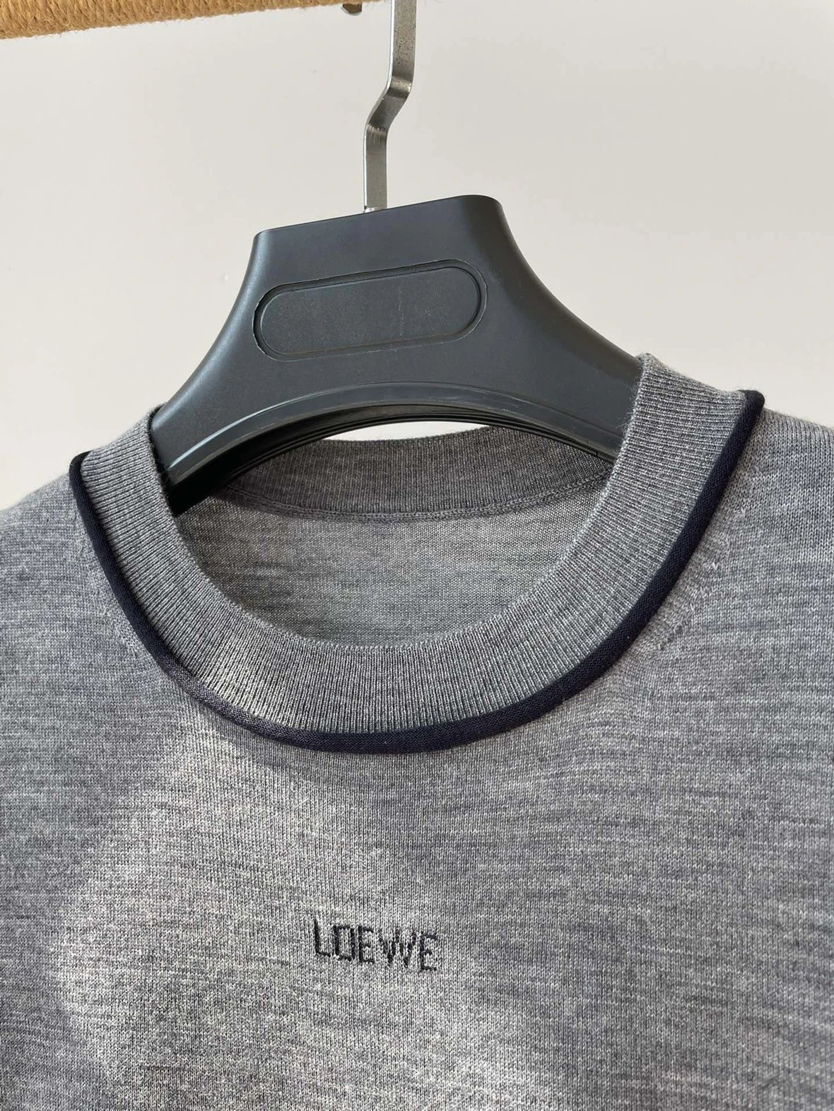重磅渠道 lew精纺羊毛中袖衫 撞色滚边 意大利进口piacenza羊毛 薄款羊毛徽标绣花圆领衫