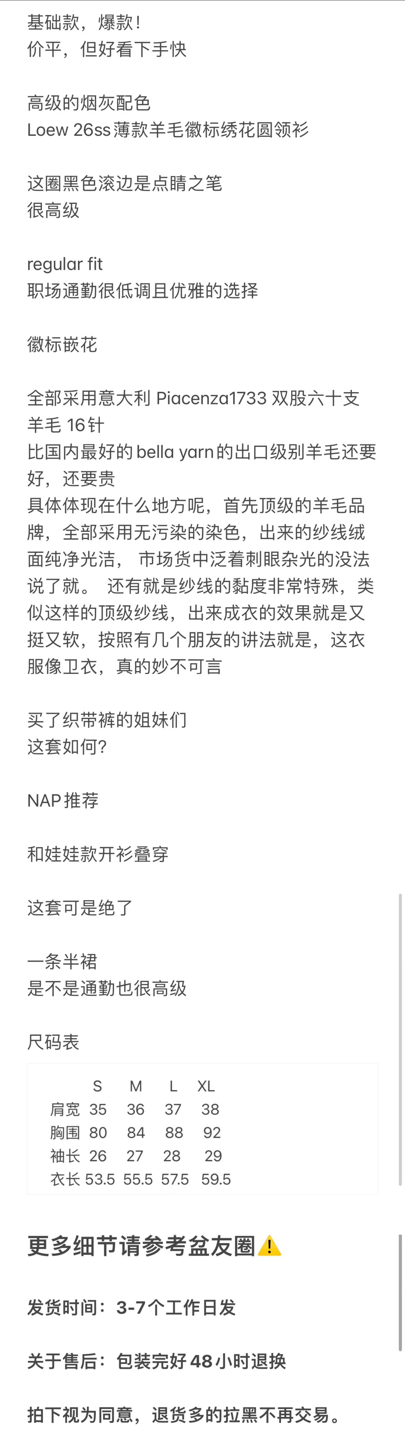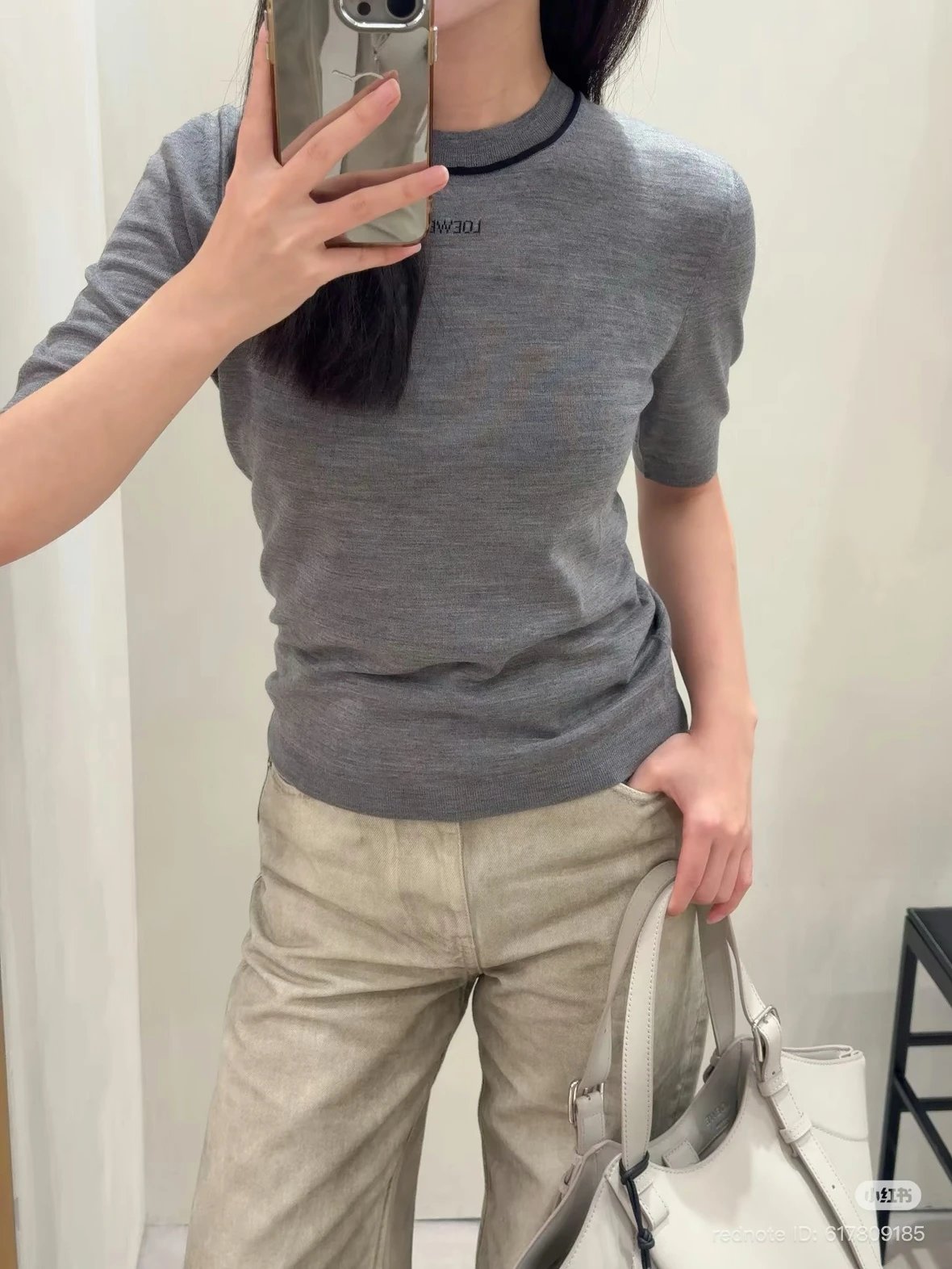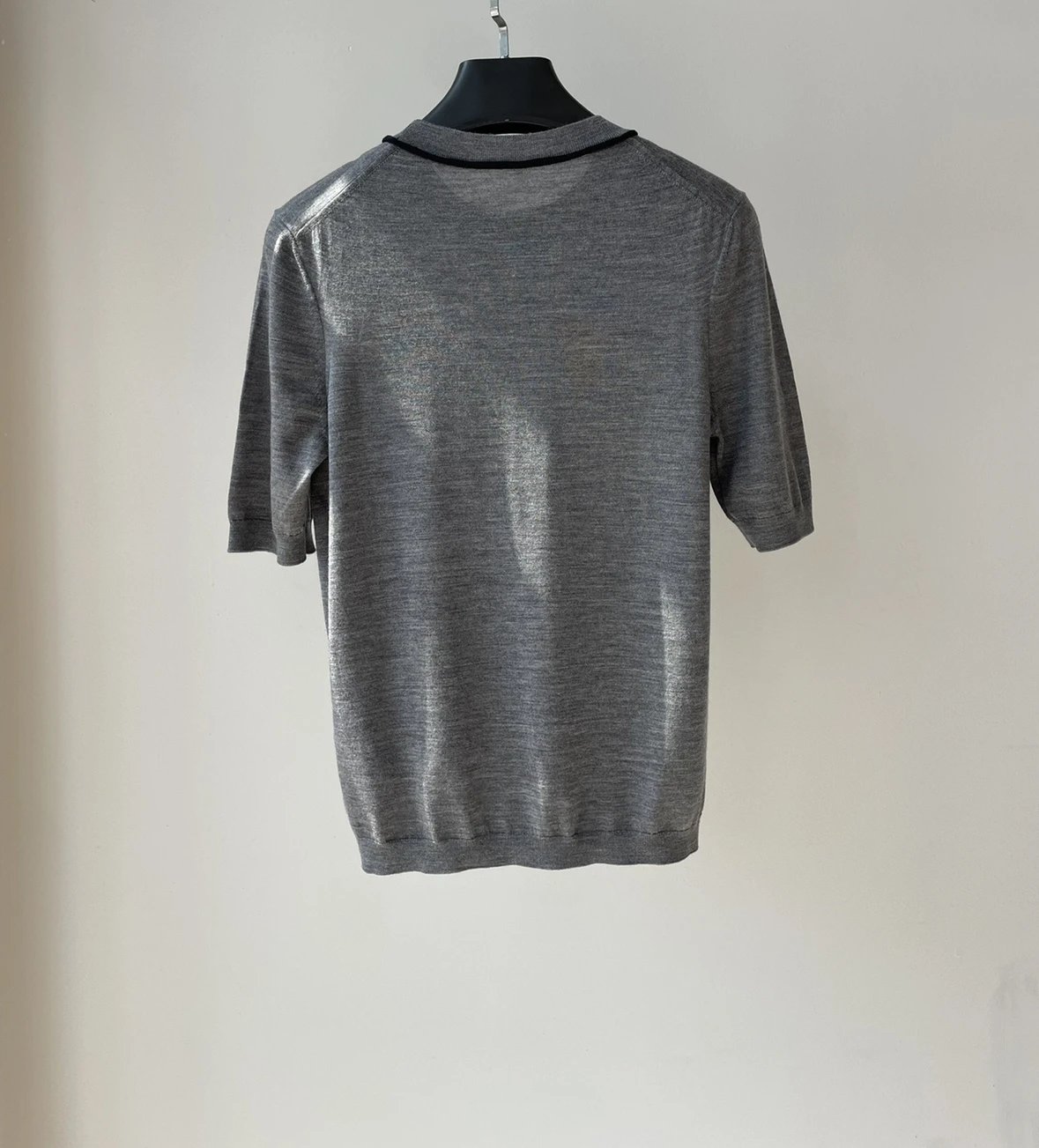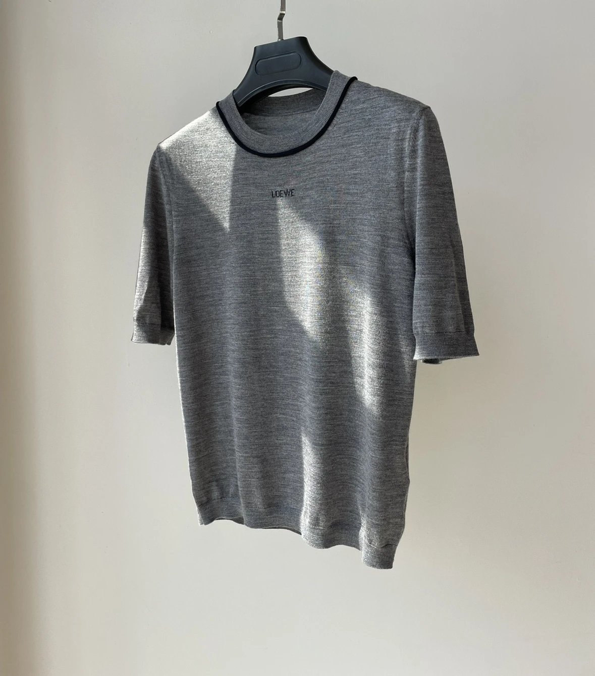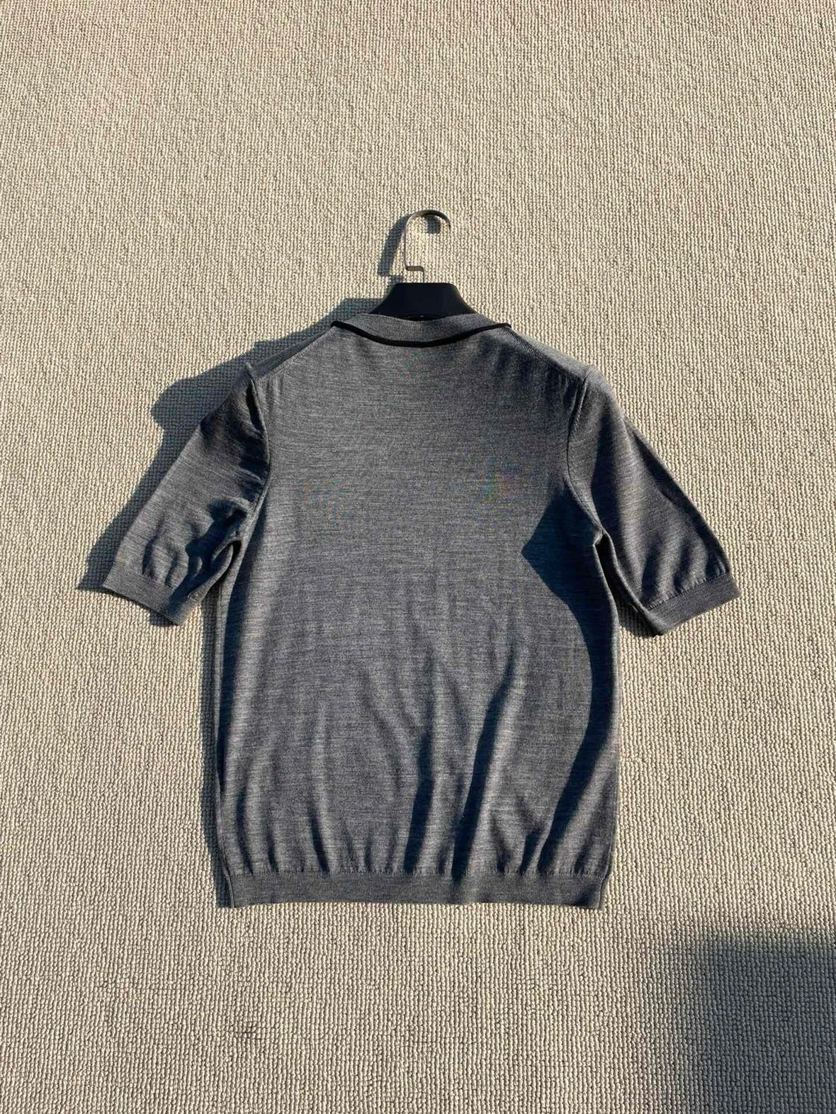 重磅渠道 lew精纺羊毛中袖衫 撞色滚边 意大利进口piacenza羊毛 薄款羊毛徽标绣花圆领衫