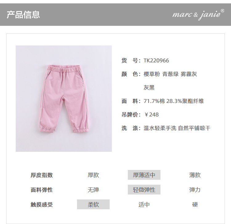 【打折】【科技凉感面料】马克珍妮 男女童撞色运动裤220966