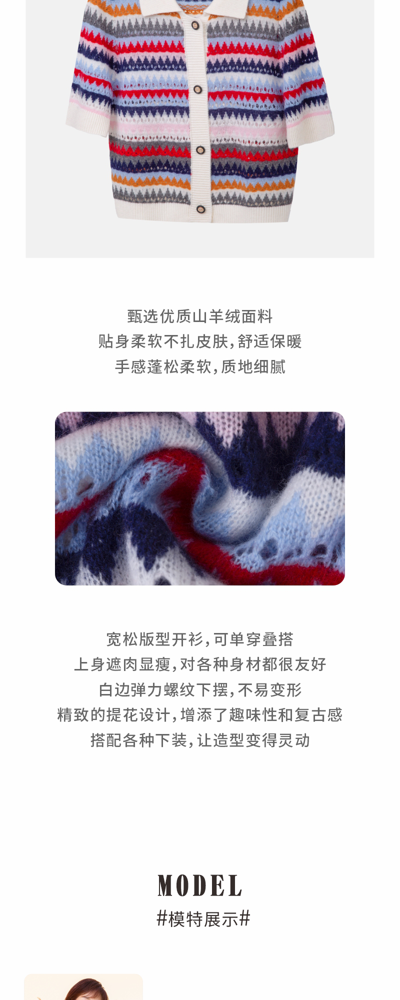 山羊绒提花开衫