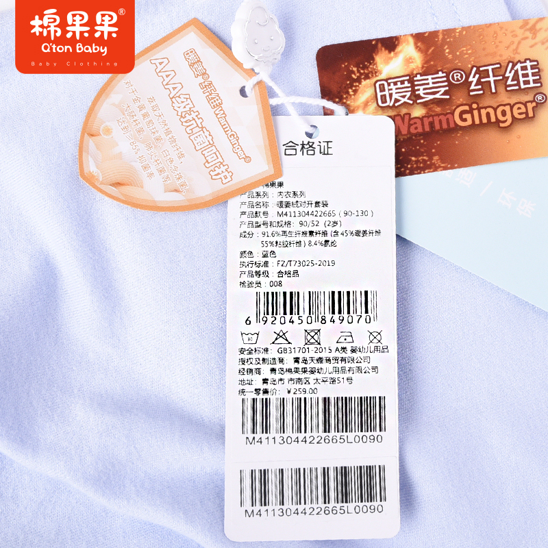 商场同款棉果果冬季新科技面料男童家居服2件套舒适柔软自发热植物抗菌暖姜绒对开套装M411304422665