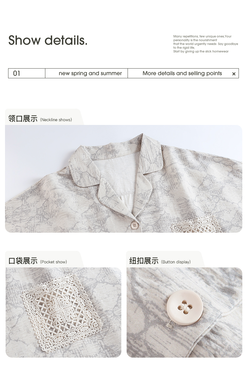 可人儿新款纯棉睡衣女士春秋季长袖时尚开衫开衫可外出家居服套装
