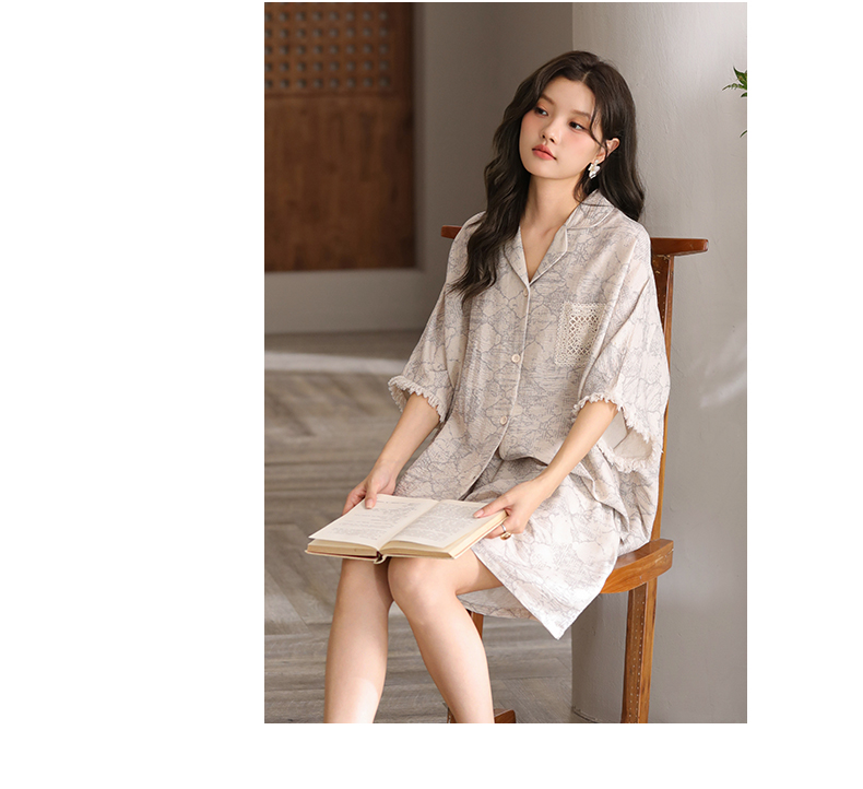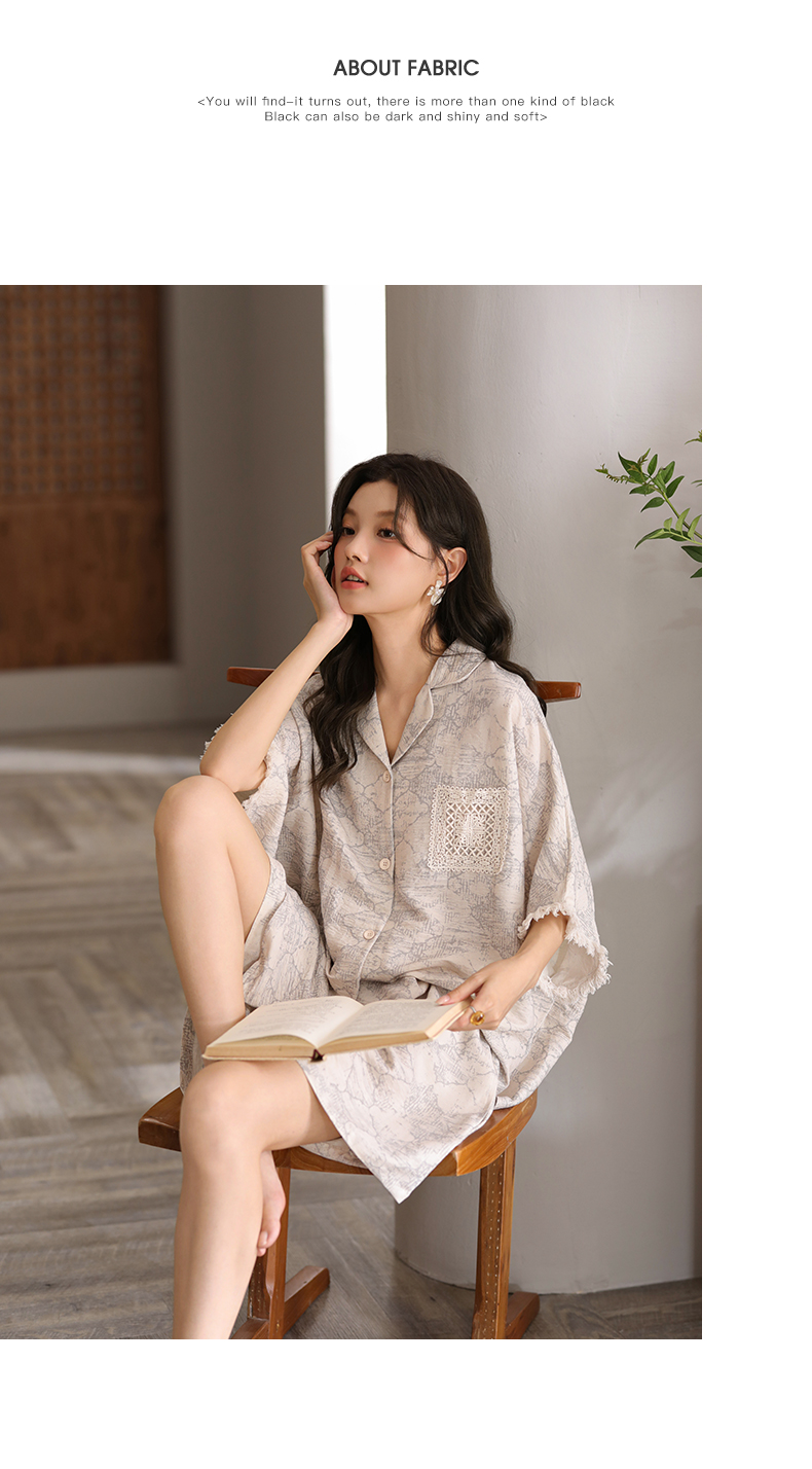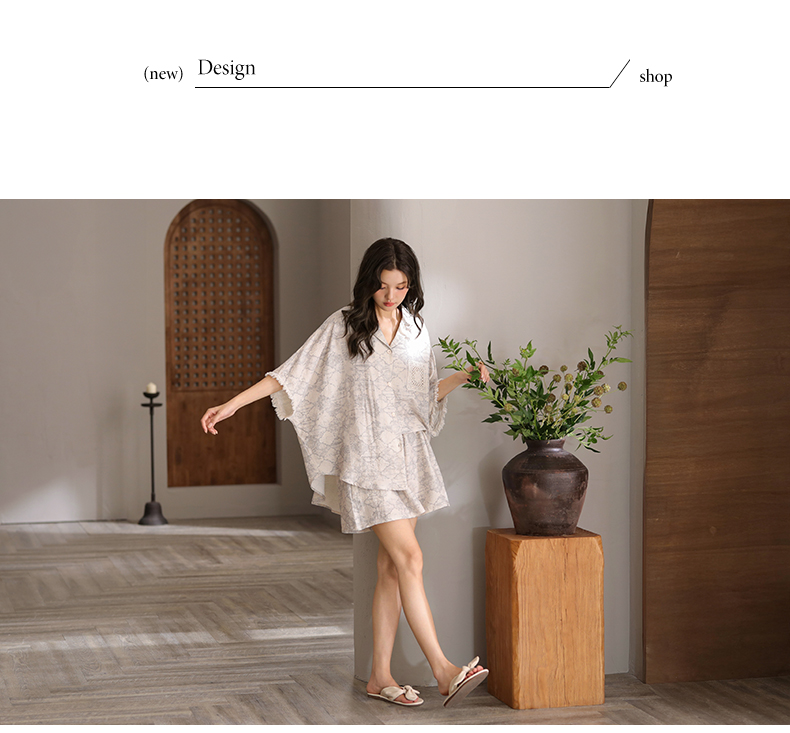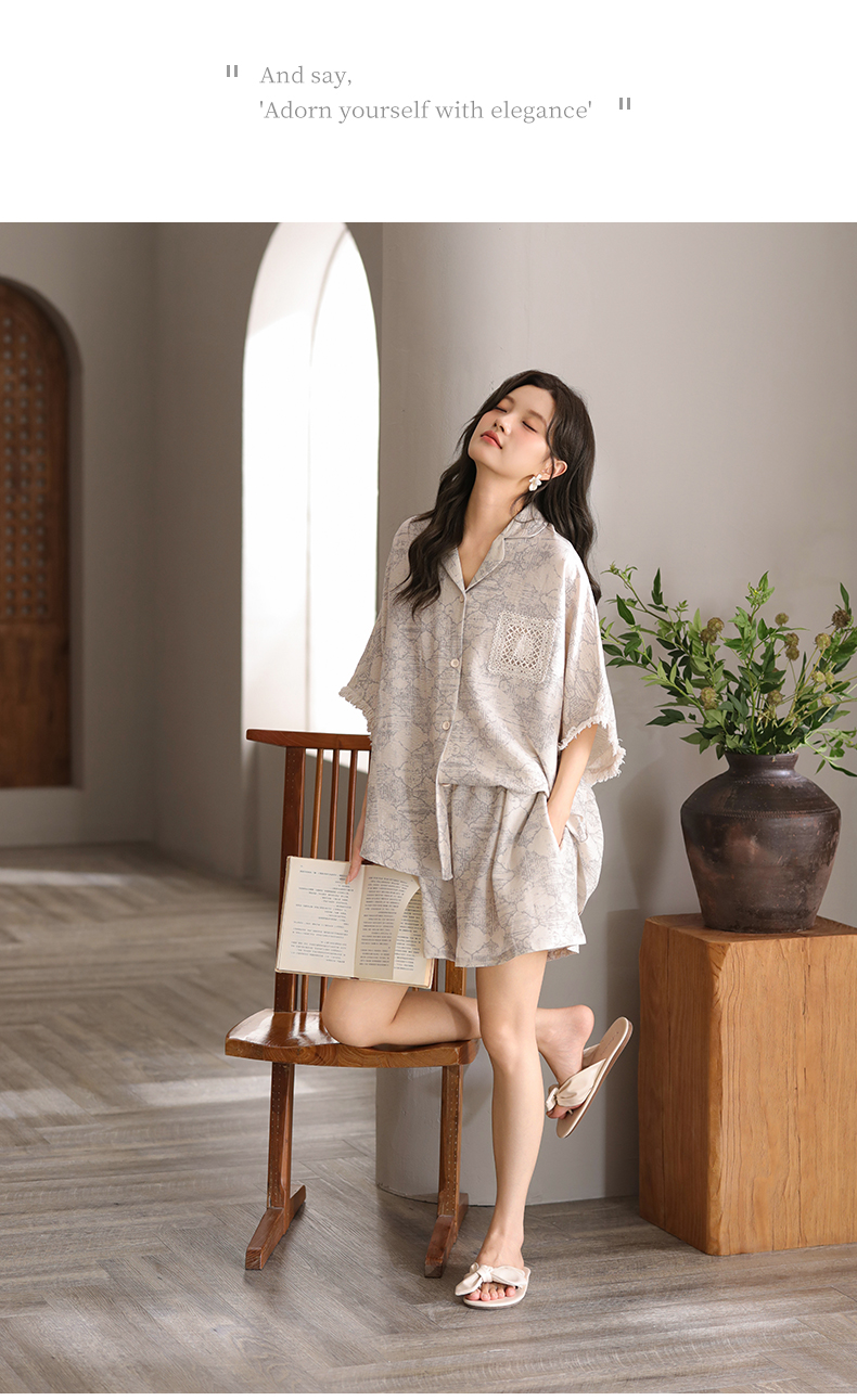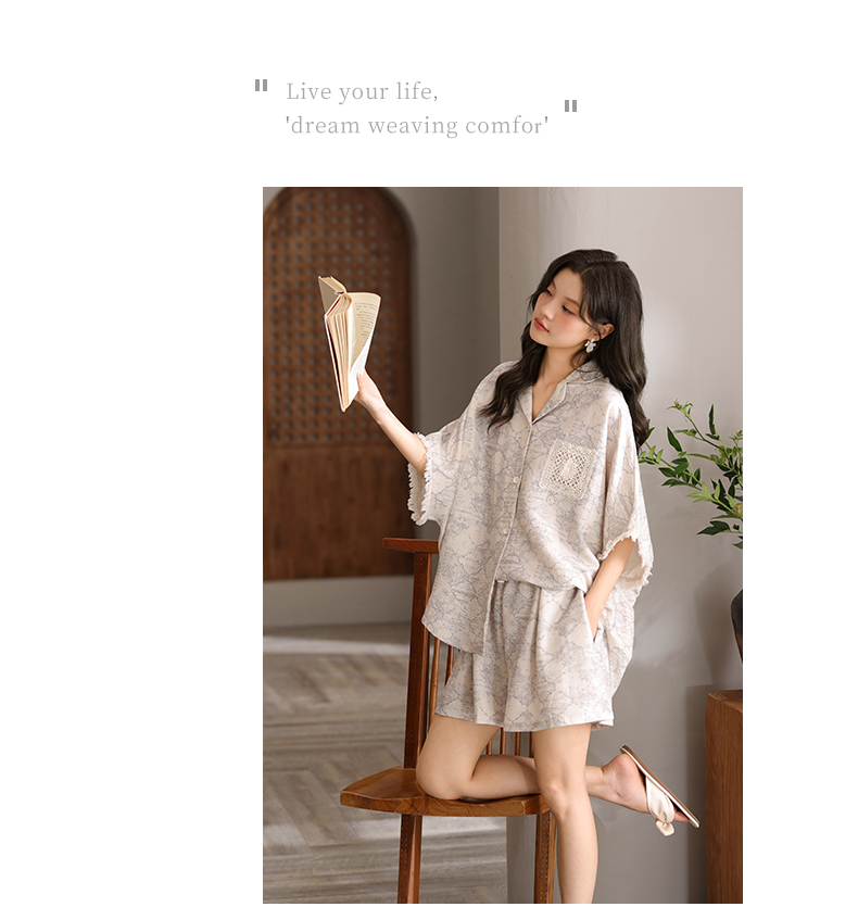可人儿小众设计泡泡绵女士带胸垫睡衣夏季短袖可外出家居服三件套