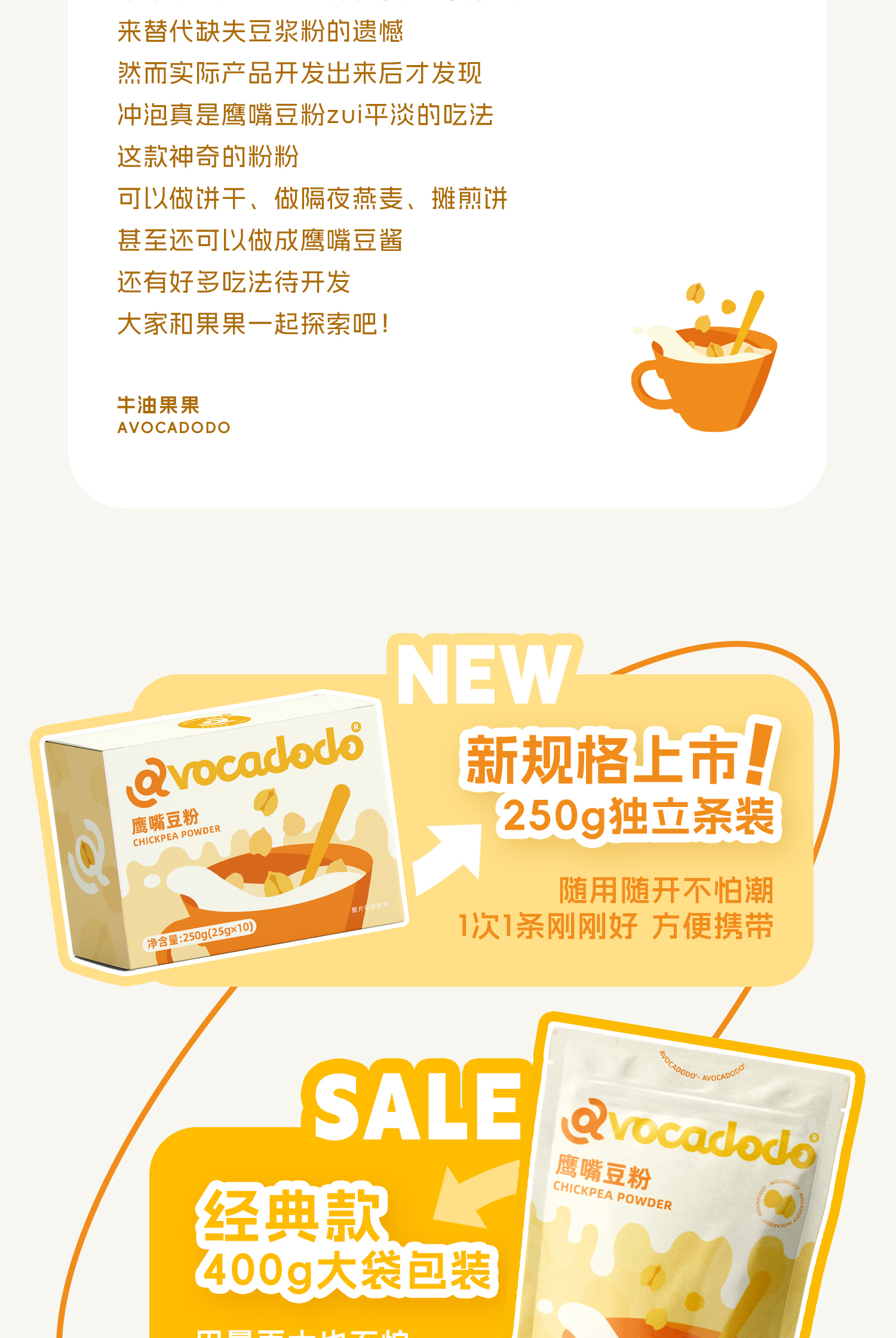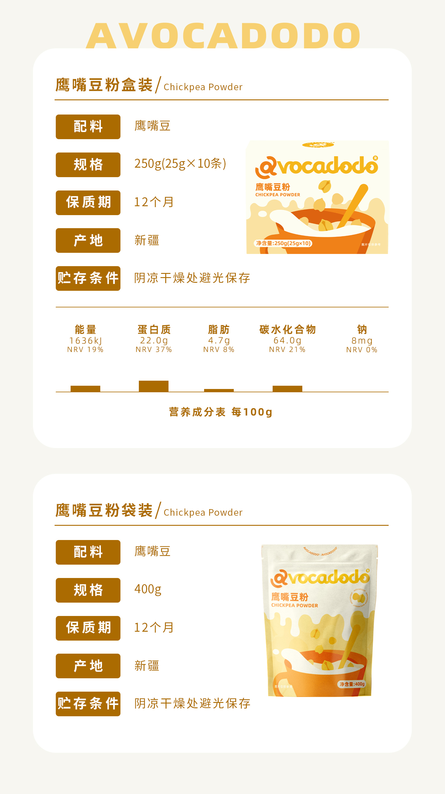 Avocadodo鹰嘴豆粉新疆农科院即食豆浆粉桥本早餐植物奶牛油果果