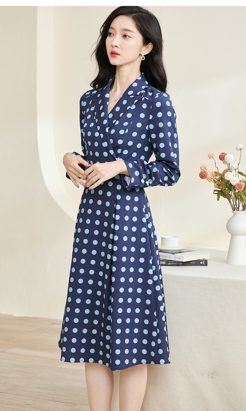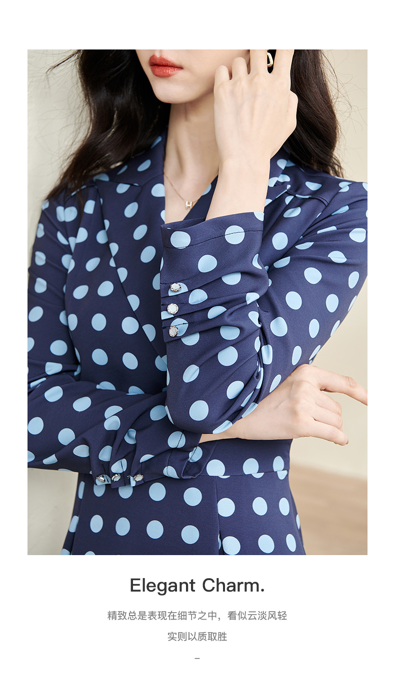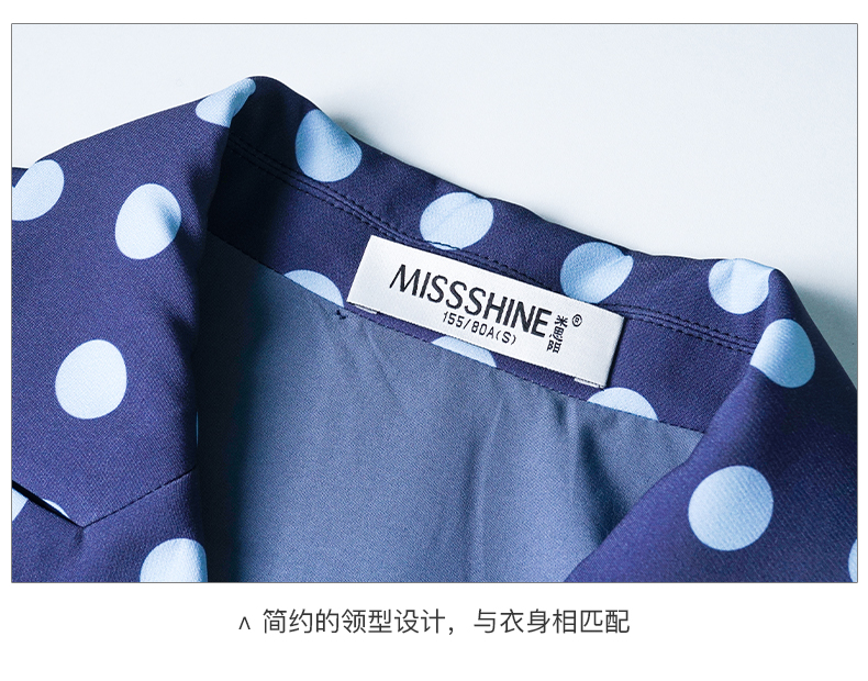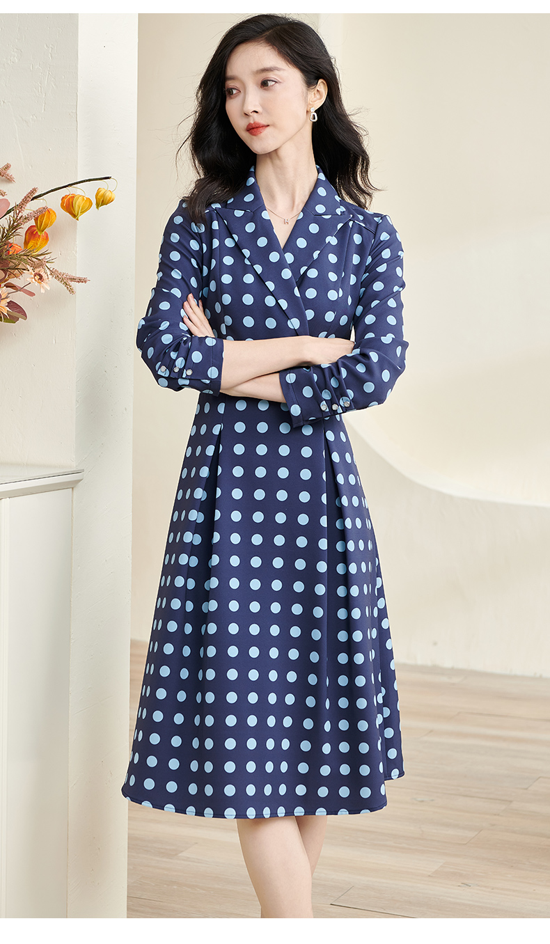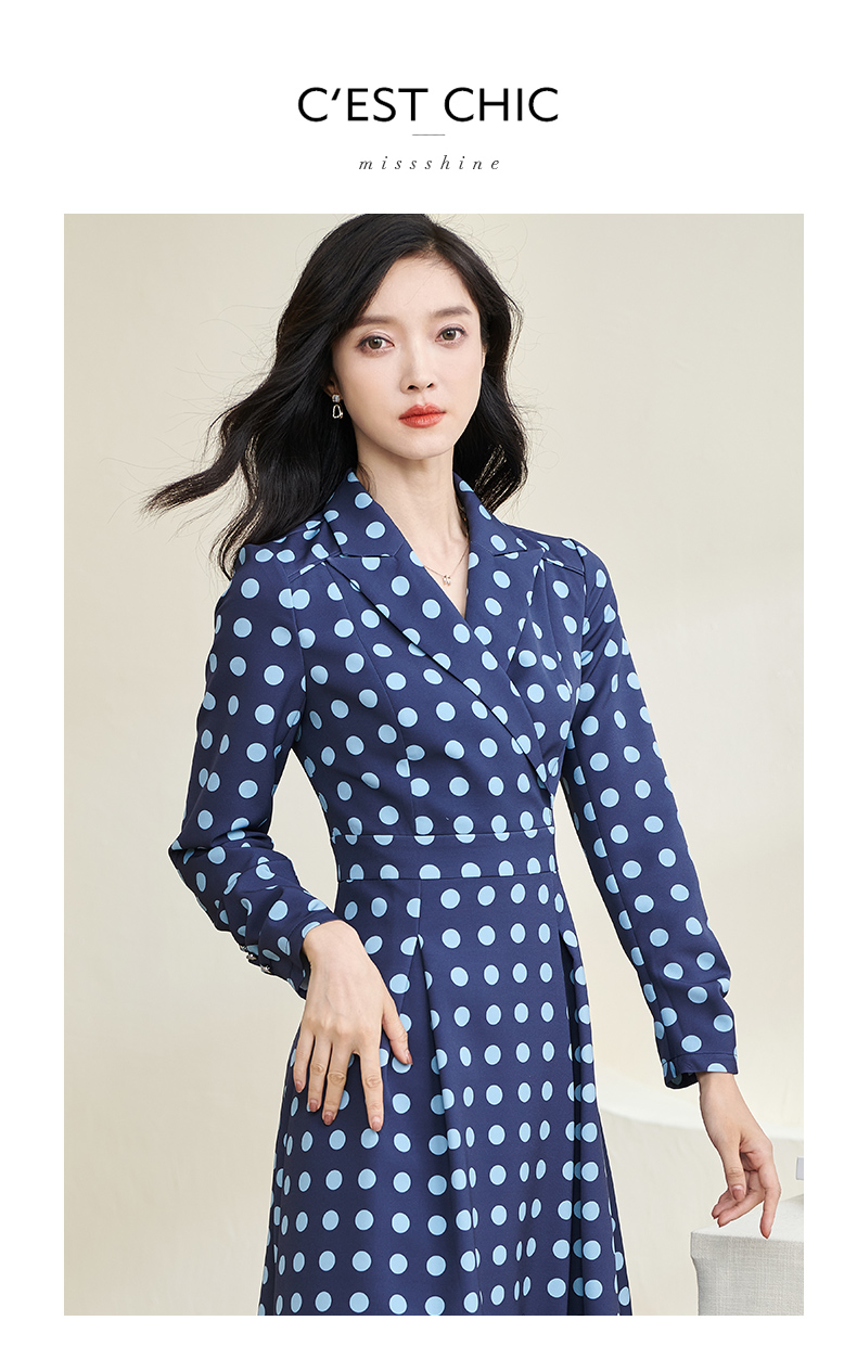 剩S/M/L 米思阳2025春季新款气质波点西装领连衣裙收腰显瘦长袖A字裙2745