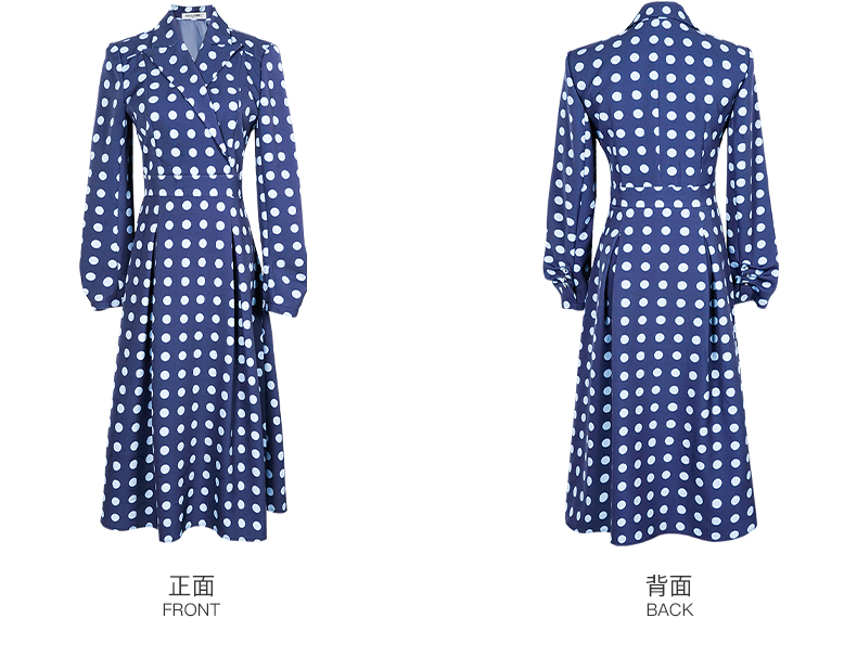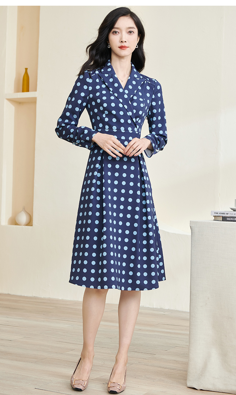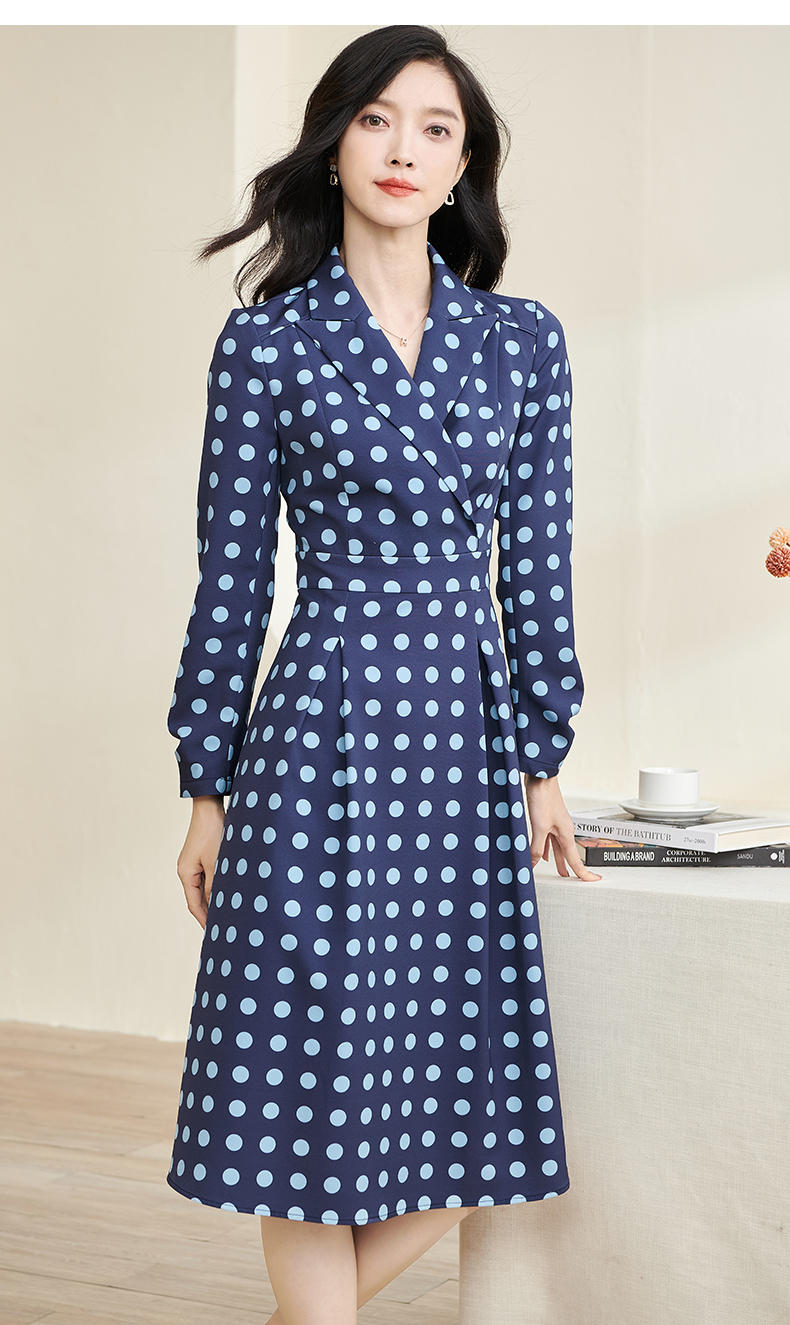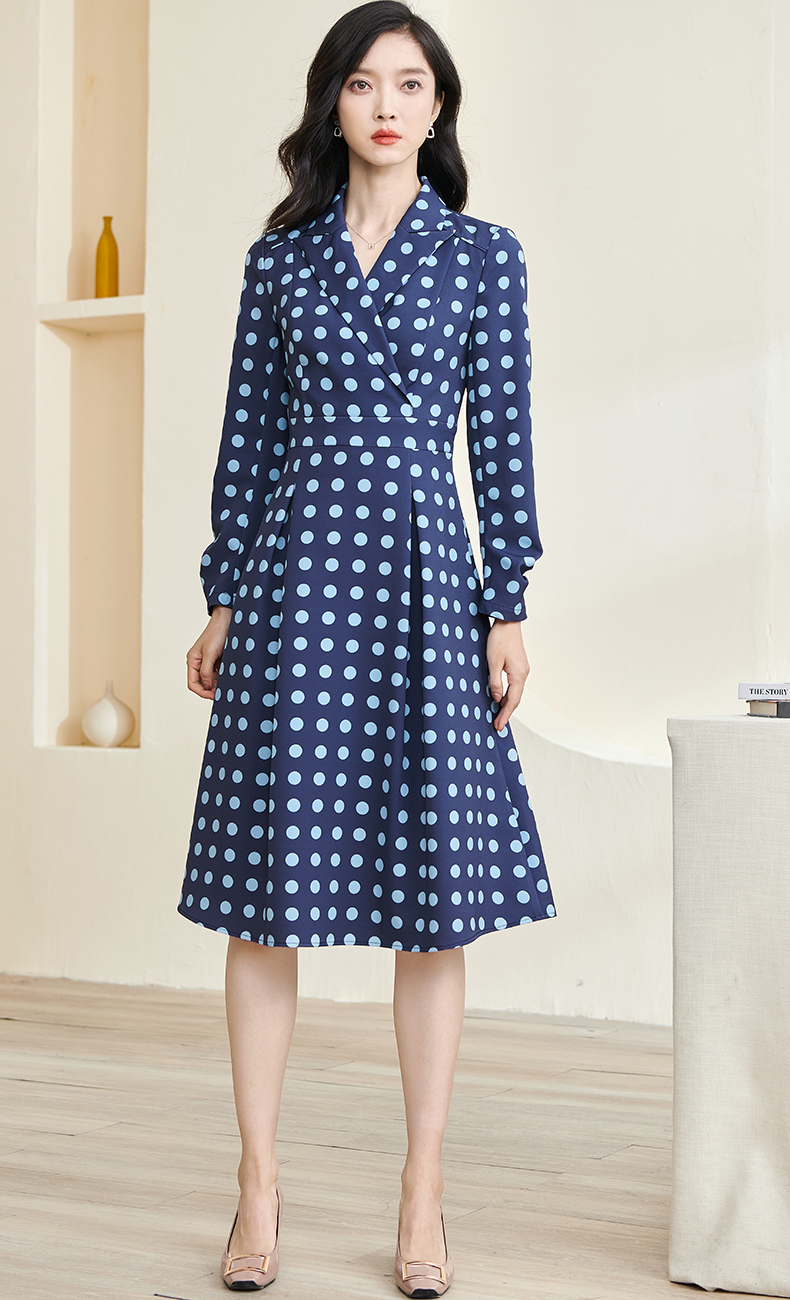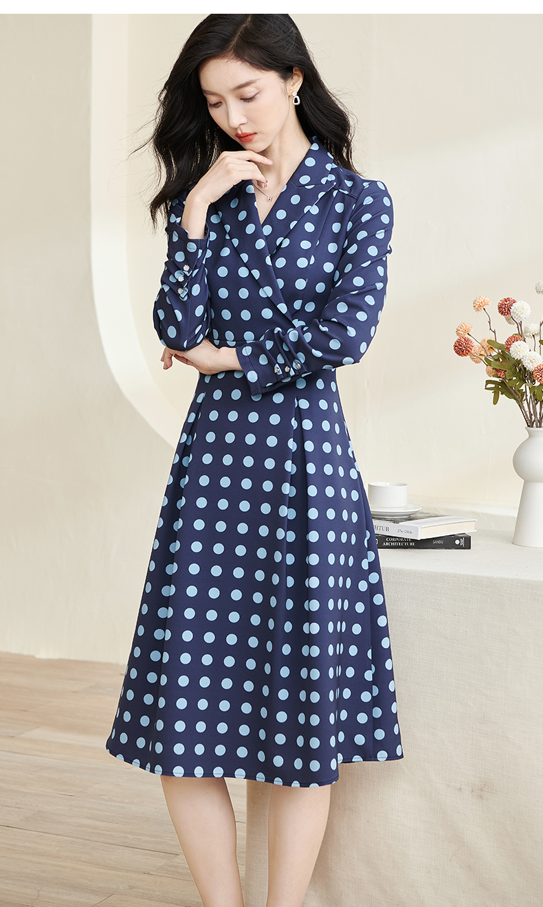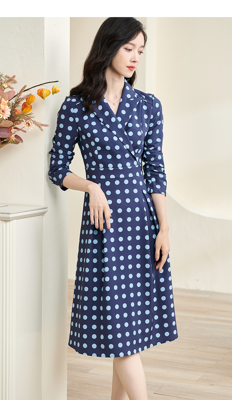 剩S/M/L 米思阳2025春季新款气质波点西装领连衣裙收腰显瘦长袖A字裙2745