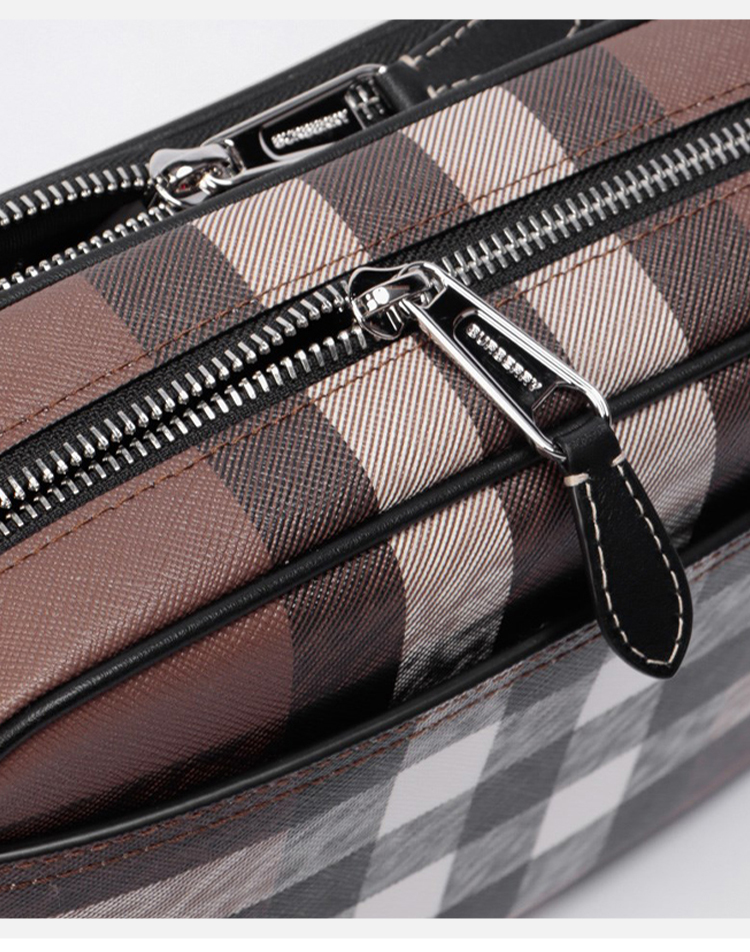 【一】BURBERRY 巴宝莉 男士格子图案涂层帆布斜挎单肩邮差包 8049145 A8900